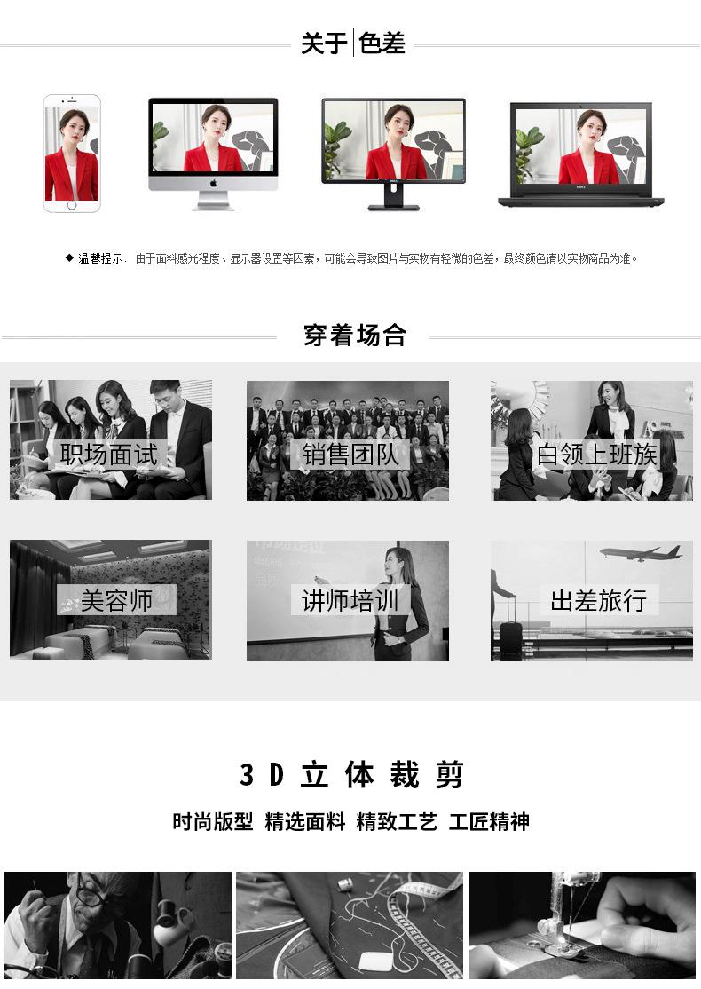 Red suit + skirt, Black suit + skirt, Blue suit + skirt, White suit + skirt