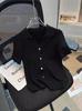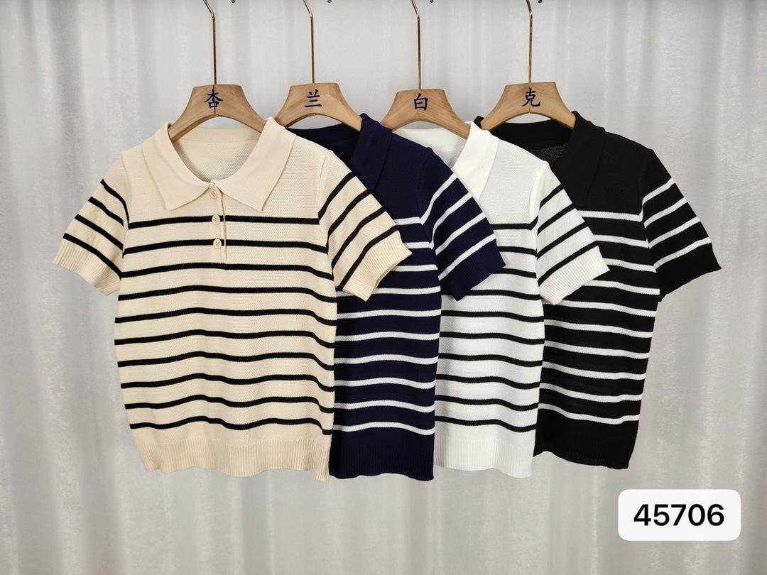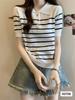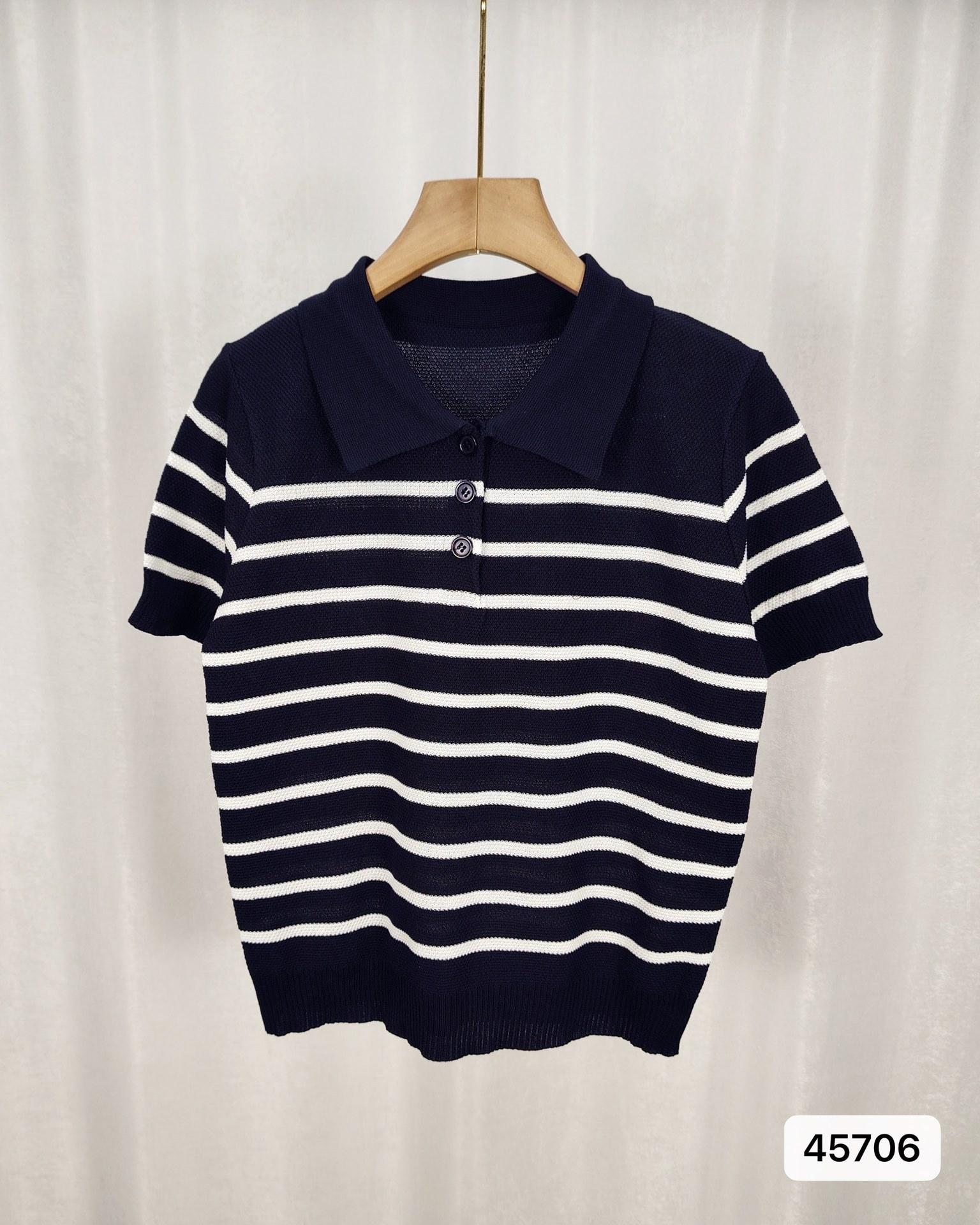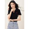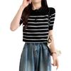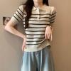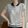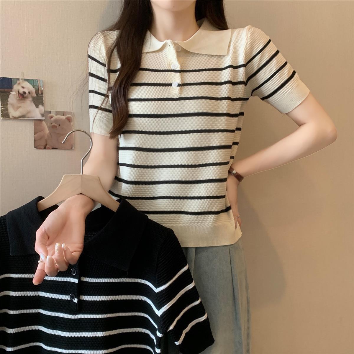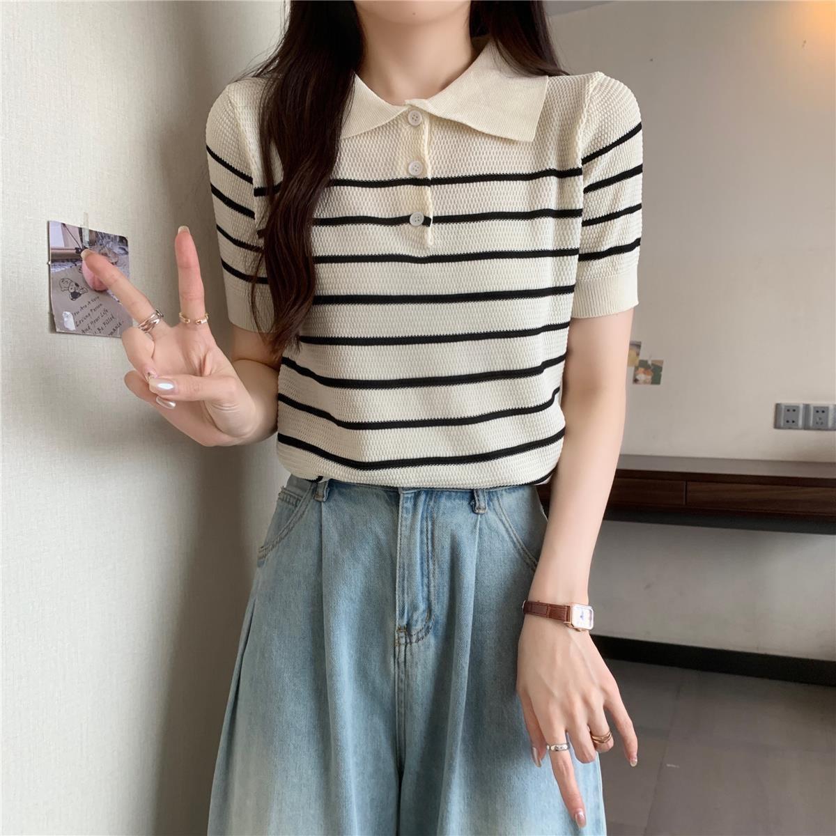 Suéter de manga corta a rayas con cuello polo para mujer, nuevo diseño de top de verano 2024, camisa corta con cintura pequeña