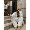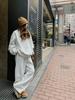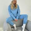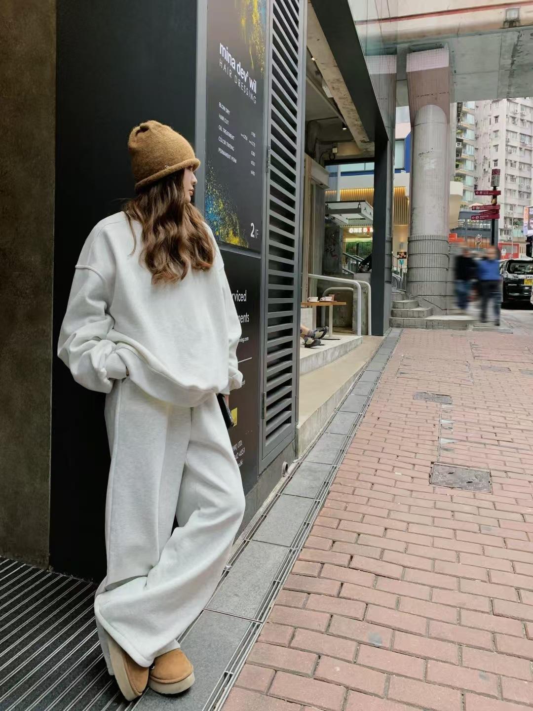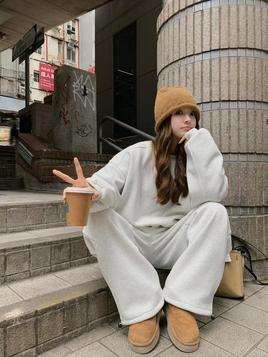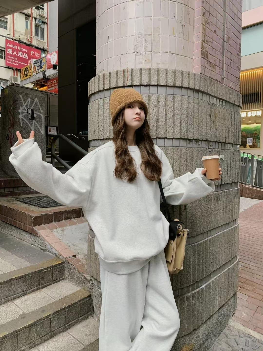 511 # Traje Deportivo de Terciopelo para Otoño e Invierno para Mujer, Sudadera de Cuello Redondo, Pantalones de Pierna Ancha, Conjunto de Dos Piezas de Estilo Coreano a la Moda, Spandex