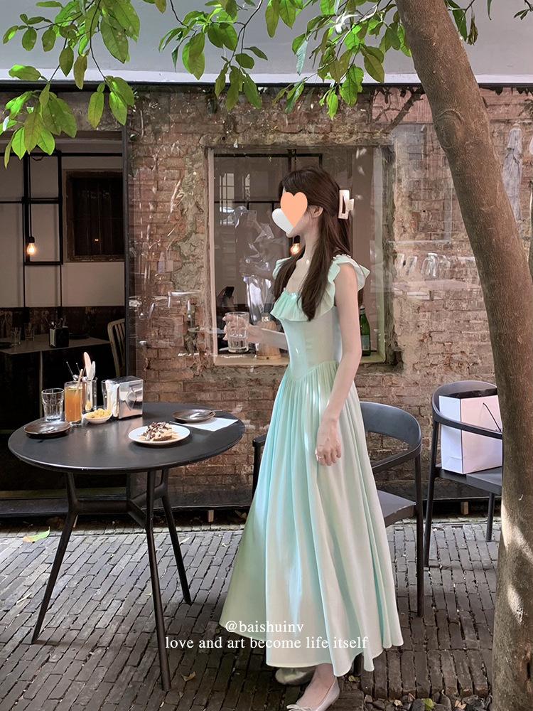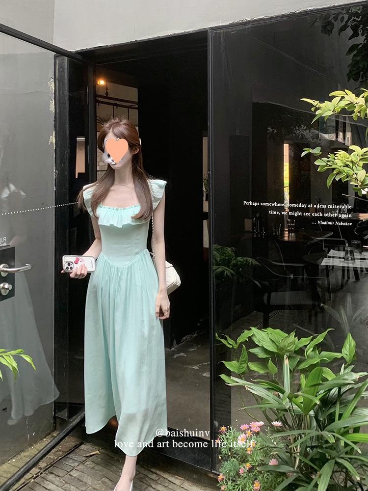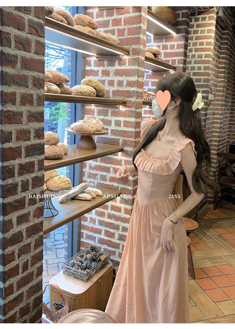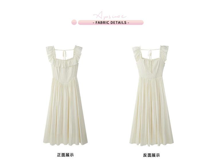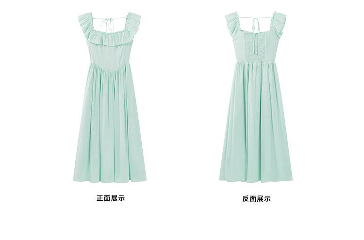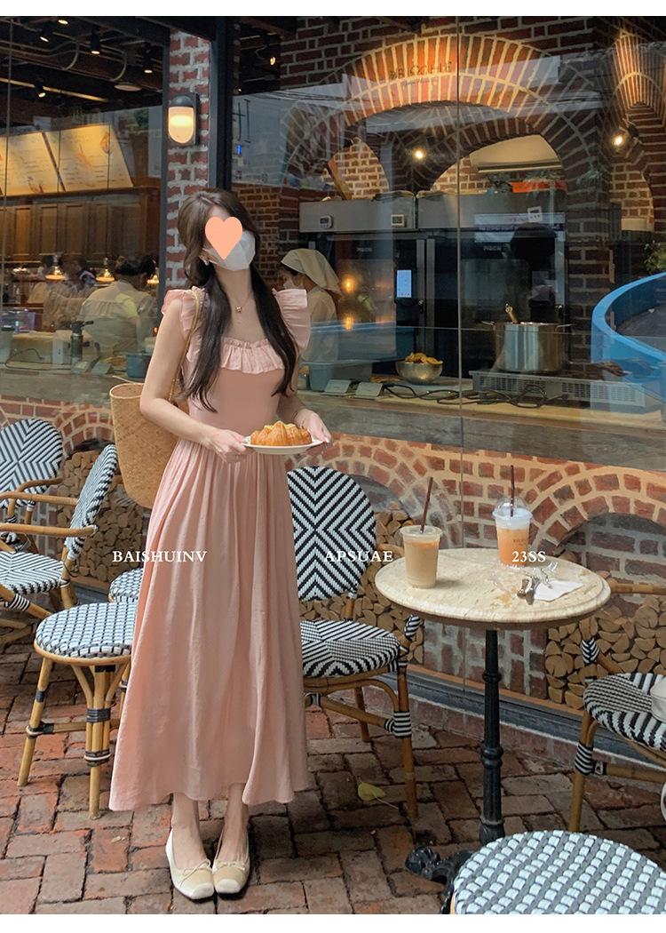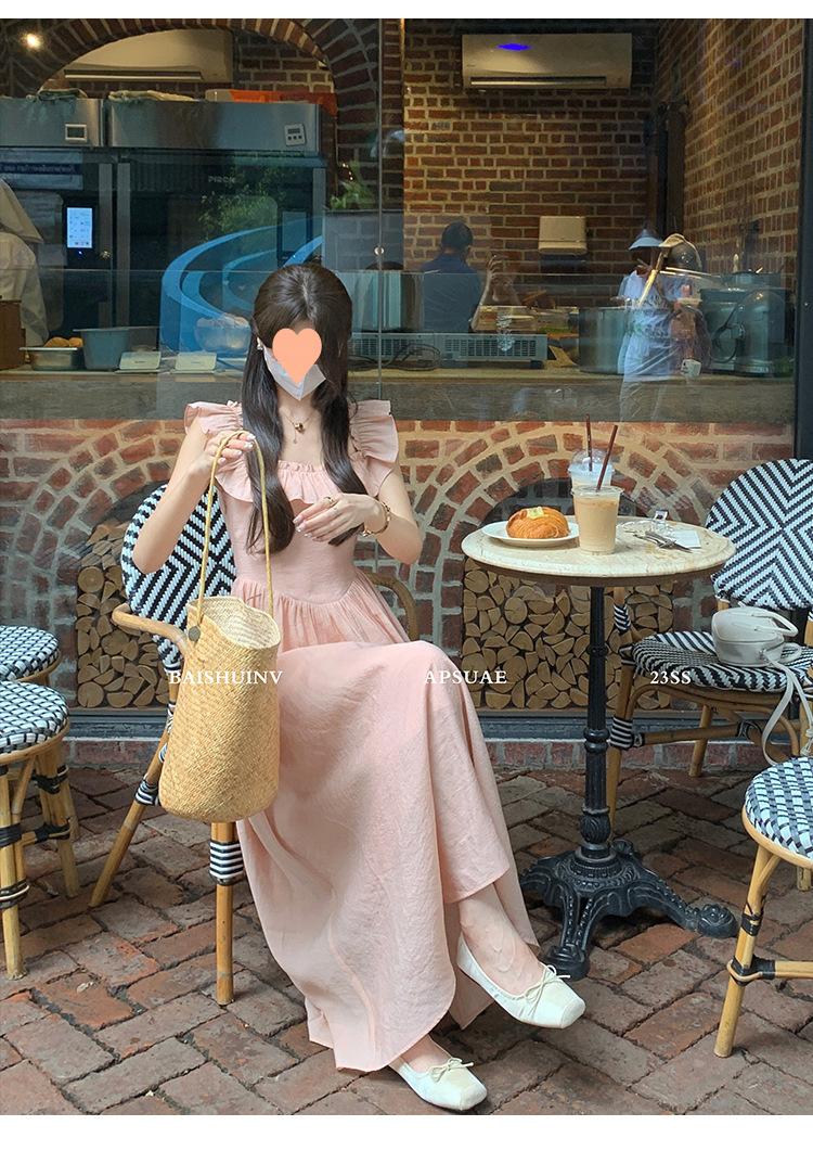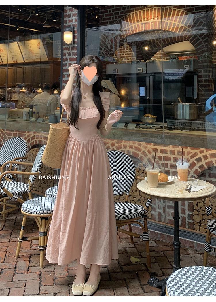 Vestido de tirantes con cuello cuadrado con volantes Vestido elegante de gasa rosa claro para mujer