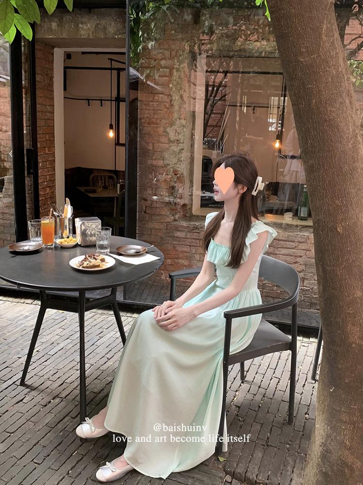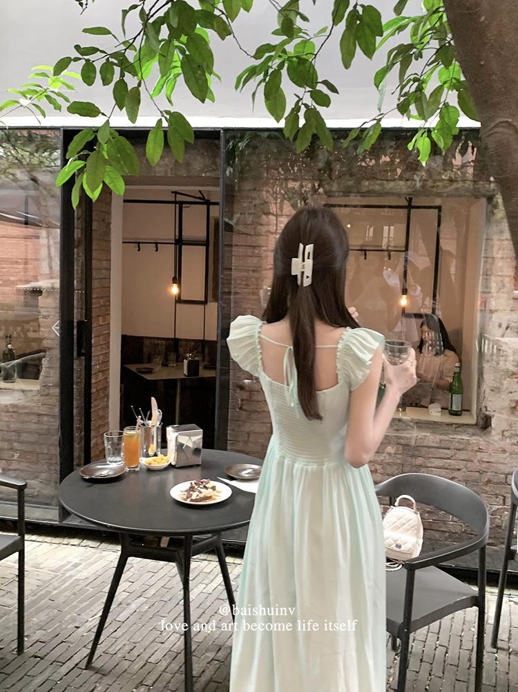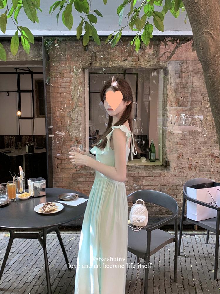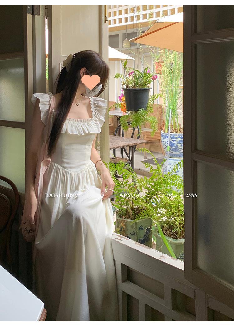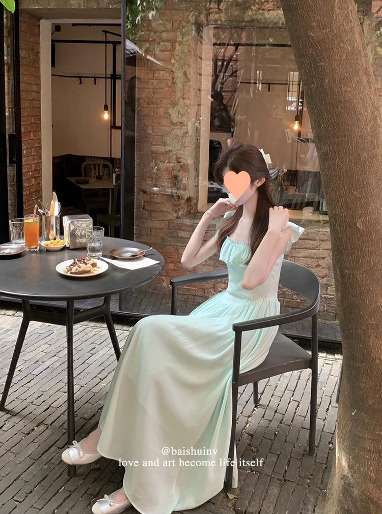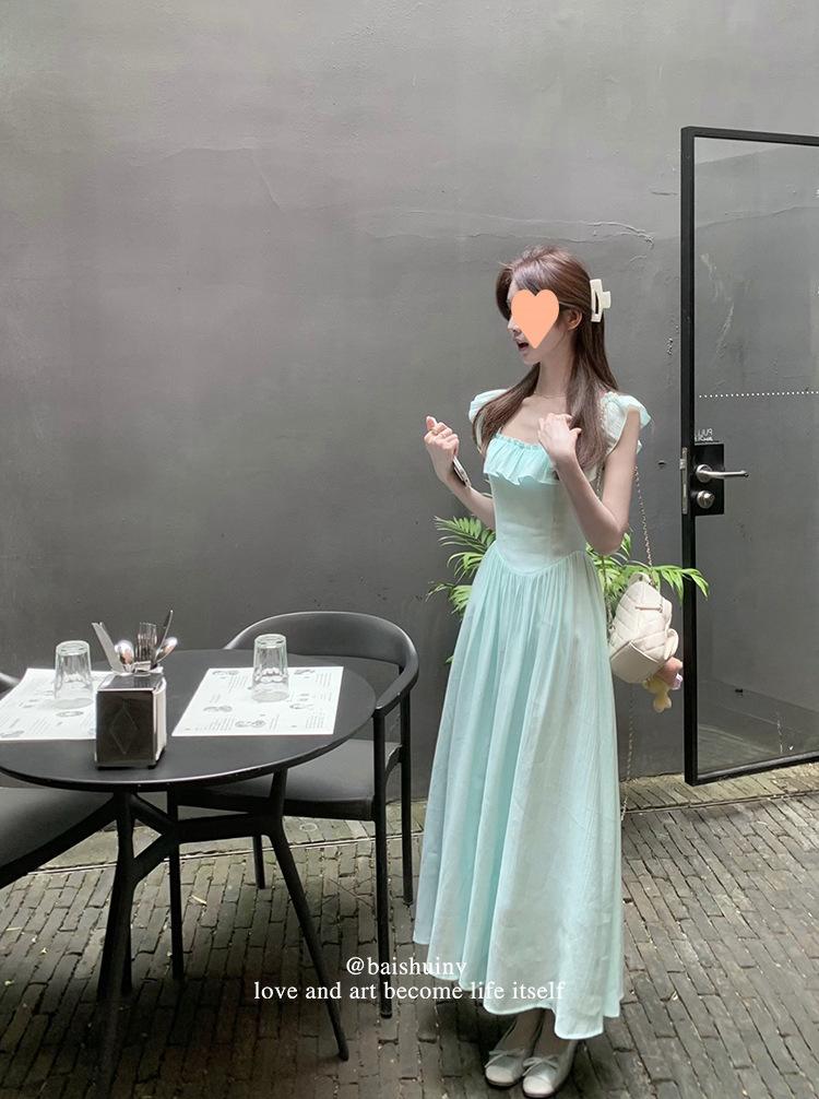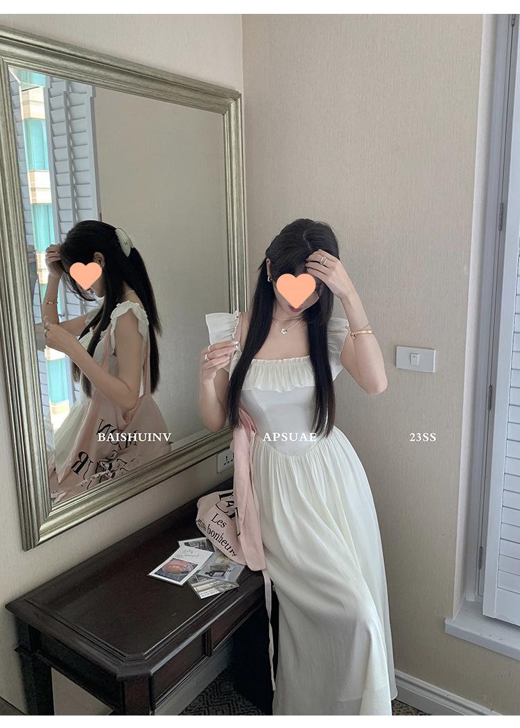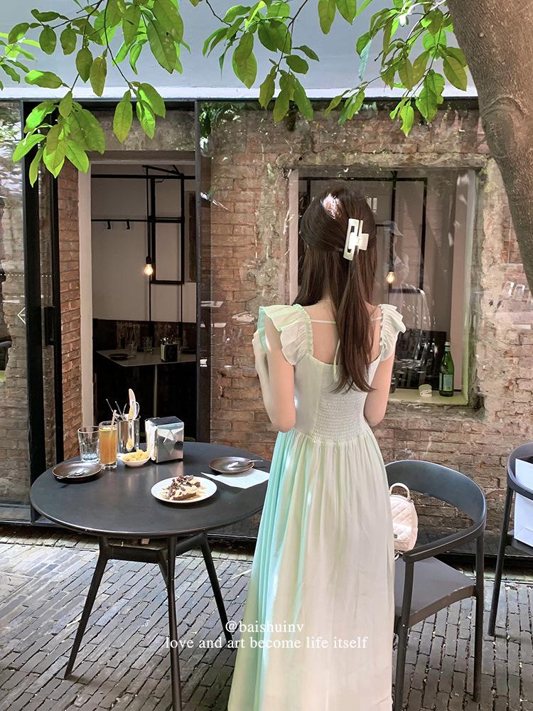 Vestido de tirantes con cuello cuadrado con volantes Vestido elegante de gasa rosa claro para mujer