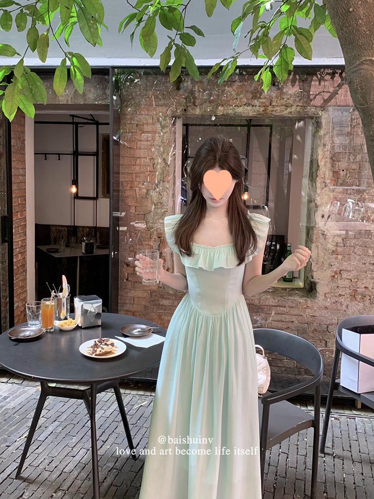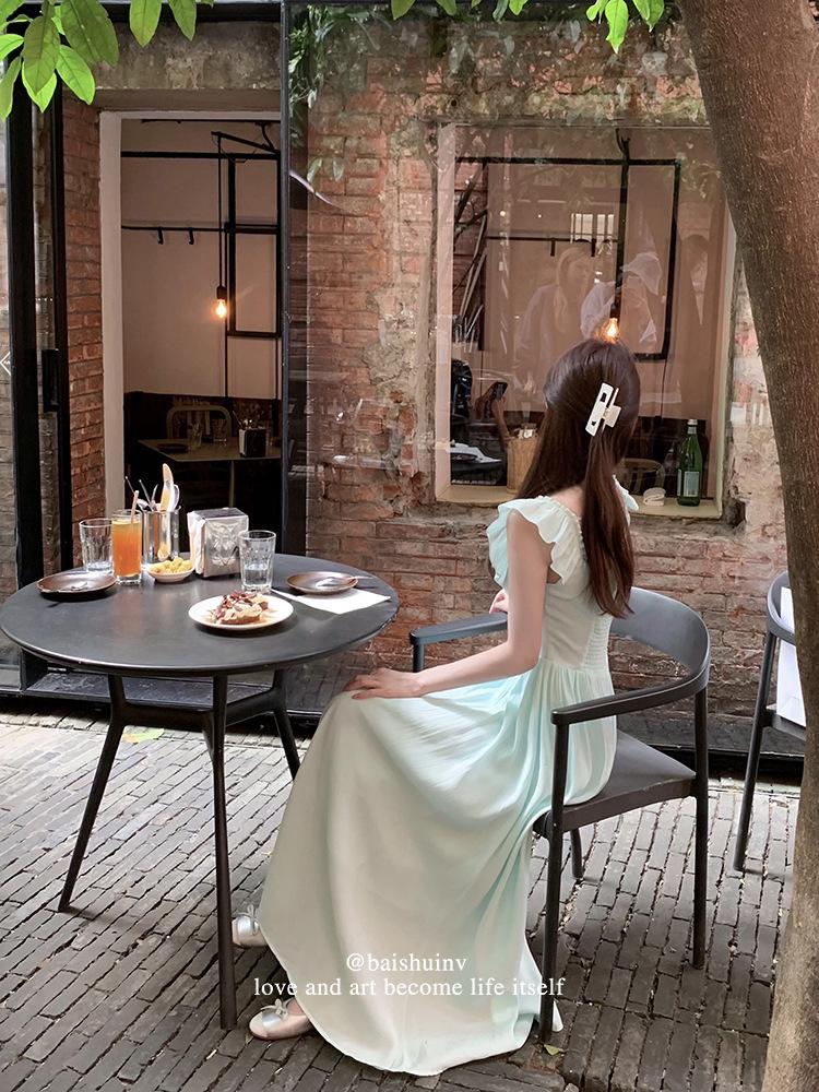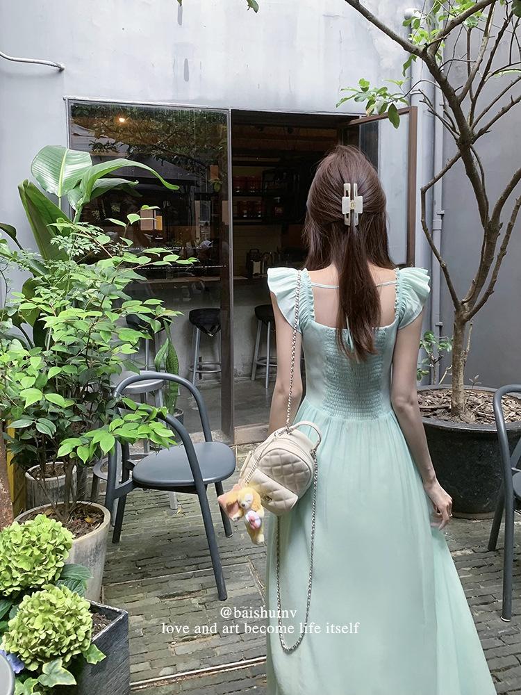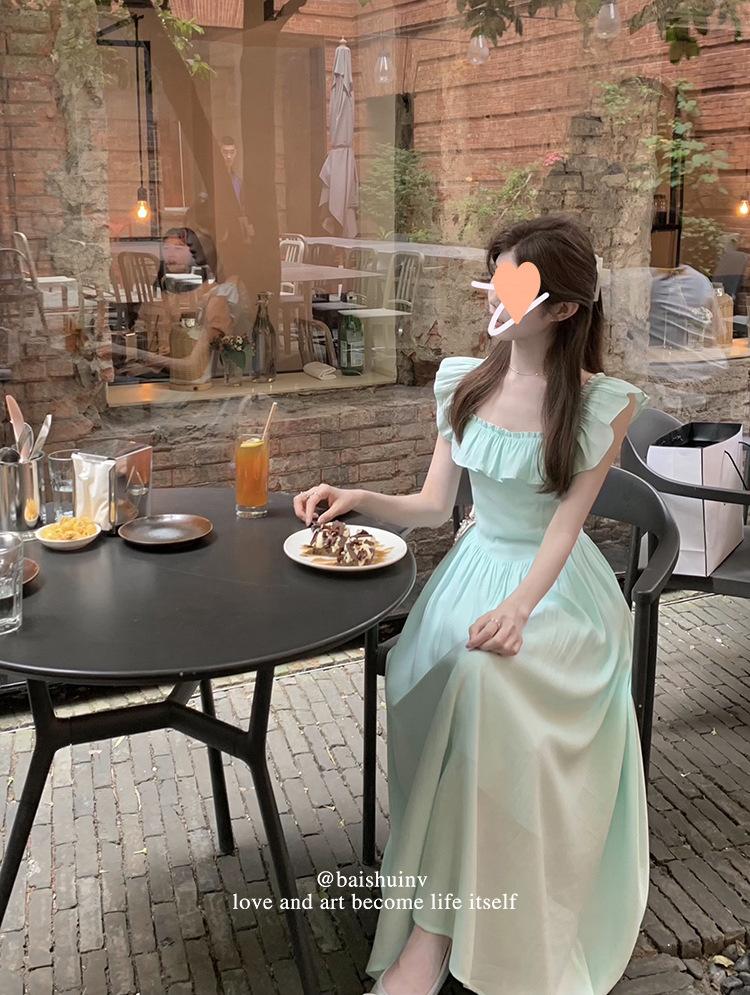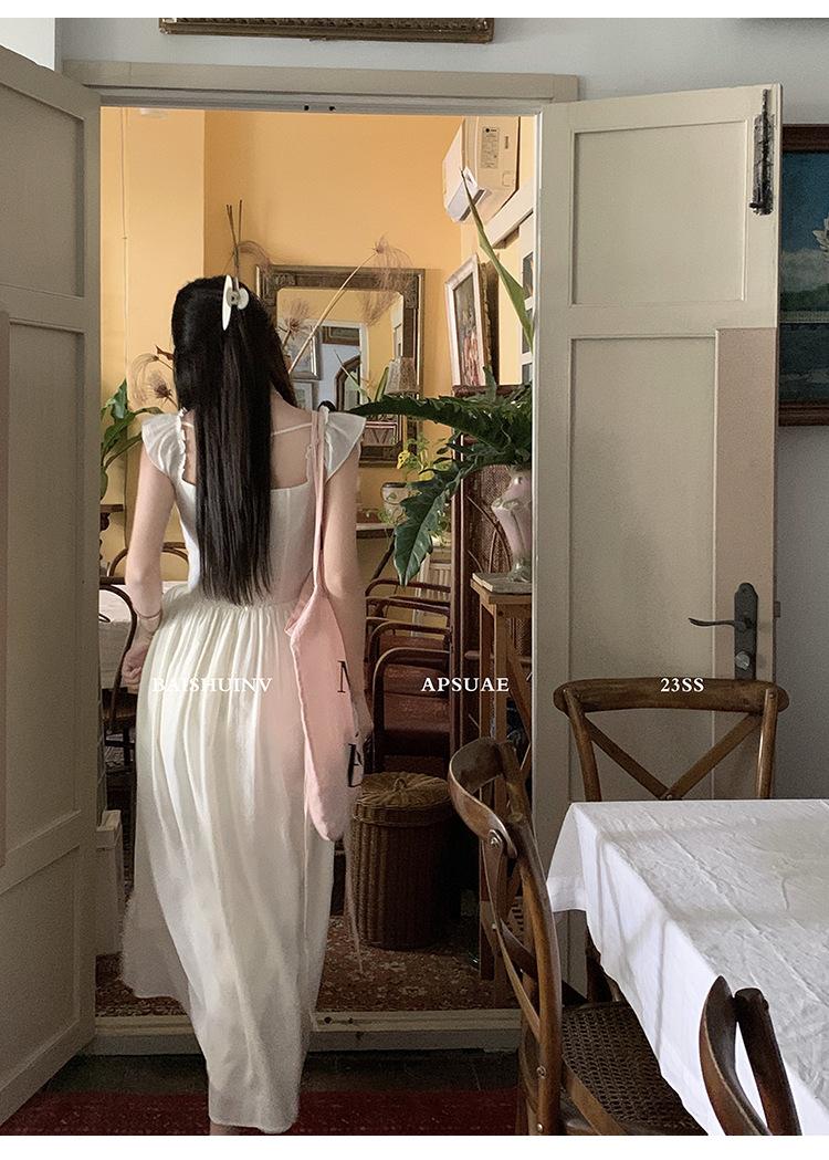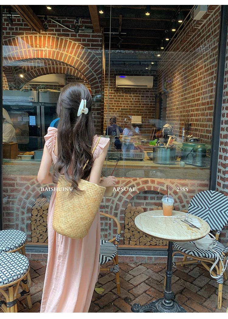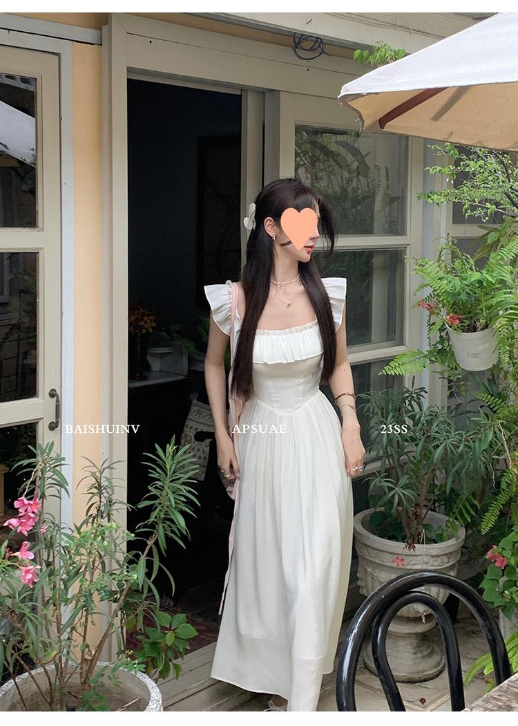 Vestido de tirantes con cuello cuadrado con volantes Vestido elegante de gasa rosa claro para mujer