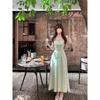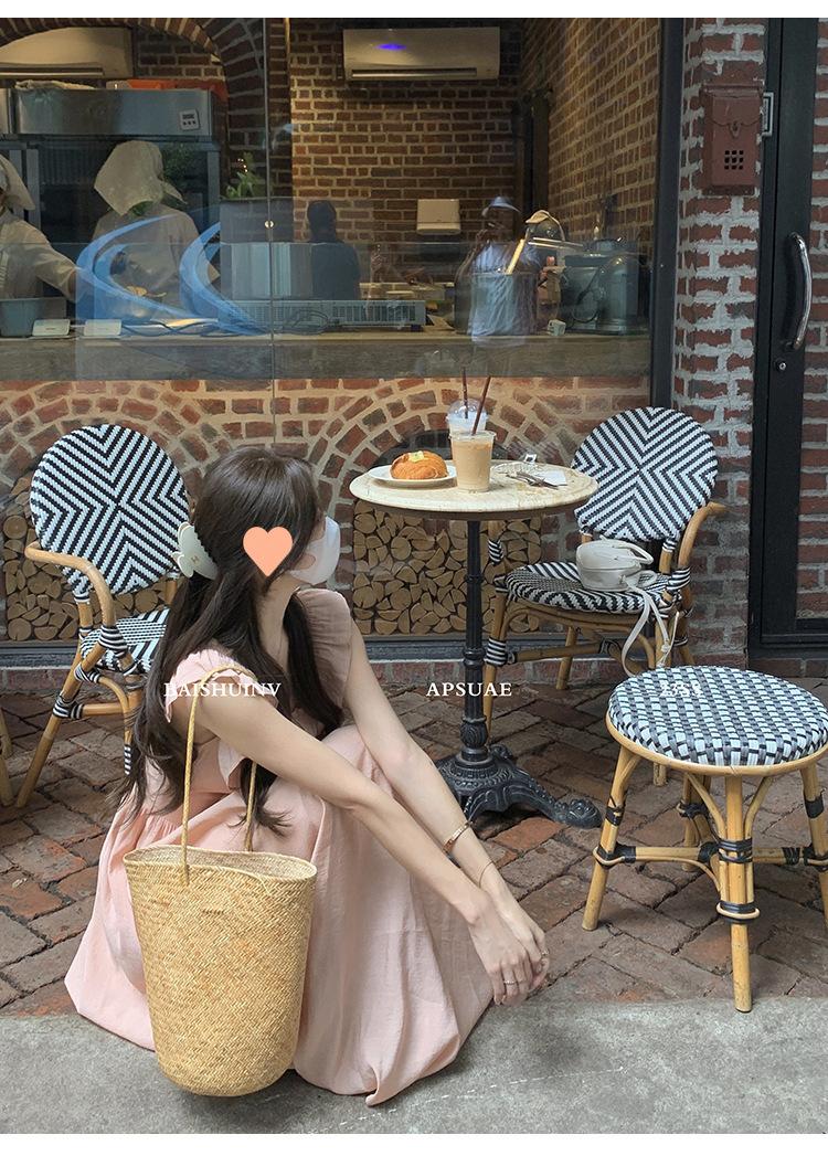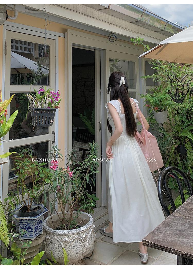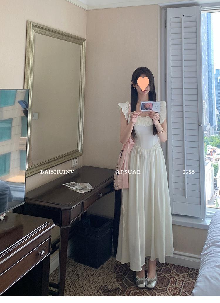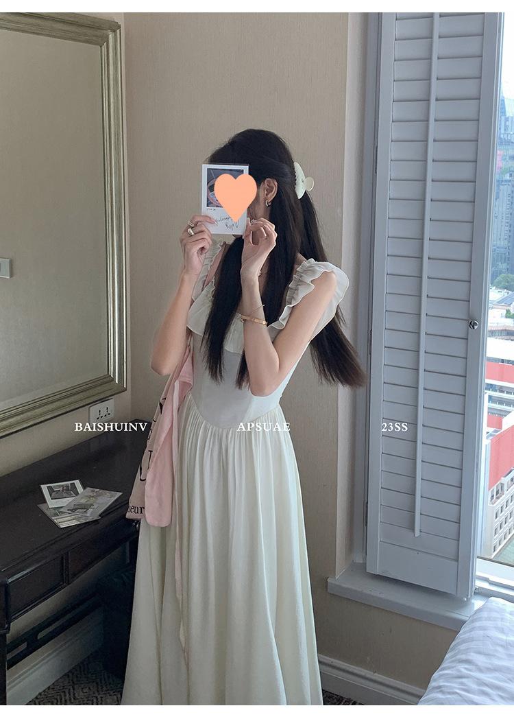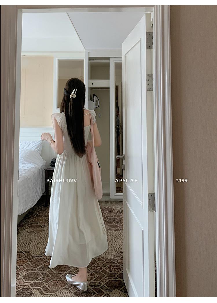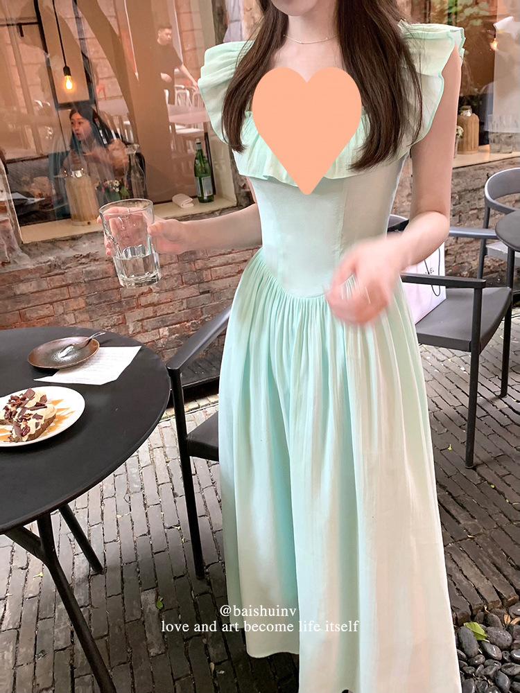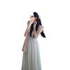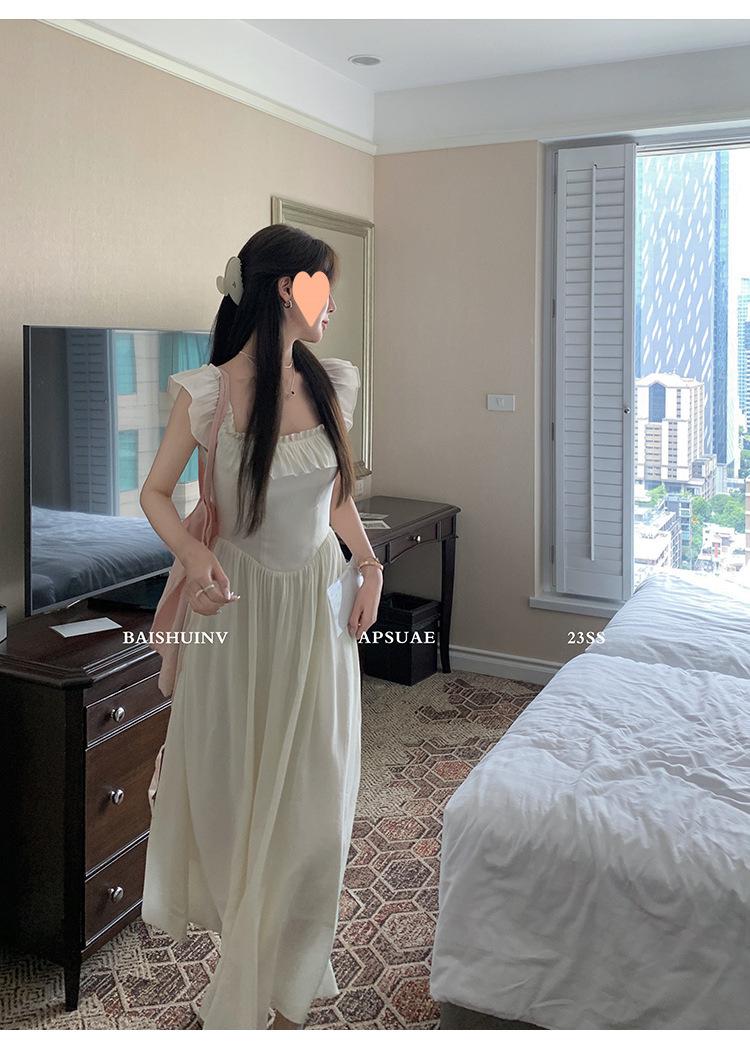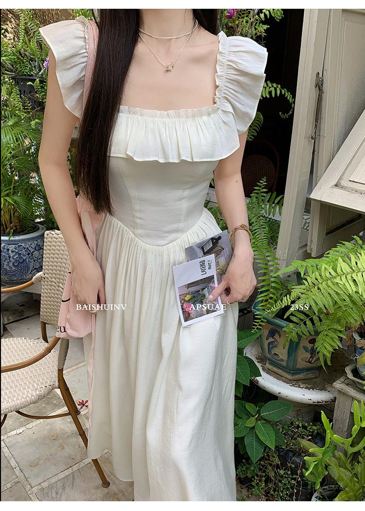 Vestido de tirantes con cuello cuadrado con volantes Vestido elegante de gasa rosa claro para mujer