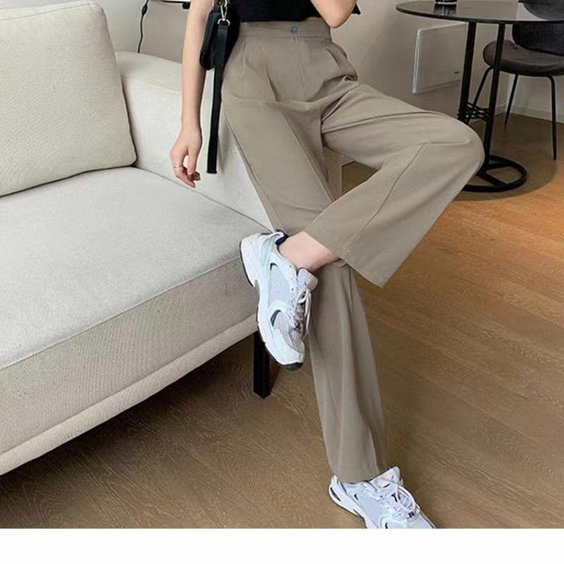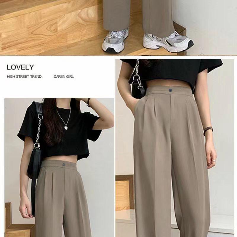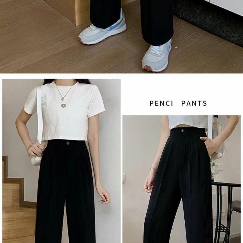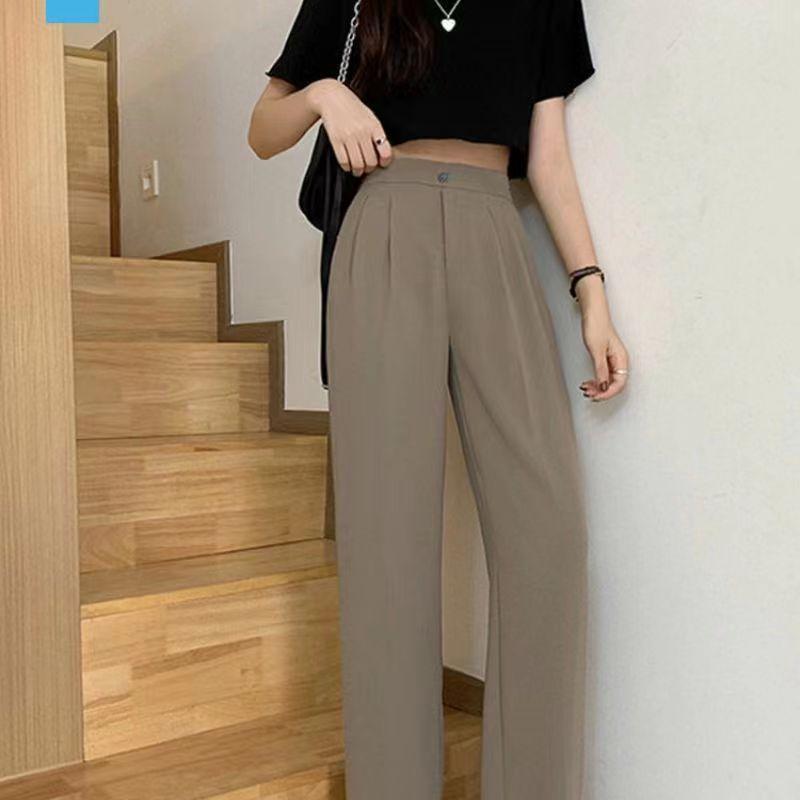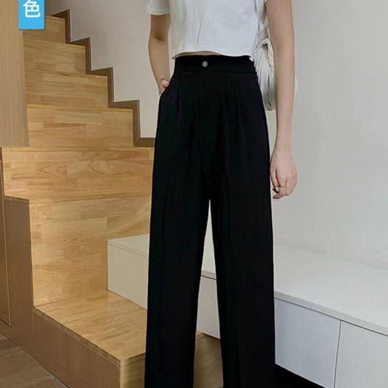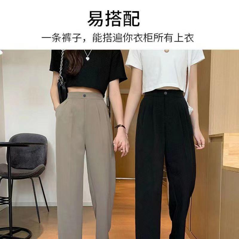 Pantalón de traje negro pantalón versátil cintura alta holgado casual delgado suelto adelgazante recto