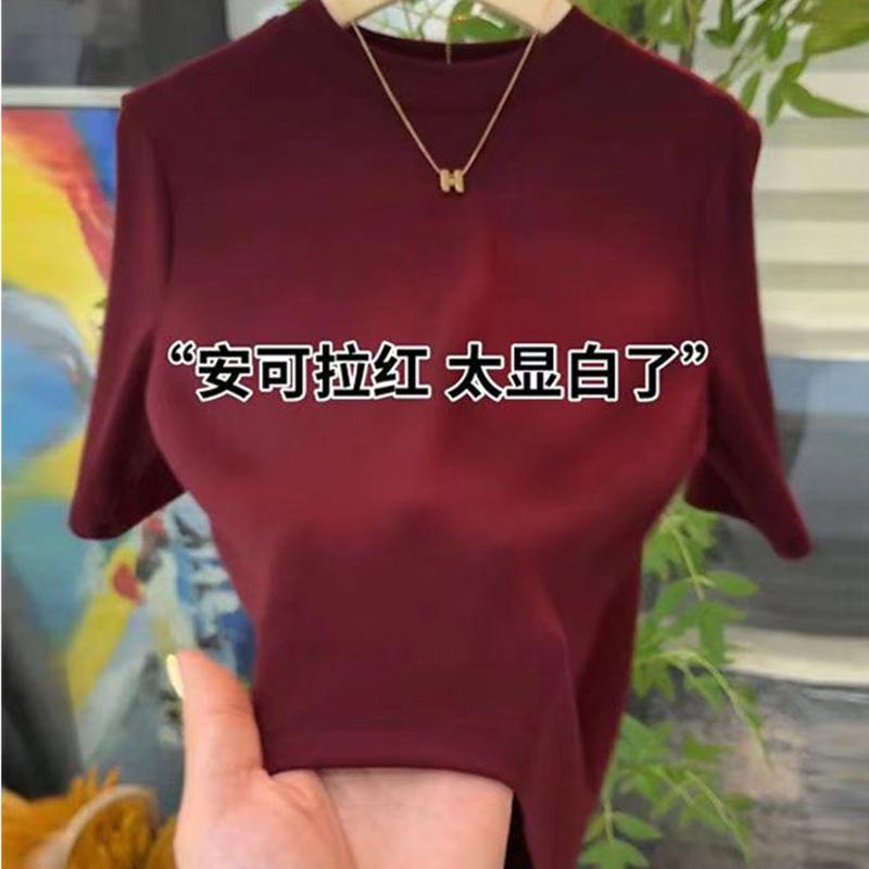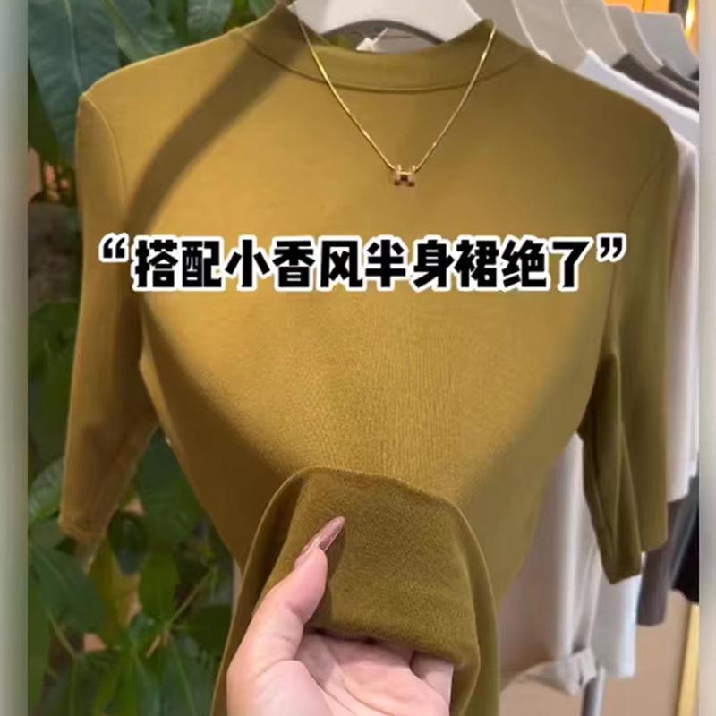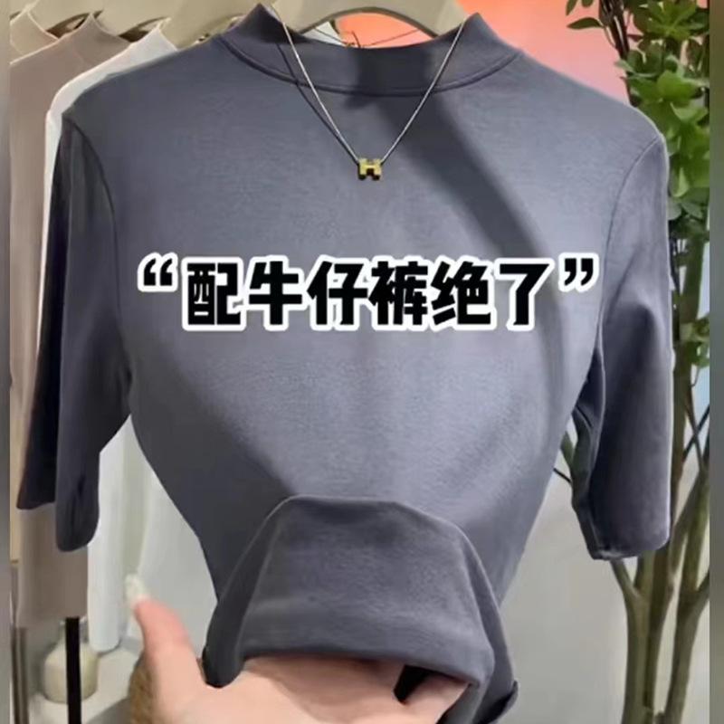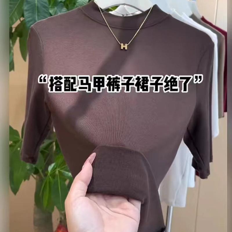 Camiseta de Verano de Manga Corta para Mujer Camiseta Sencilla de Modal con Cuello Medio Alto Top con Camiseta Básica Manga Corta