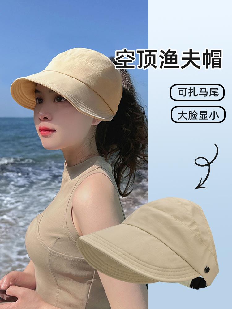 Sombrero de protección solar estrella femenina 2025 nuevo sombrero de pescador sol cara pequeño copa vacía secado rápido se puede colgar máscara sombrero parasol