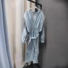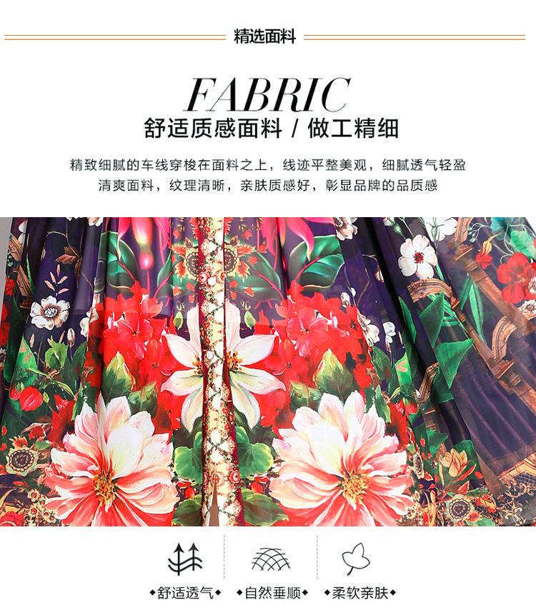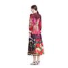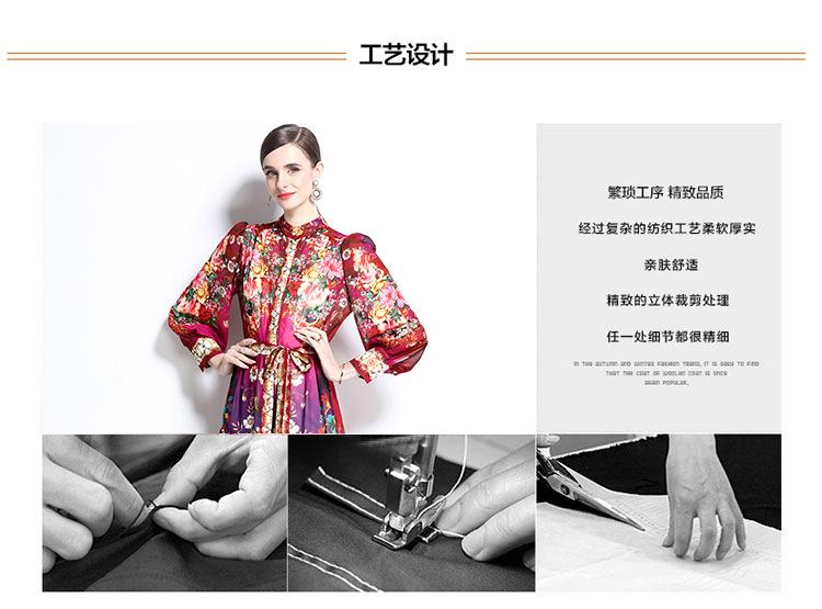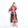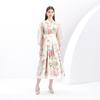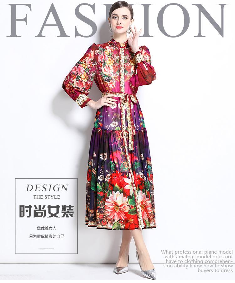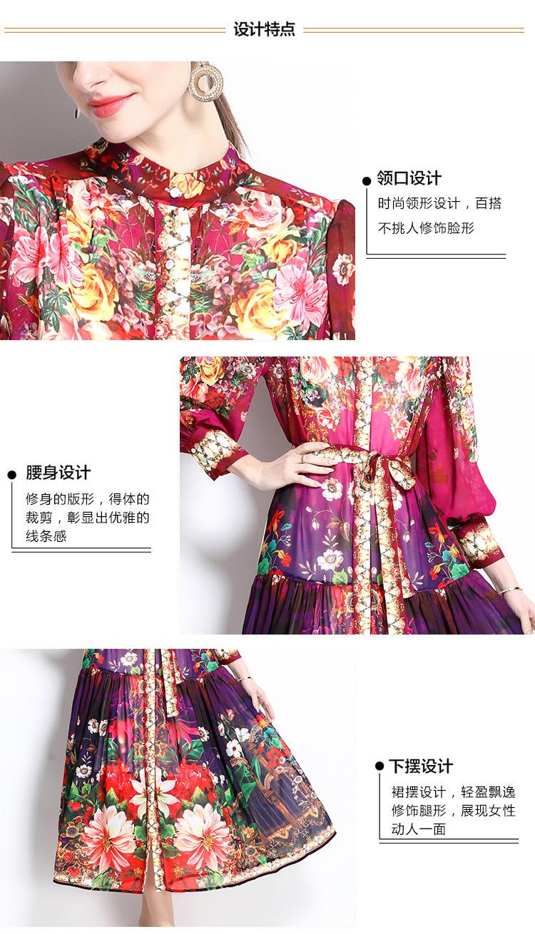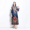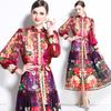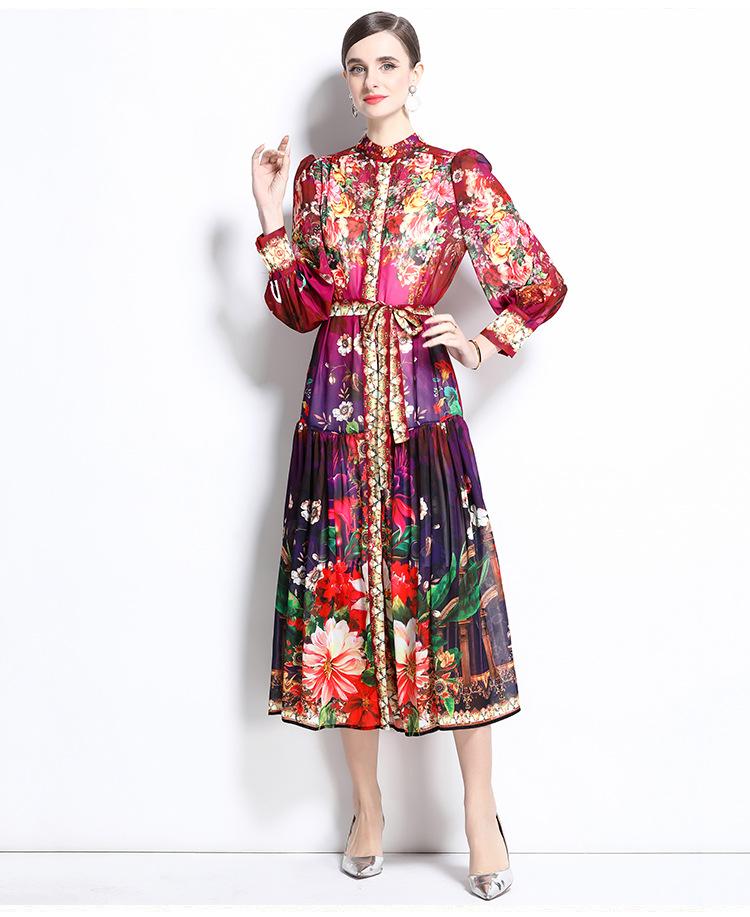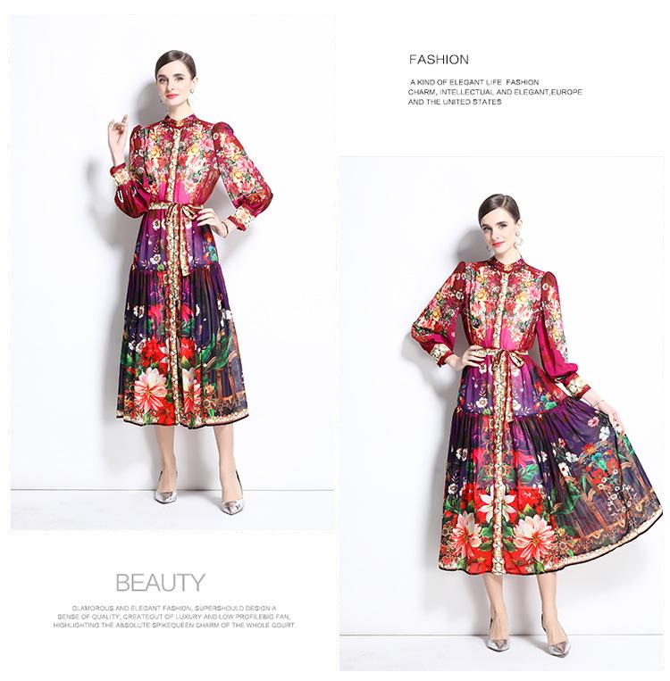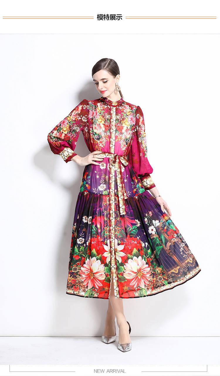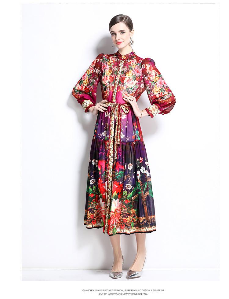 Vestido nuevo de primavera y verano 2025 vintage de gasa con cuello alto, manga linterna y estampado