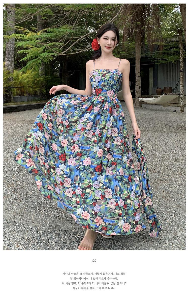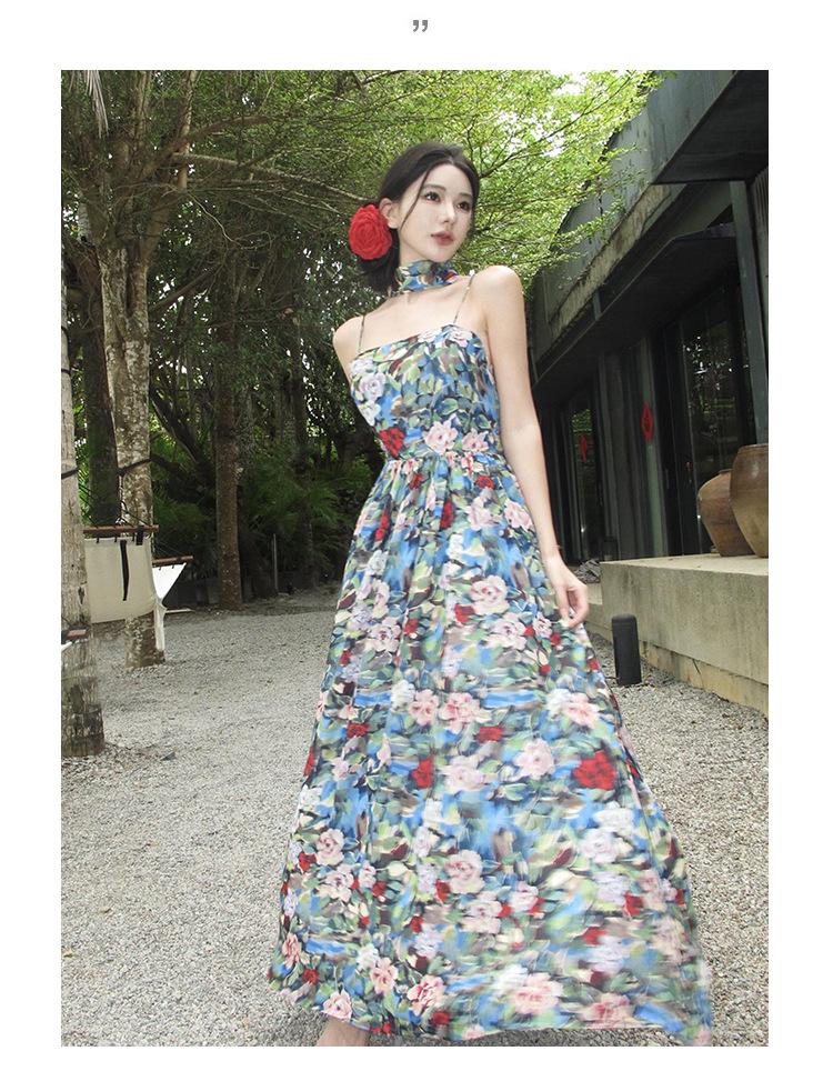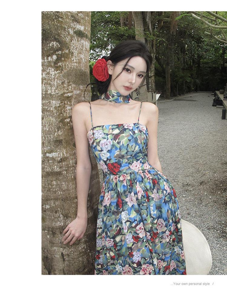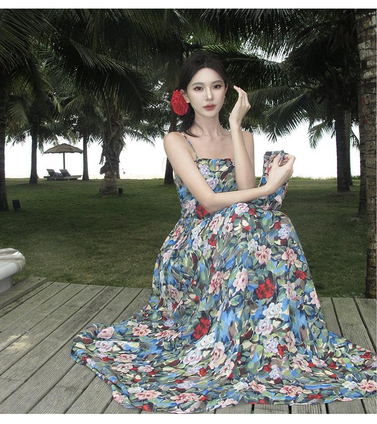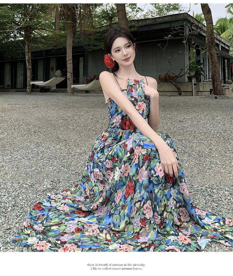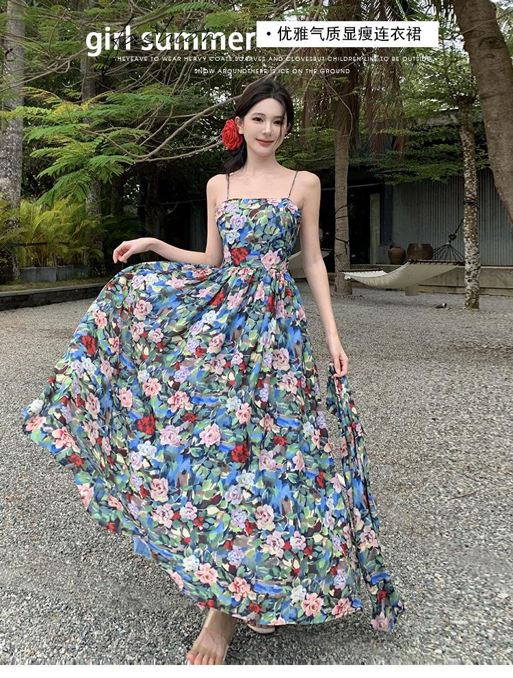 Foto real verano nuevo vestido de tirantes con estampado floral