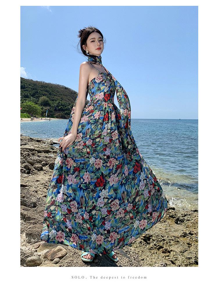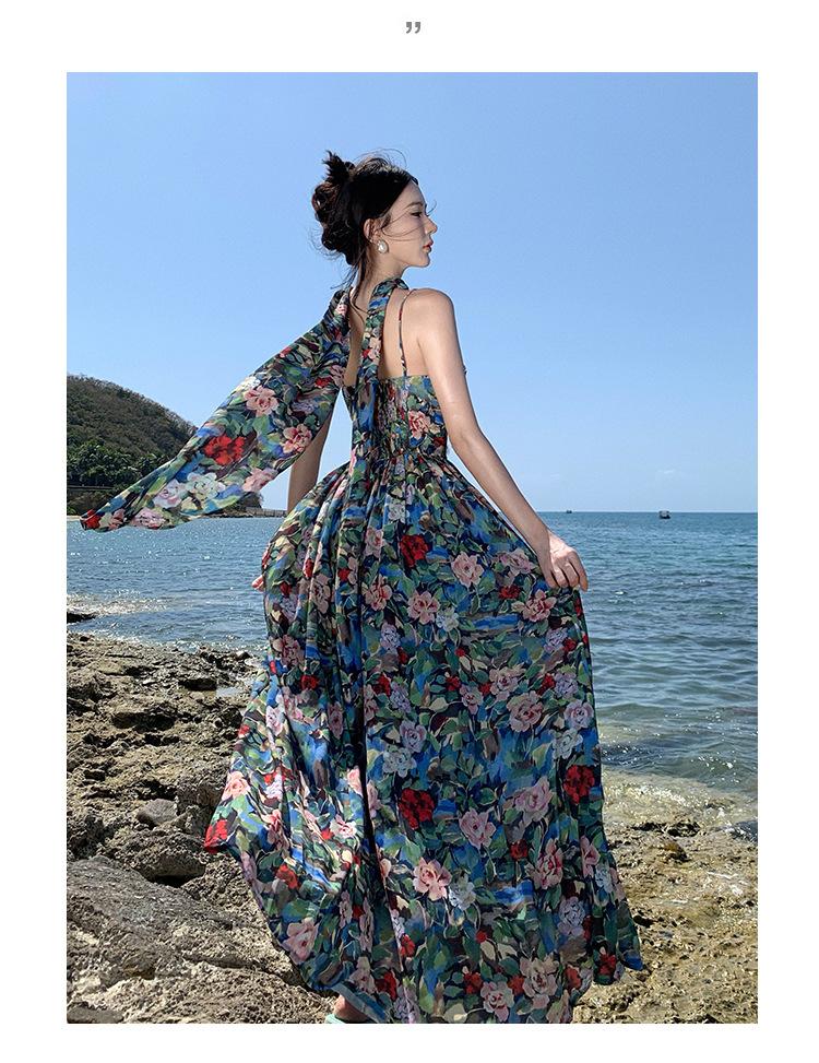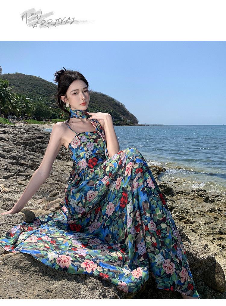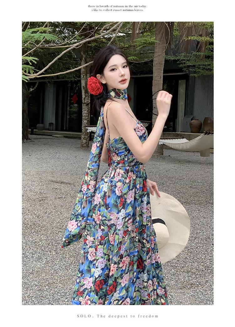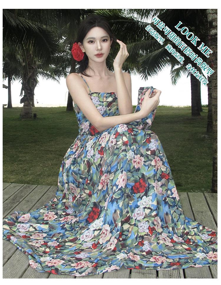 Foto real verano nuevo vestido de tirantes con estampado floral