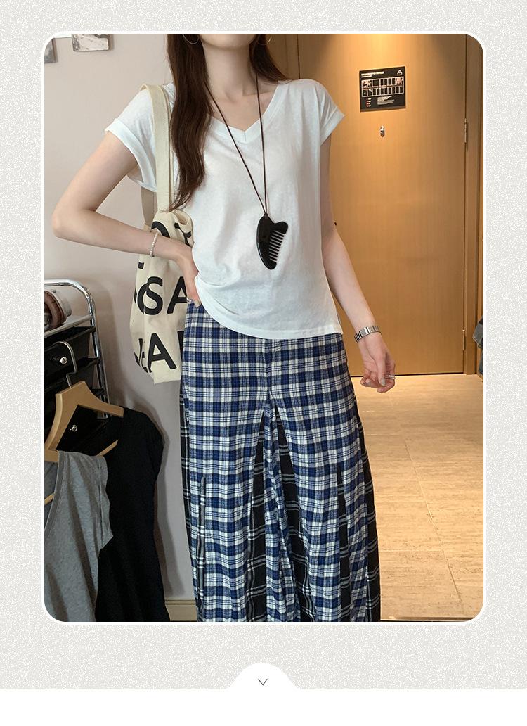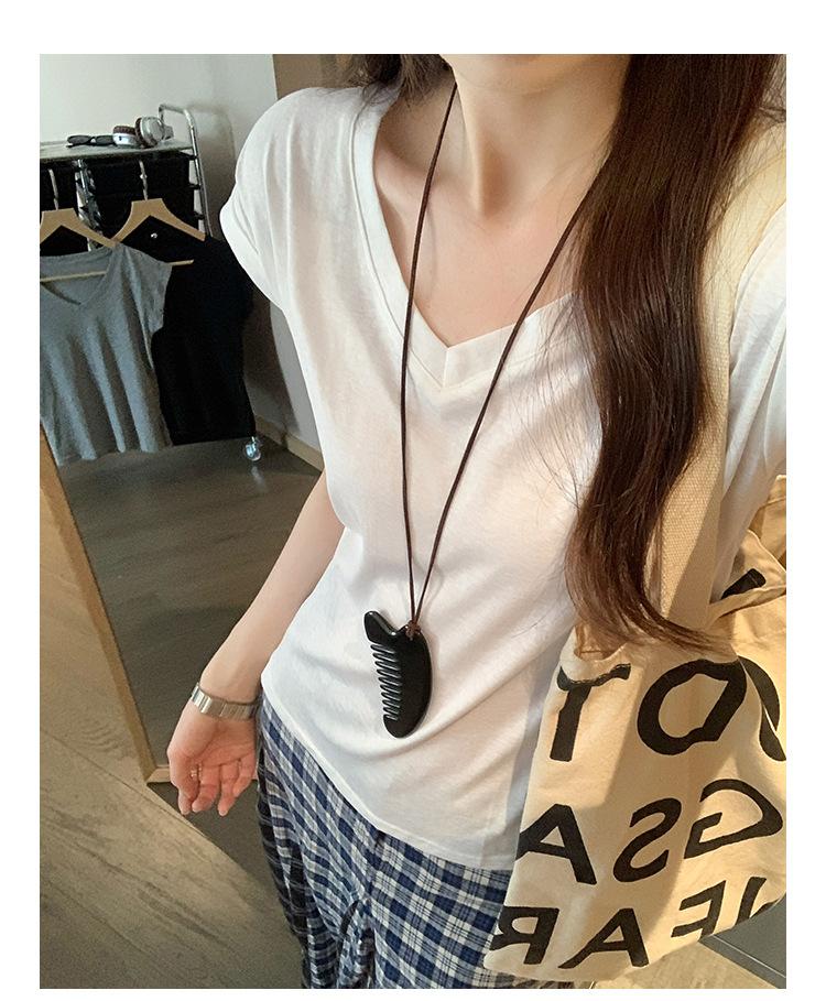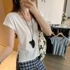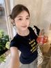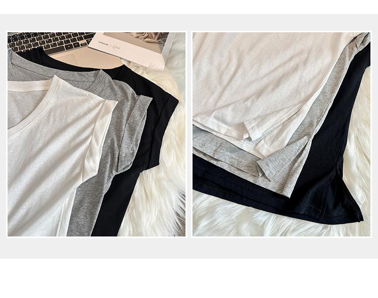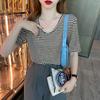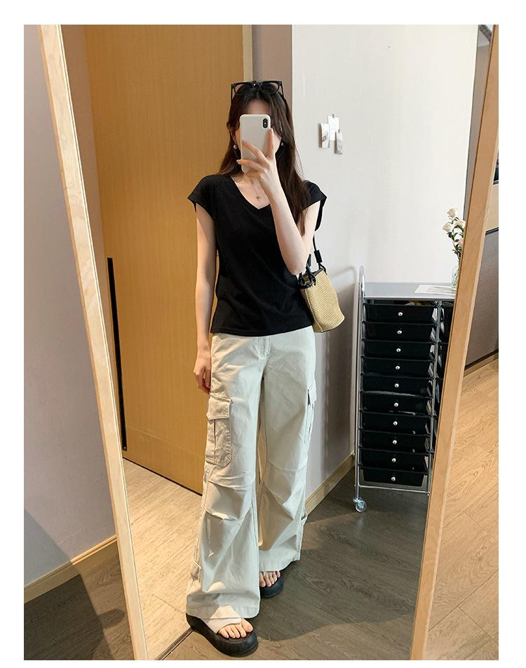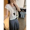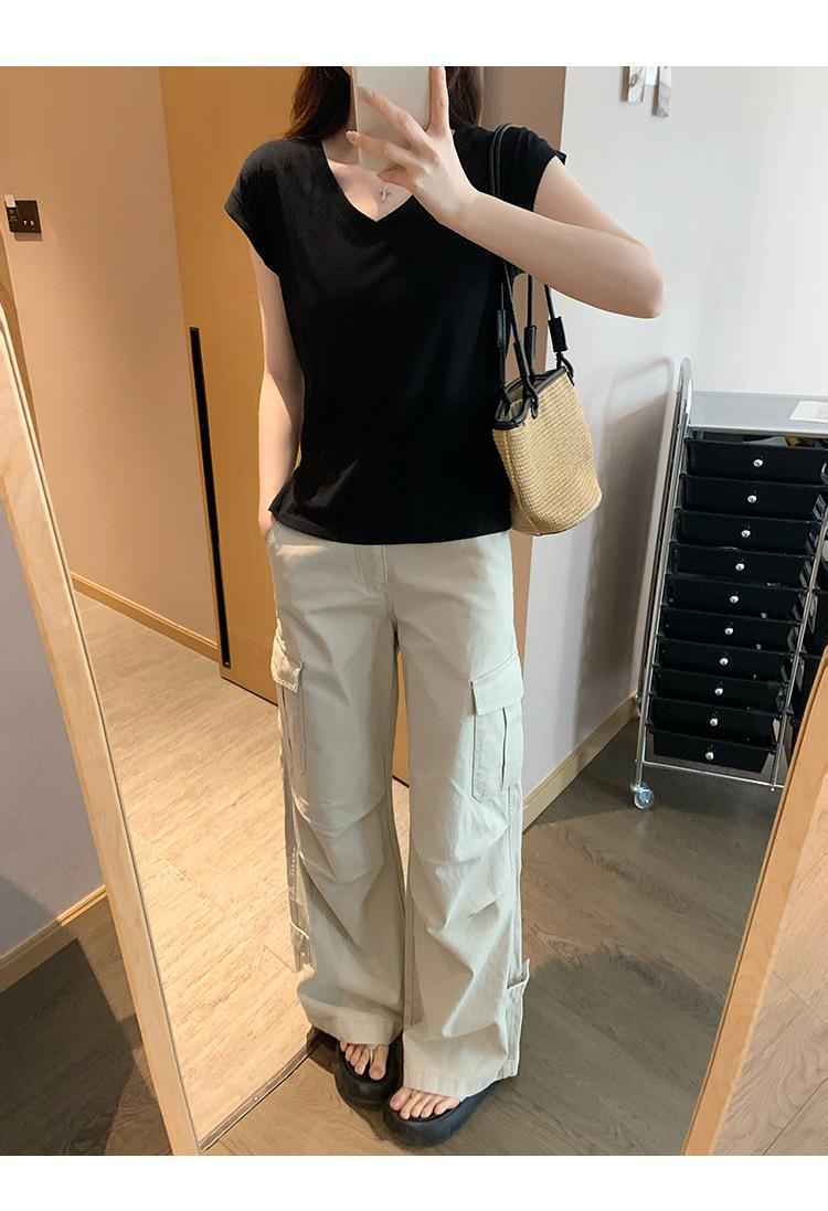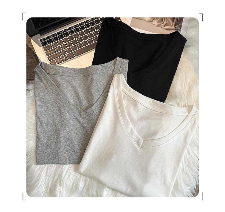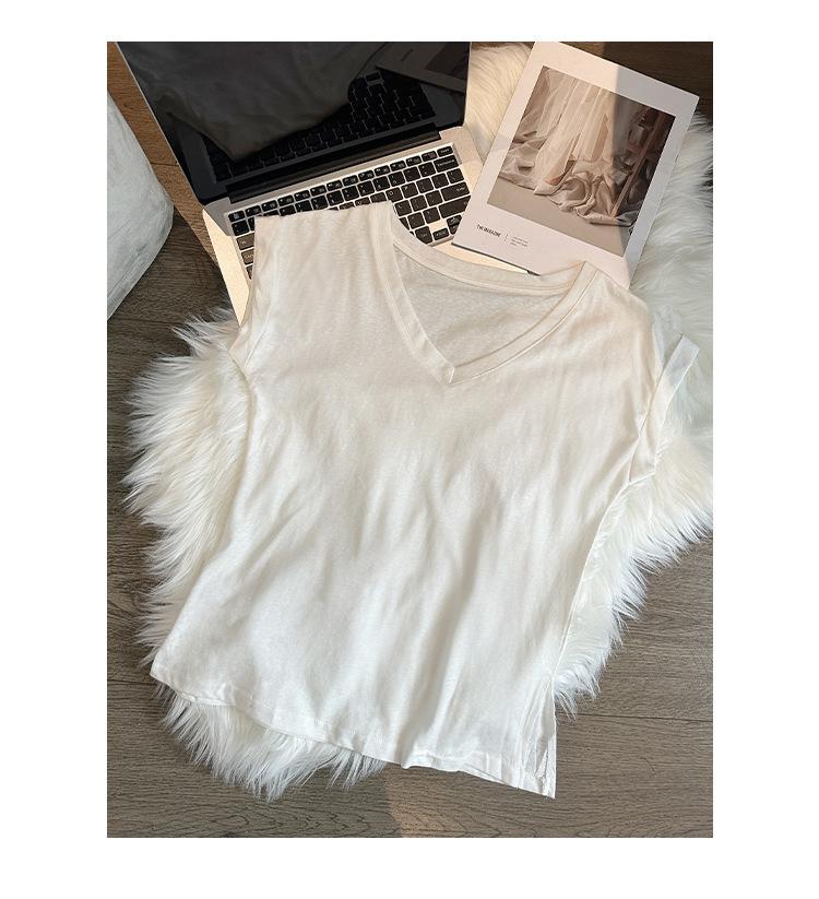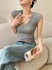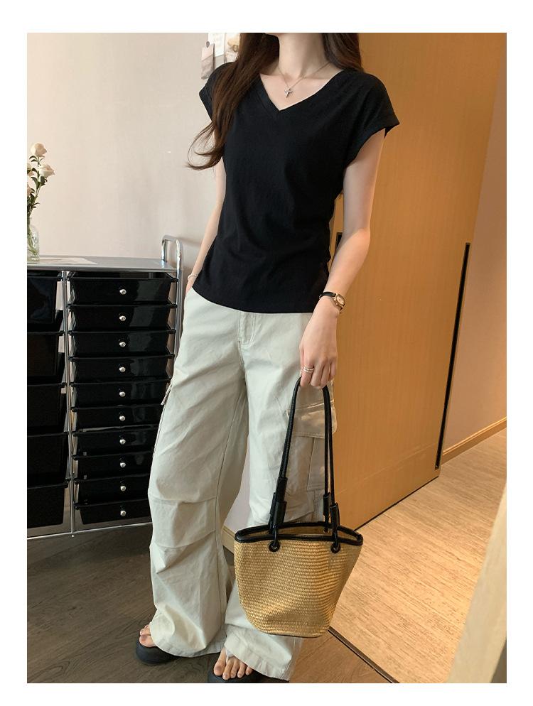 Fotos reales Camiseta de hombro estilo coreano con cuello en V y manga corta para mujer 2025 verano nuevo nicho de alta gama top sin bultos