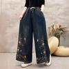 2025 Primavera Nueva Llegada Industria Pesada Retro Jeans Bordados para Mujer Sueltos Sueltos Talla Grande Sueltos Pantalones de Pierna Ancha
