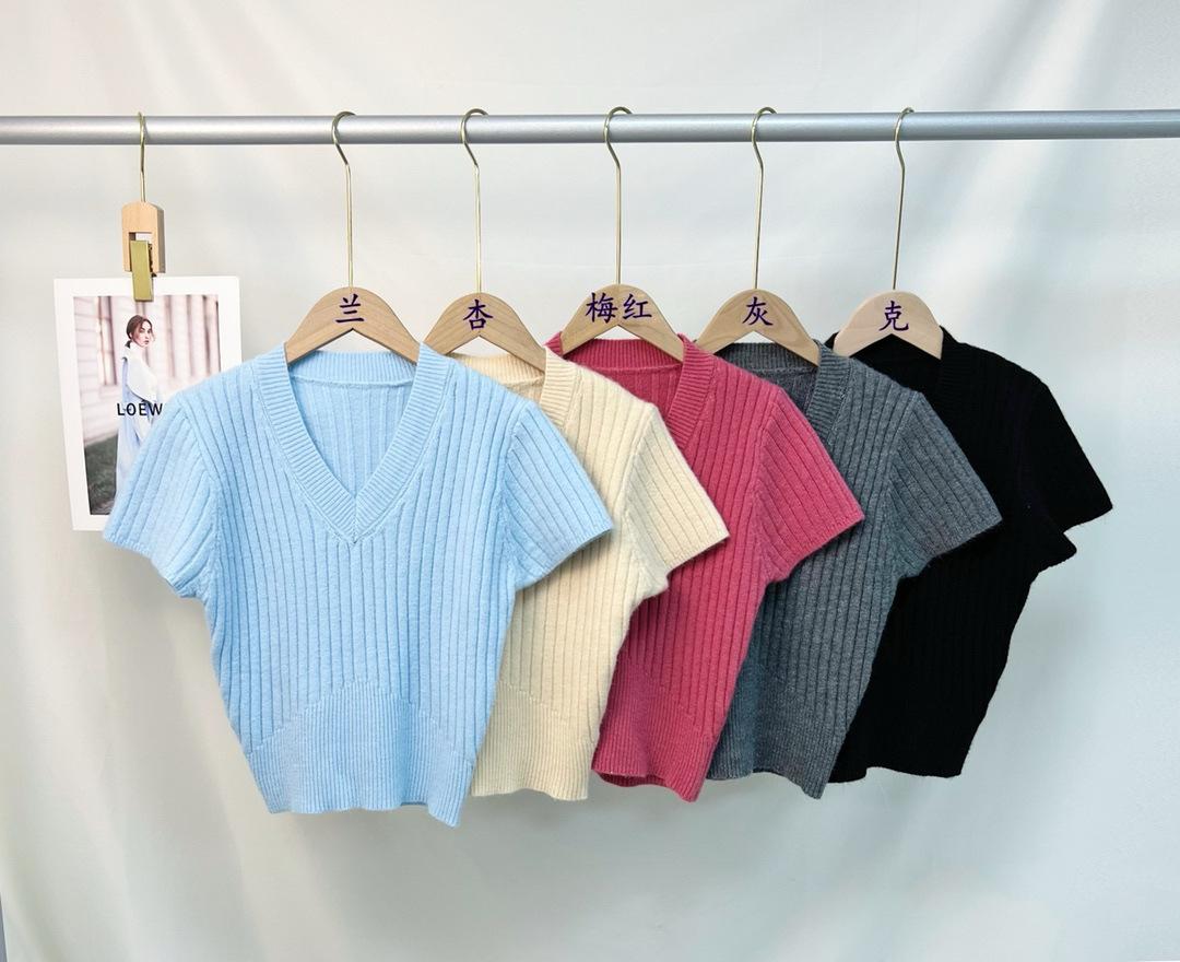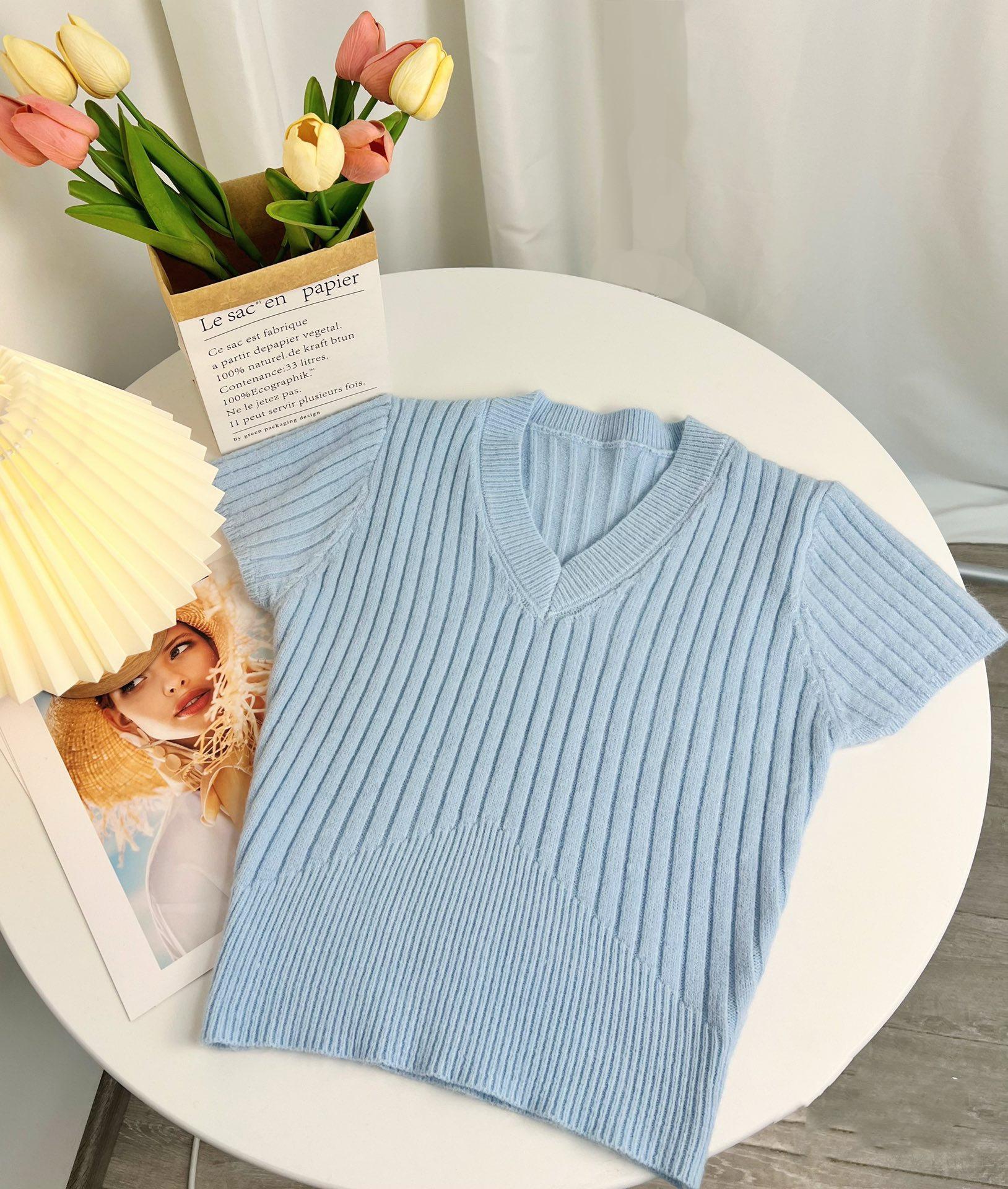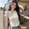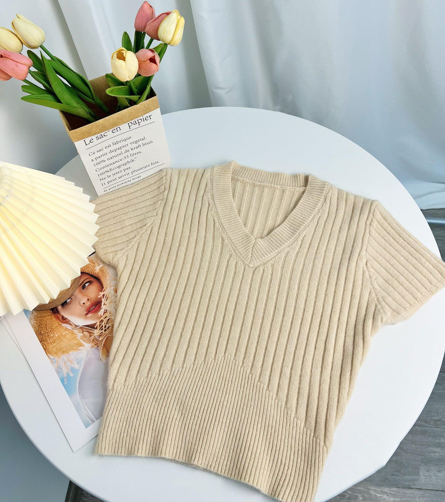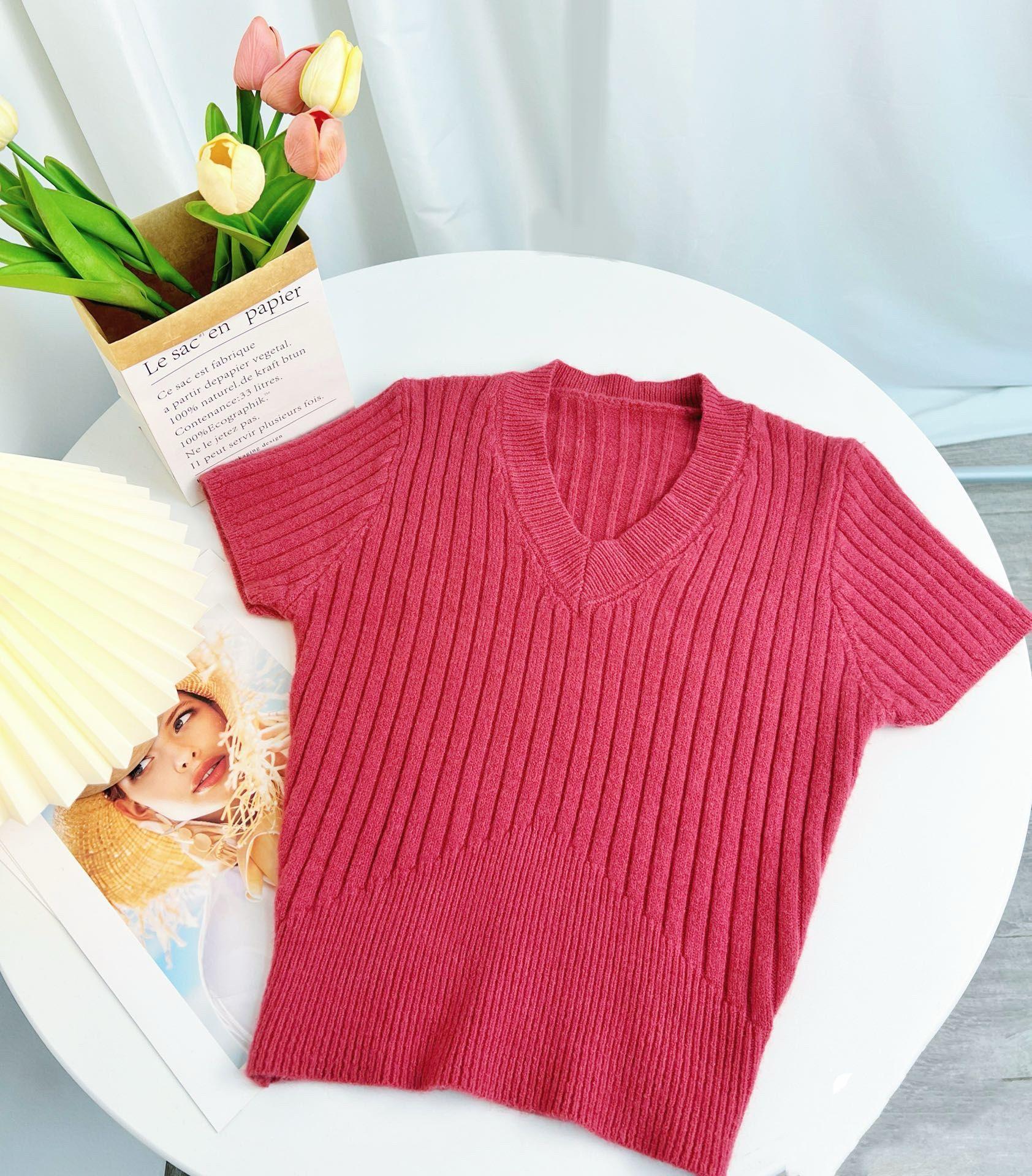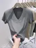 Sexy Camiseta de manga corta para chica guapa, top de verano para mujer, diseño irregular de cuello en V, nicho con sentido del diseño, suéter ajustado