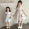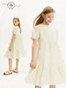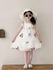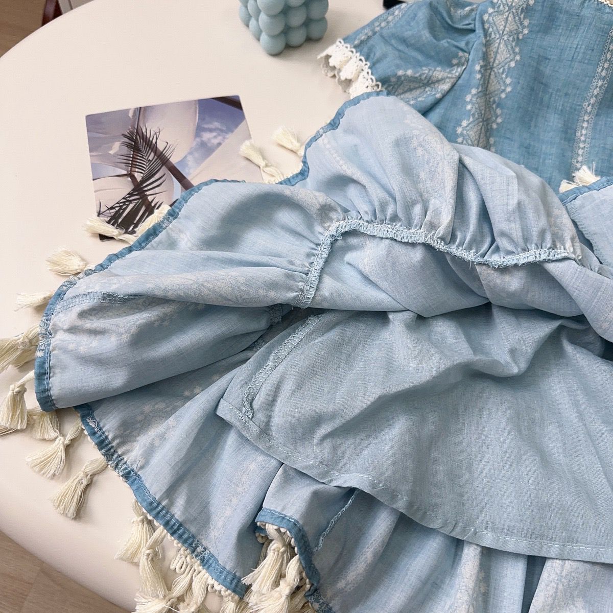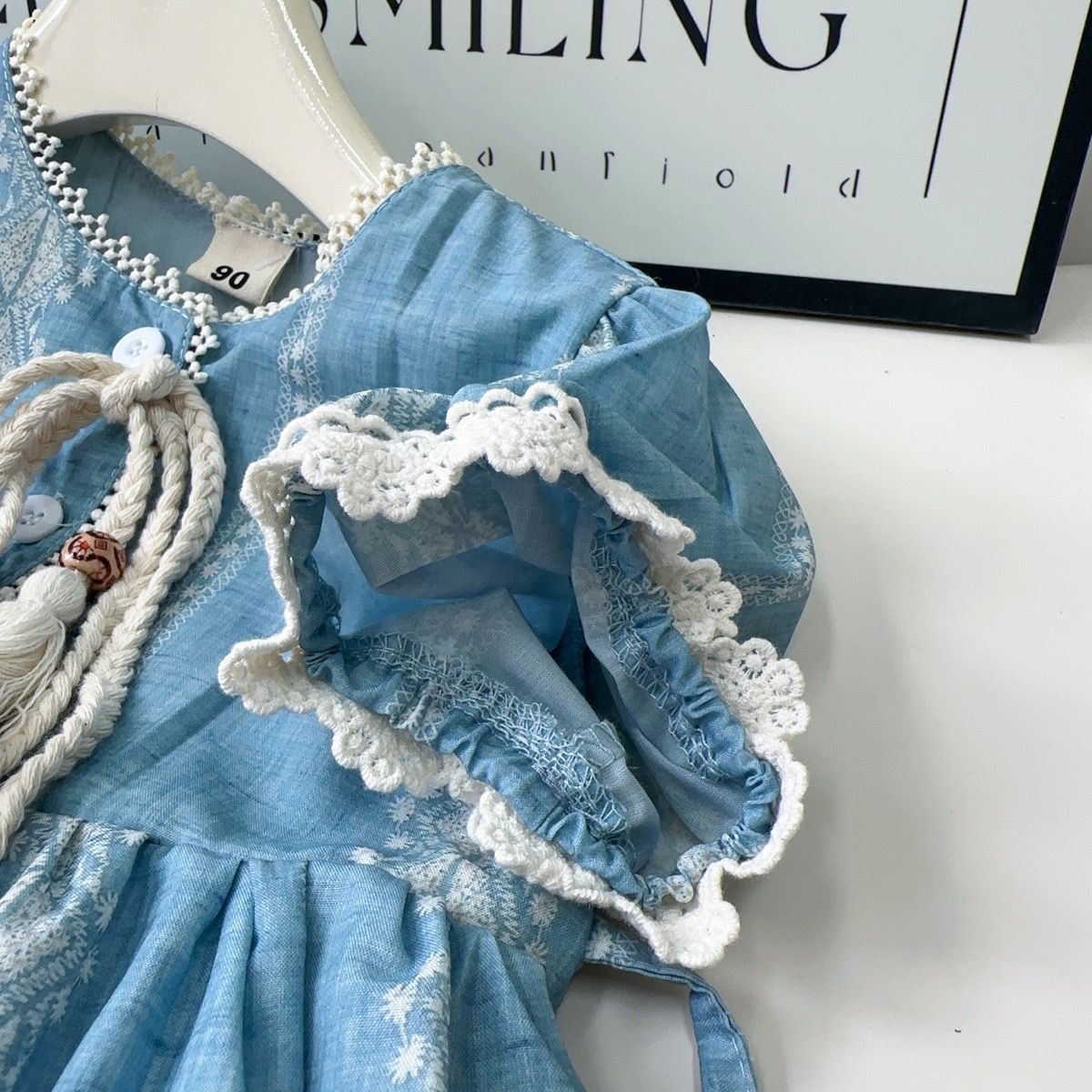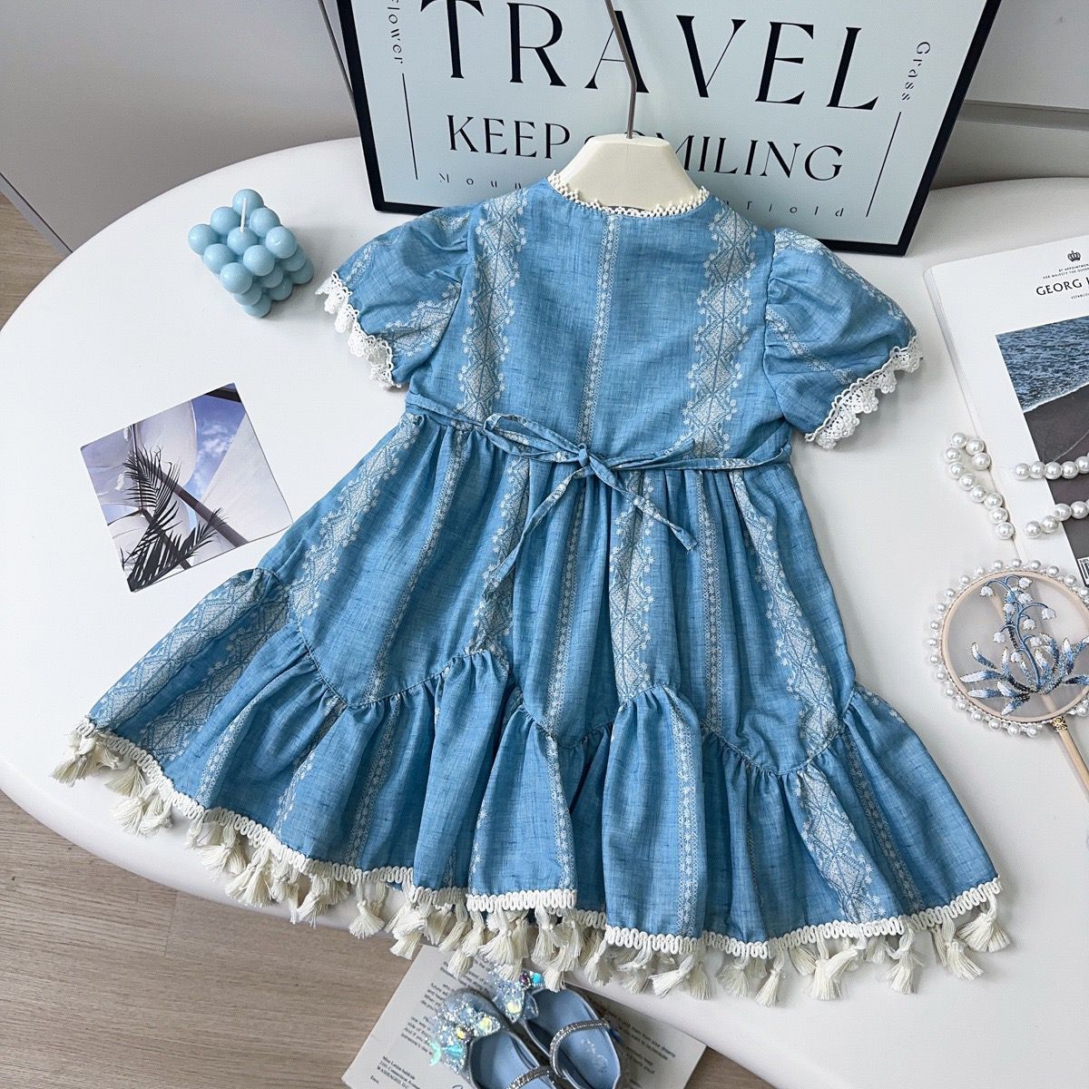 Vestido de niña 2025 Verano Nuevo Manga Corta Bordado Vestido de Princesa Estilo Étnico Vintage Vacaciones Vestido Infantil