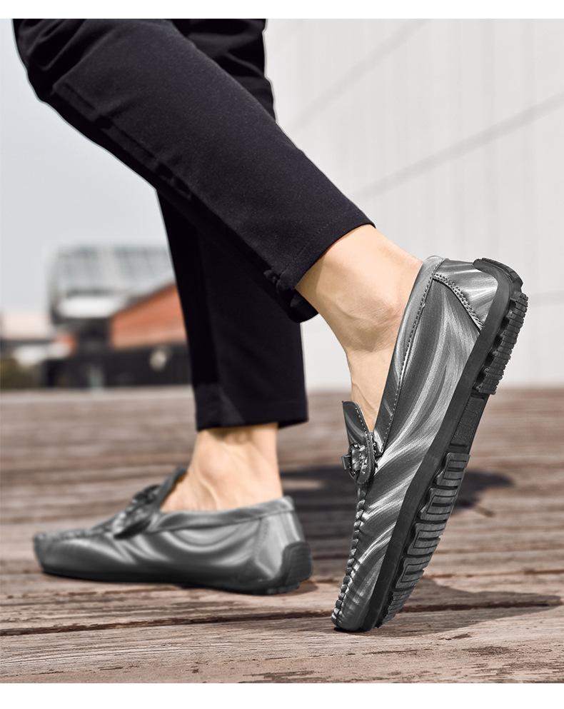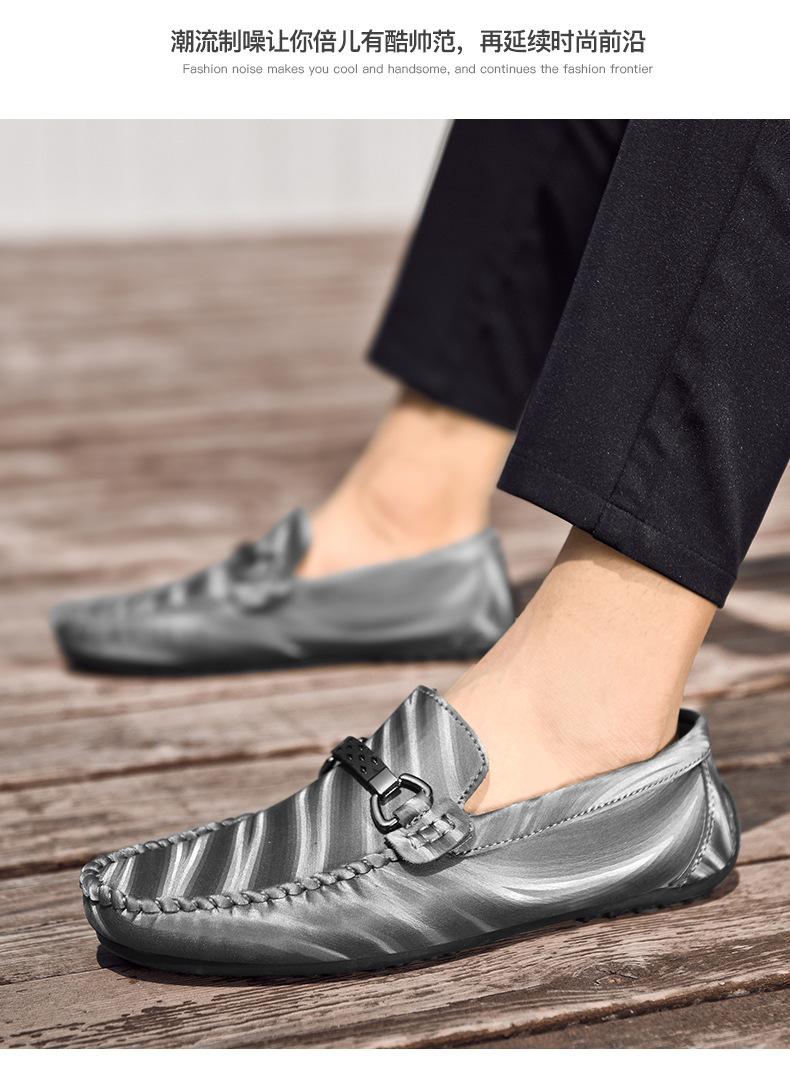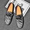 Primavera y Verano Nuevos Zapatos Casuales Slip-on Loafers con Hebilla Metálica para Hombre Suela Blanda para Conducir Zapatos de Cuero Moda Zapatos Beanie