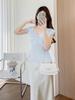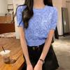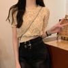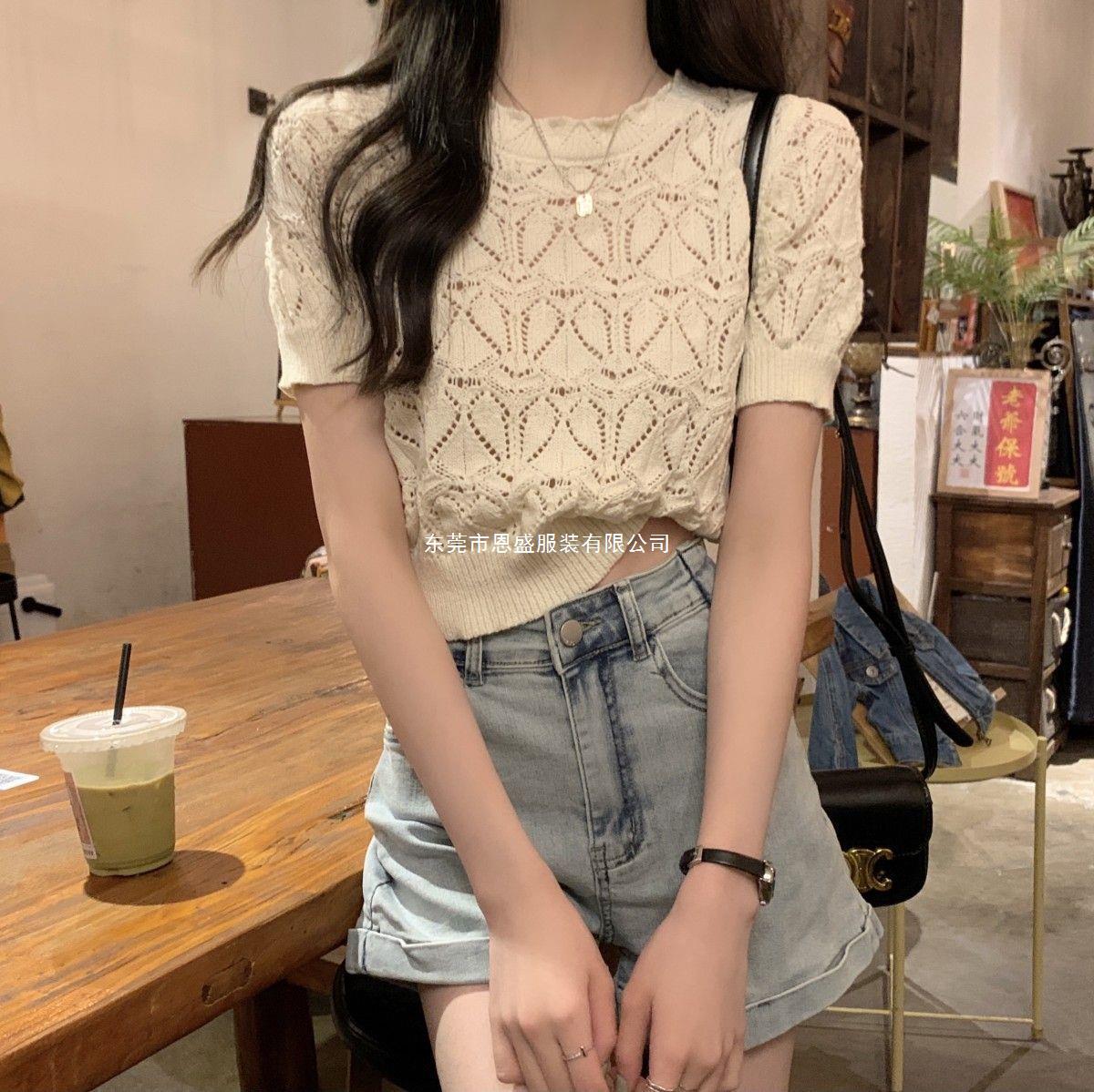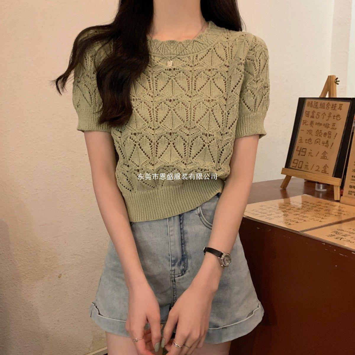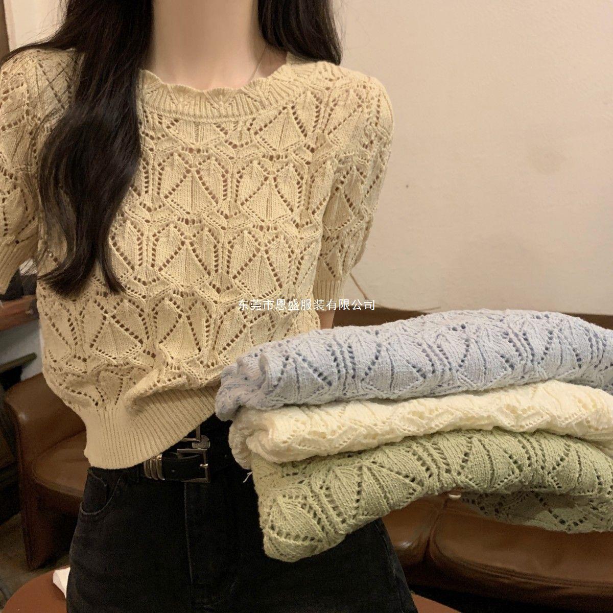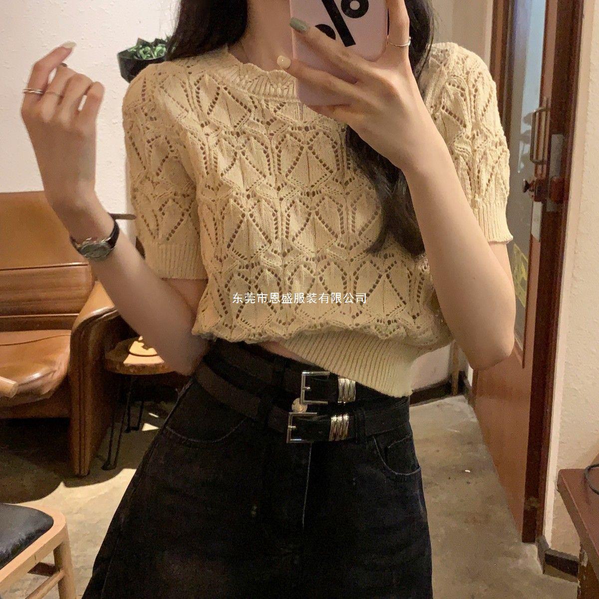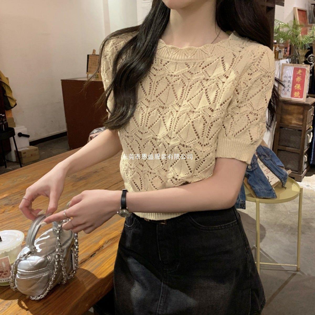 Camiseta Tejida de Seda de Hielo con Recortes de Manga Corta y Cuello Redondo, Diseño Delgado de Verano, Ajuste Entallado de Cintura Alta, Estilo Extranjero, Top Versátil para Mujer