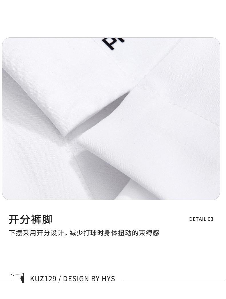 Descripción del Producto | 1 | Bolsillo oculto con cremallera, tejido elástico bidireccional; tejido funcional específico para golf, capa activa impermeable, transpirable y repelente al agua | ||