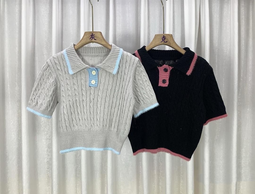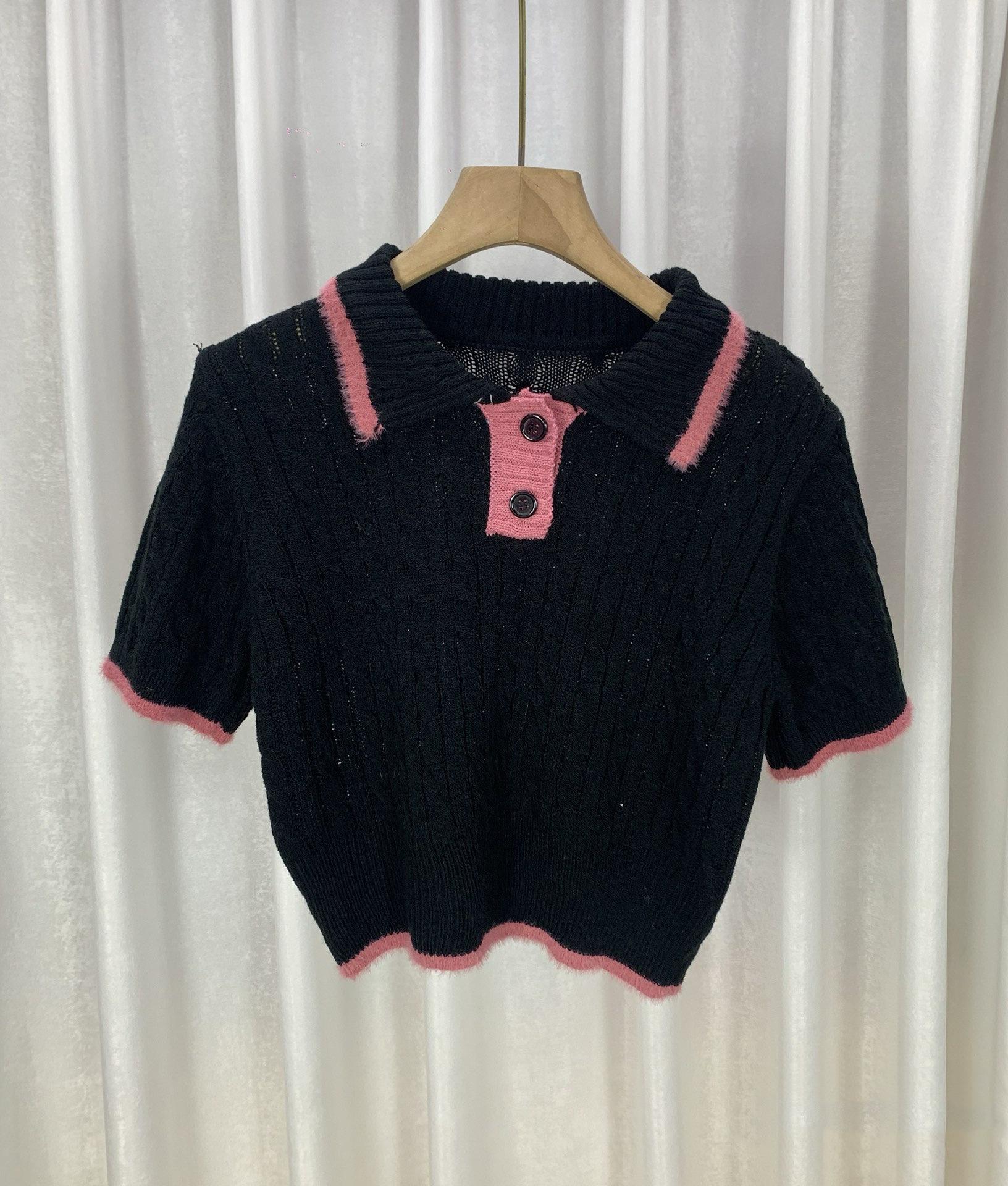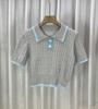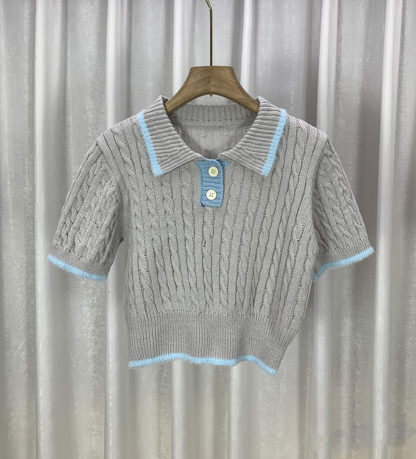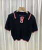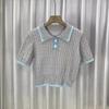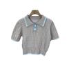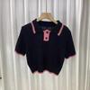 Suéter de punto de manga corta con solapa estilo universitario de tiro real para mujer, dulce, super bonito, diseño nicho con sentido del diseño de verano 2024, top polo