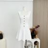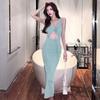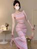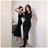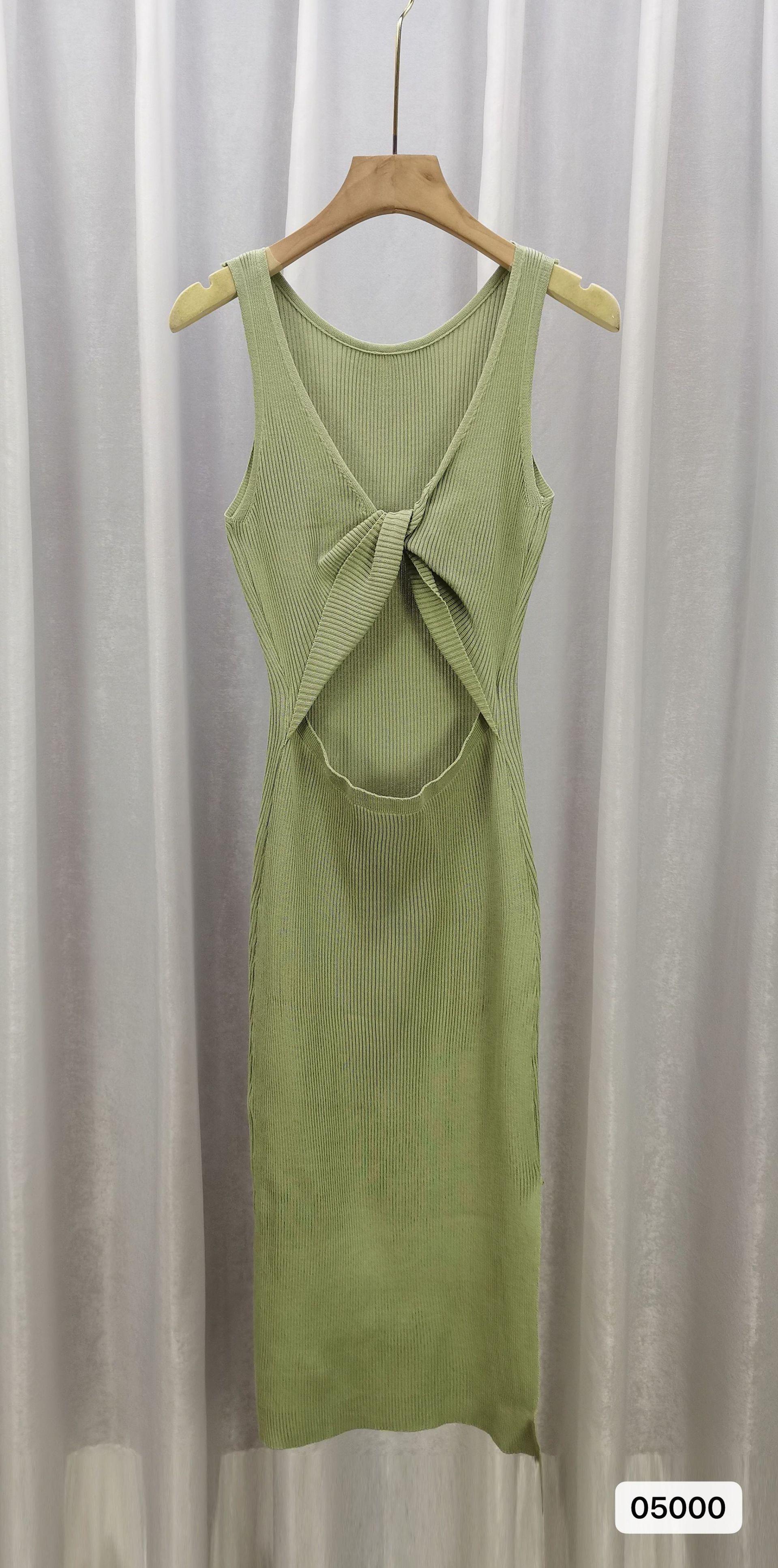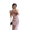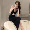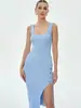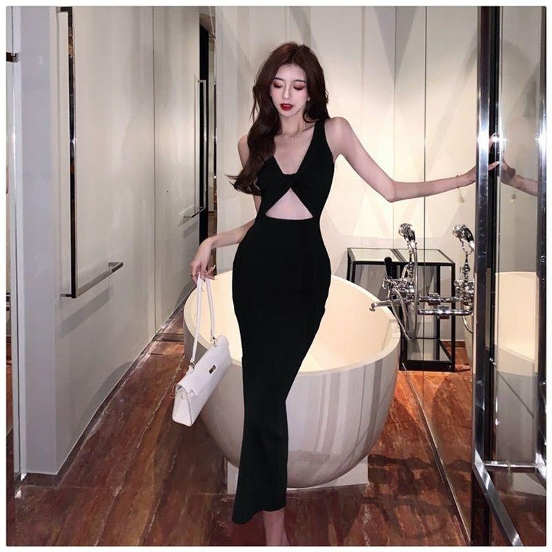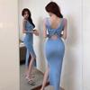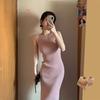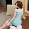 Vestido de punto elegante estilo francés cruzado sin espalda y sin mangas para mujer, nuevo vestido de verano ajustado y adelgazante de longitud media de un solo paso.