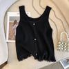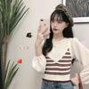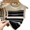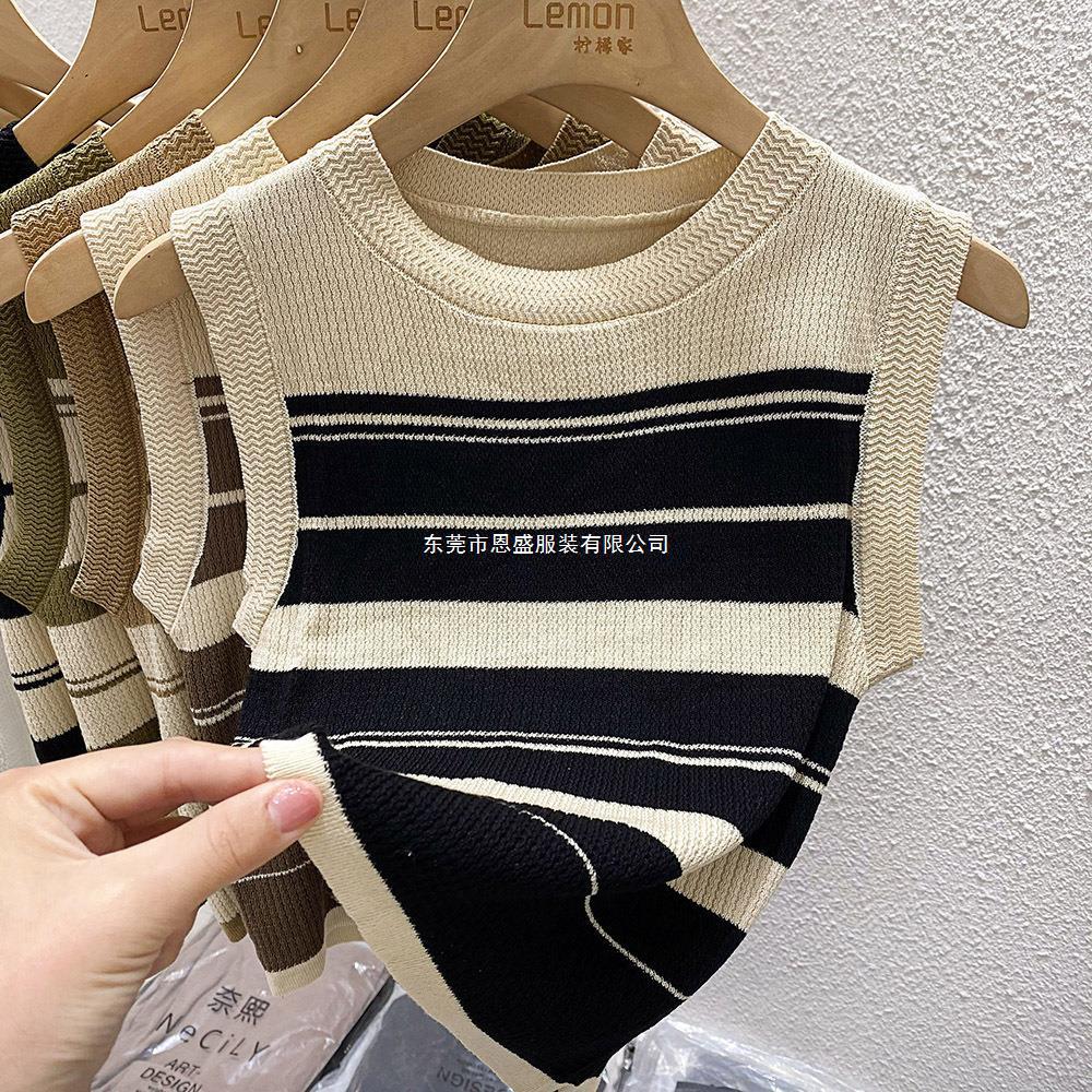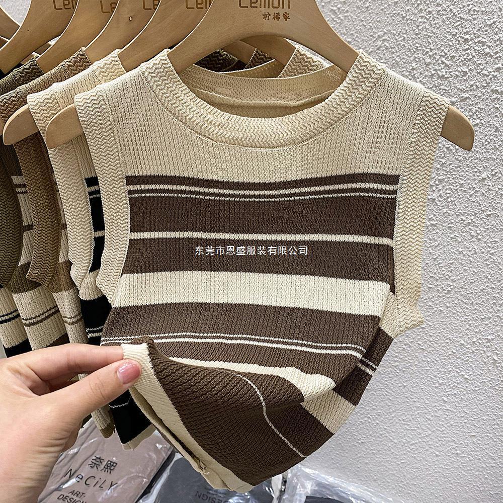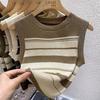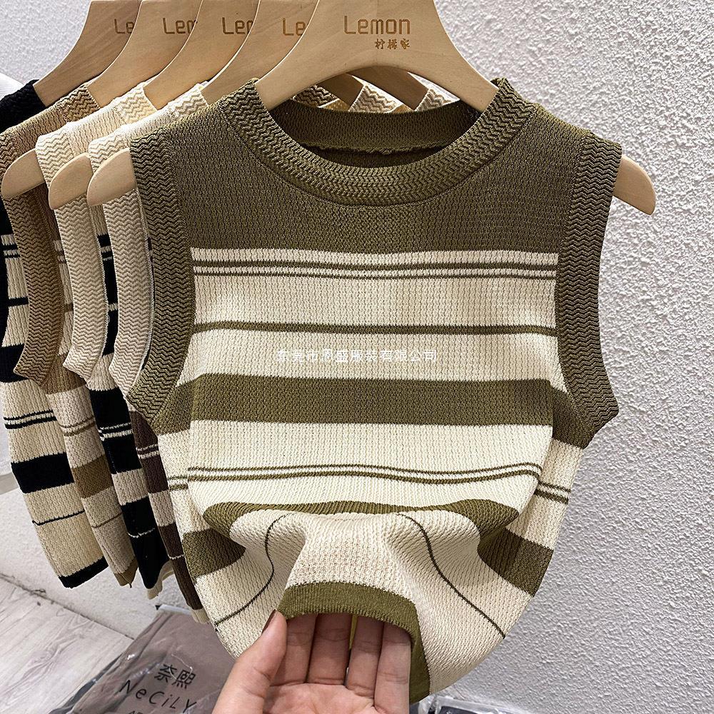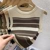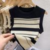 Camisola de punto a rayas de otoño 2024 con camiseta sin mangas estilo occidental retro, top corto básico para mujer