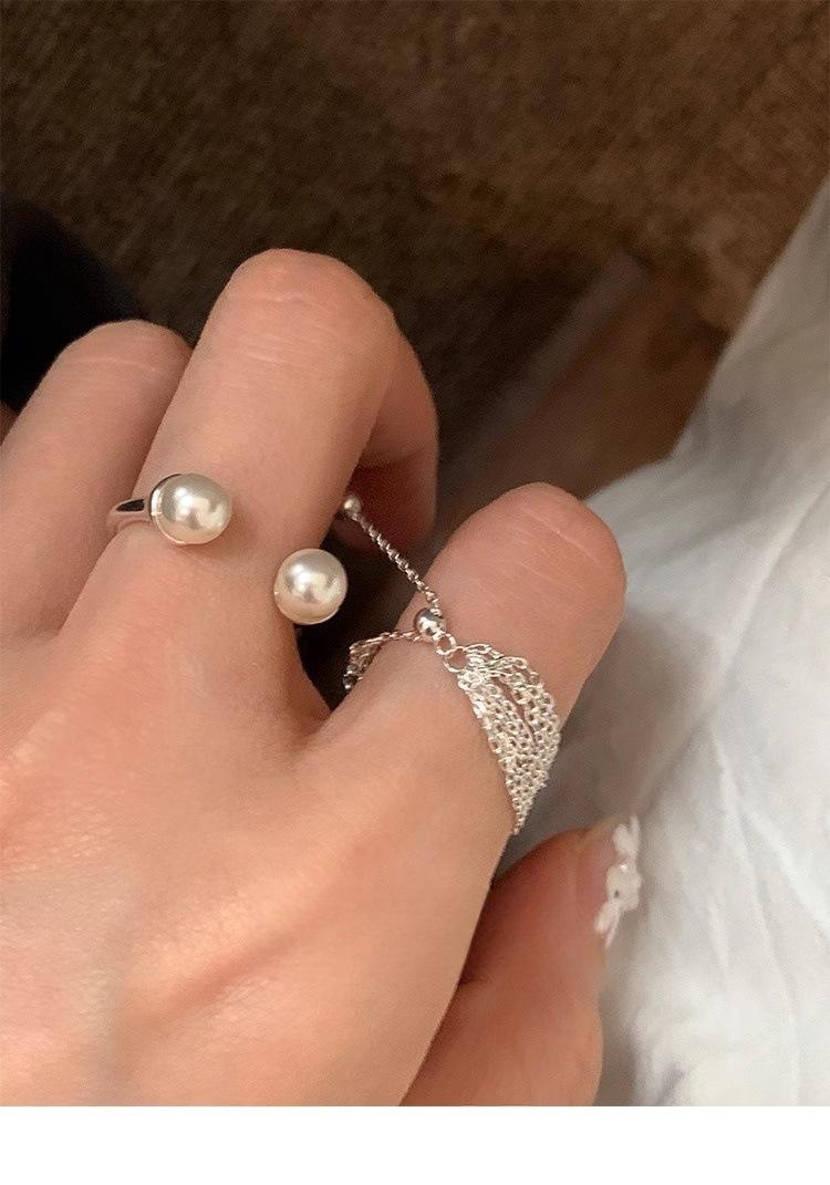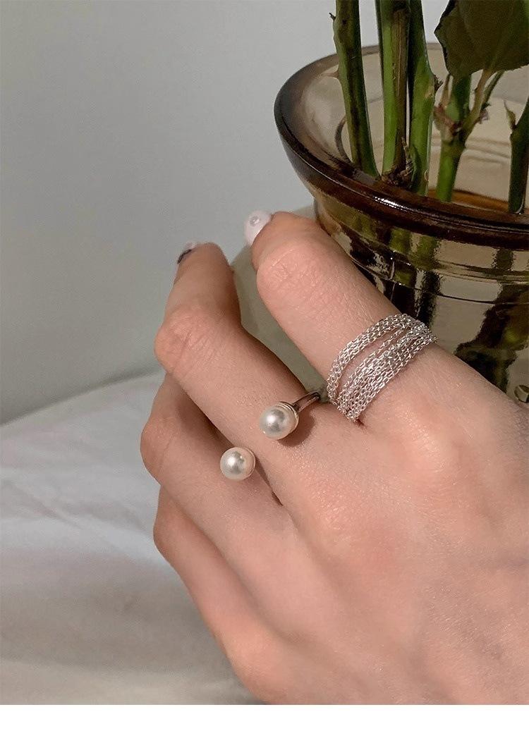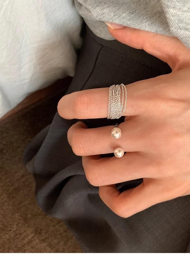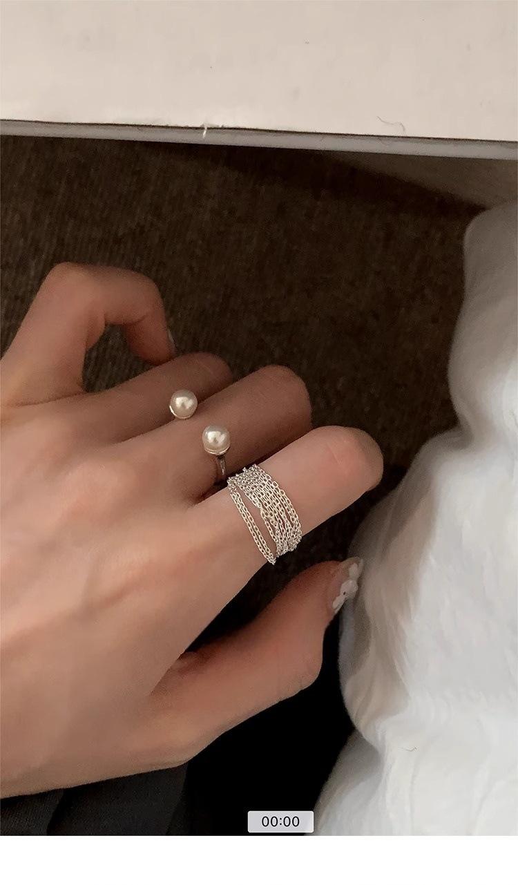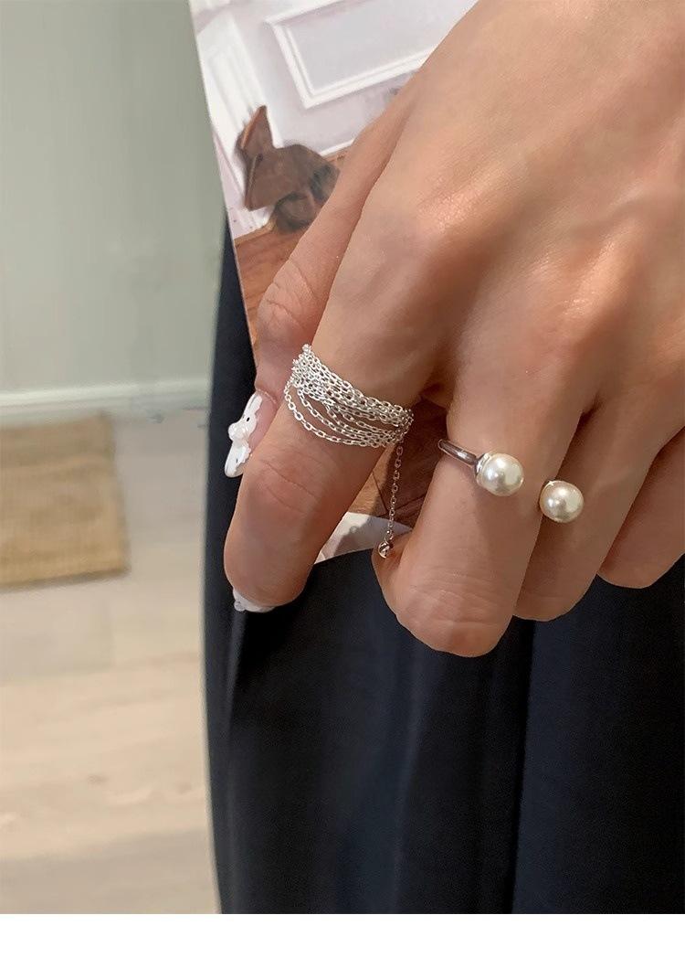 Anillo de perlas de cadena multicapa de nicho de alta gama para mujer, personalidad única, moda, temperamento, viajero, anillo versátil