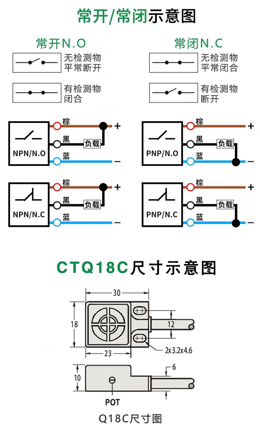 CTQ18C-K10P1: distance: 1-10mm adjustable PNP normally open convex head non-embedded Q18C