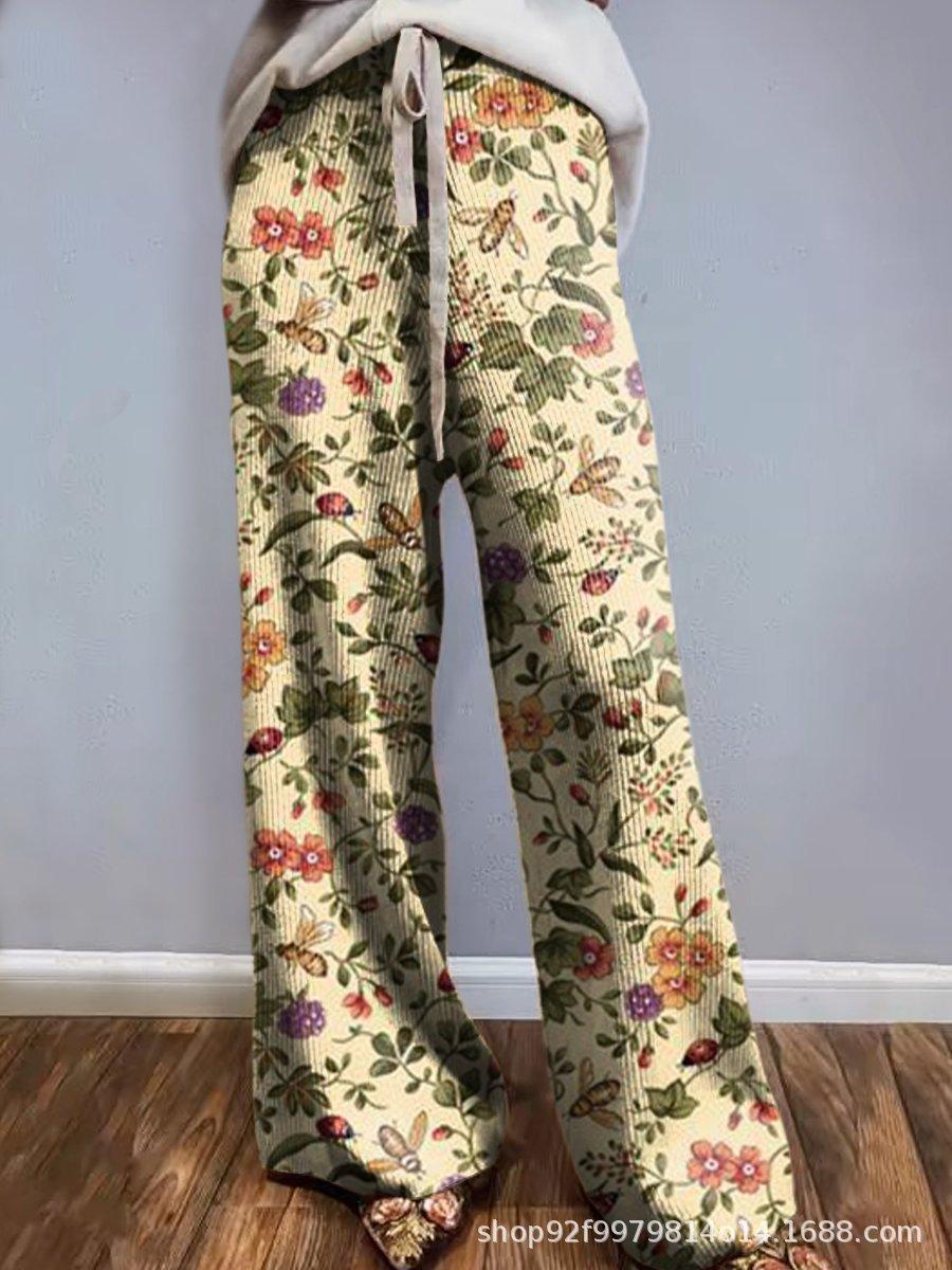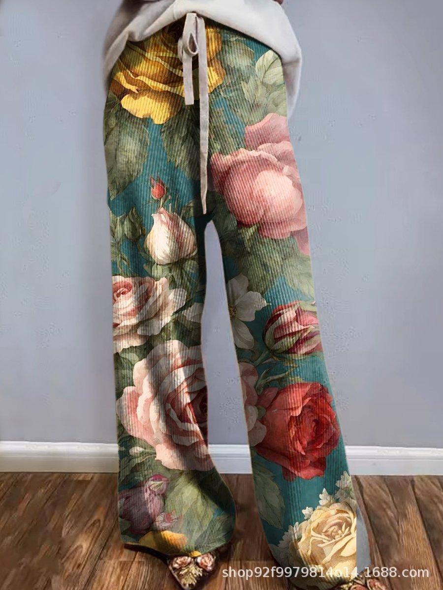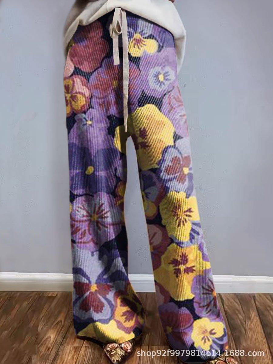2024 Estación Independiente Transfronteriza Nuevo Estampado de Patrón Bohemio 3D Europeo y Americano Casual Pantalones Deportivos de Pierna Ancha