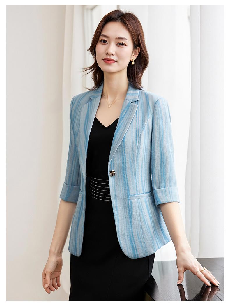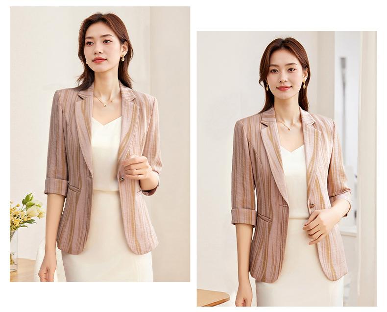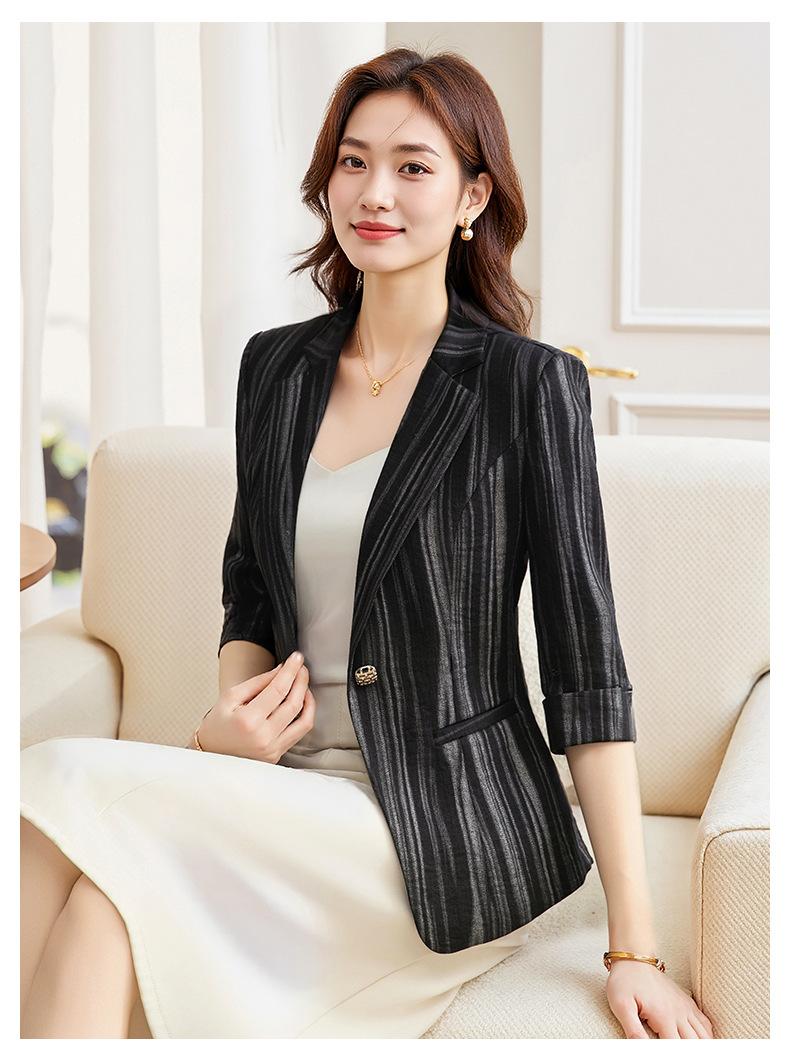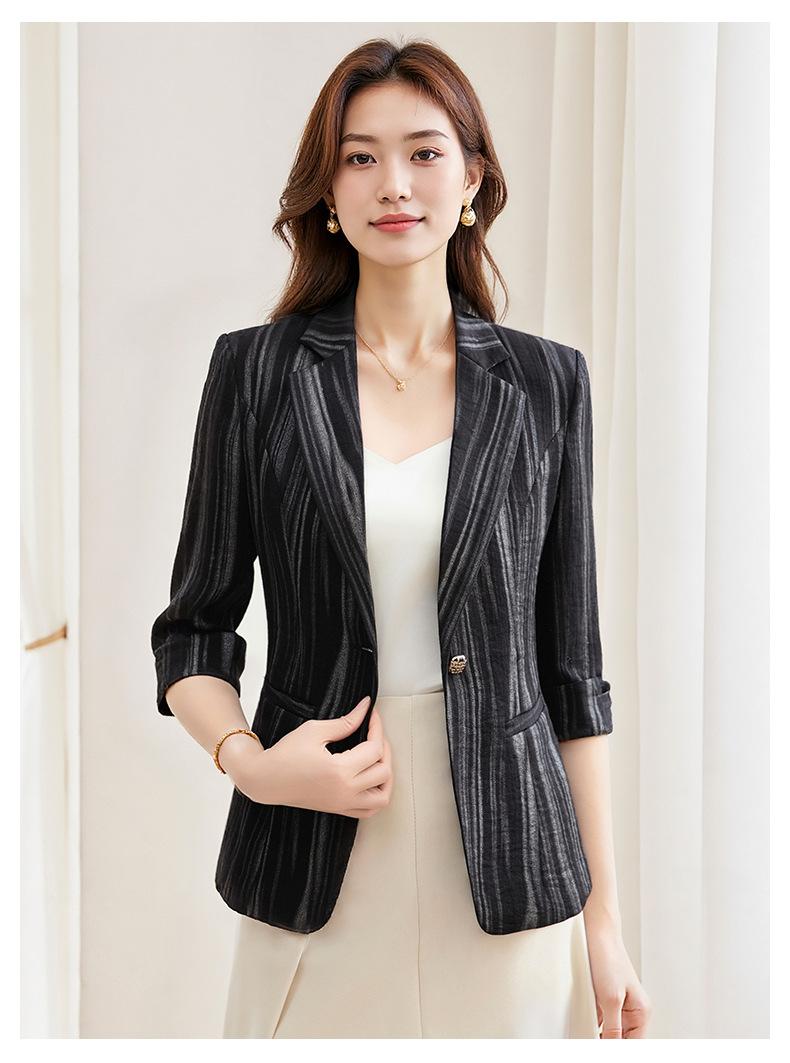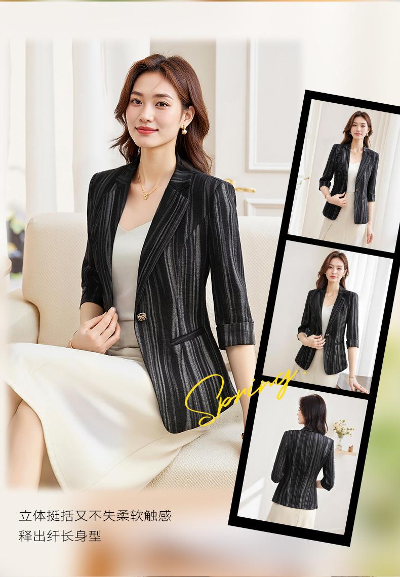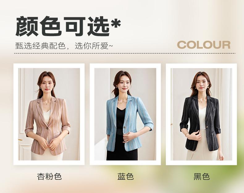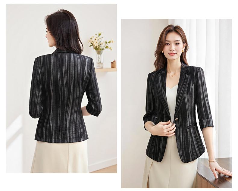 Primavera y Verano 2025 Nuevo Estilo Temperamento Estilo Diosa Top para el Lugar de Trabajo Traje Pequeño Casual Manga Siete Cuartos Chaqueta de Traje a Rayas para Mujer