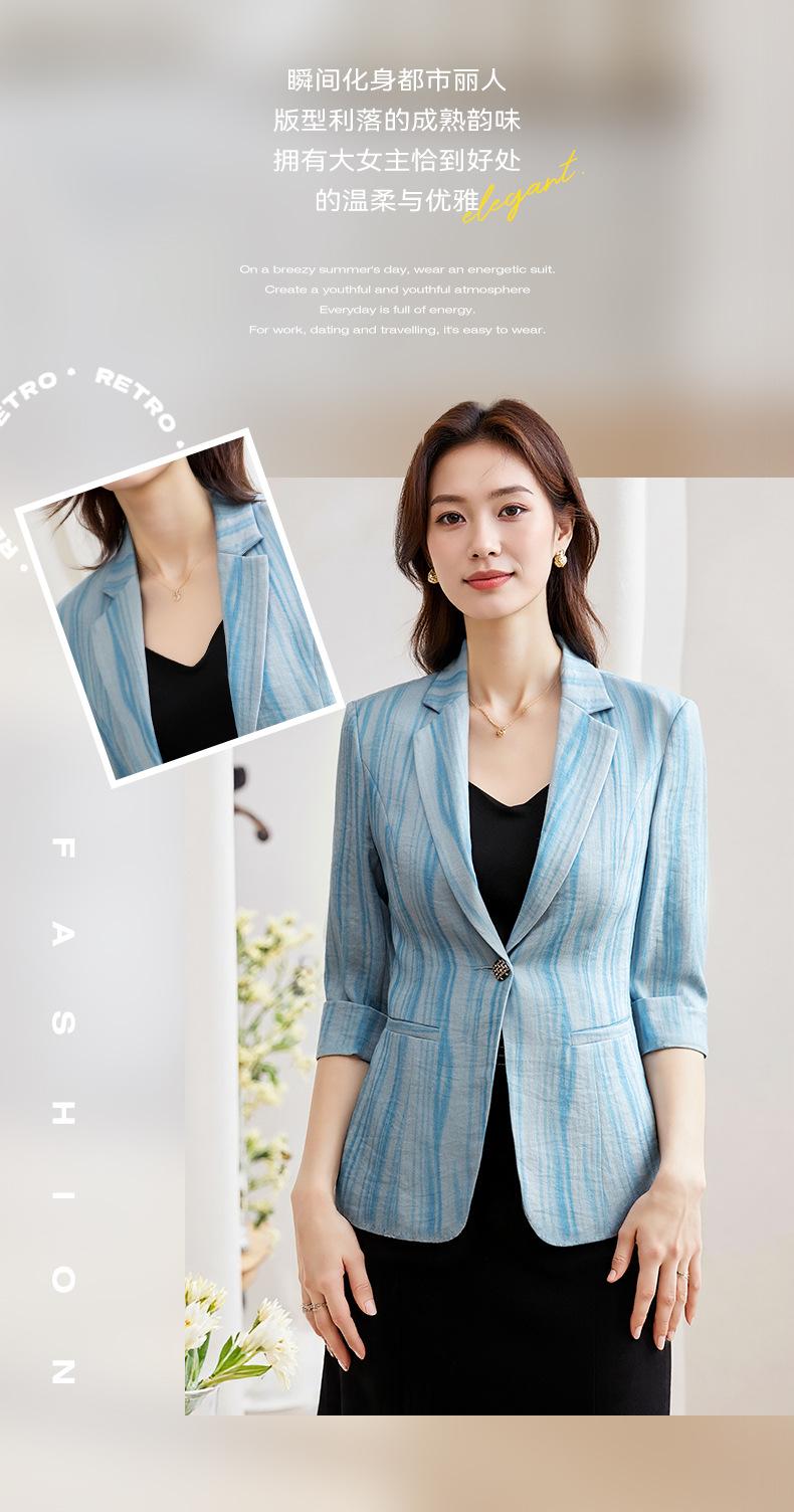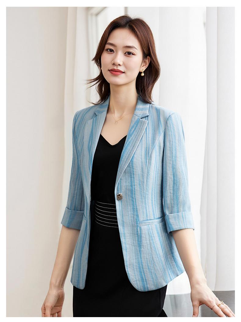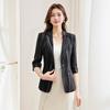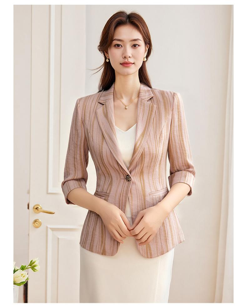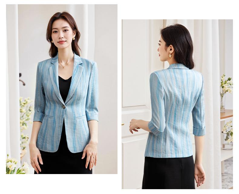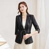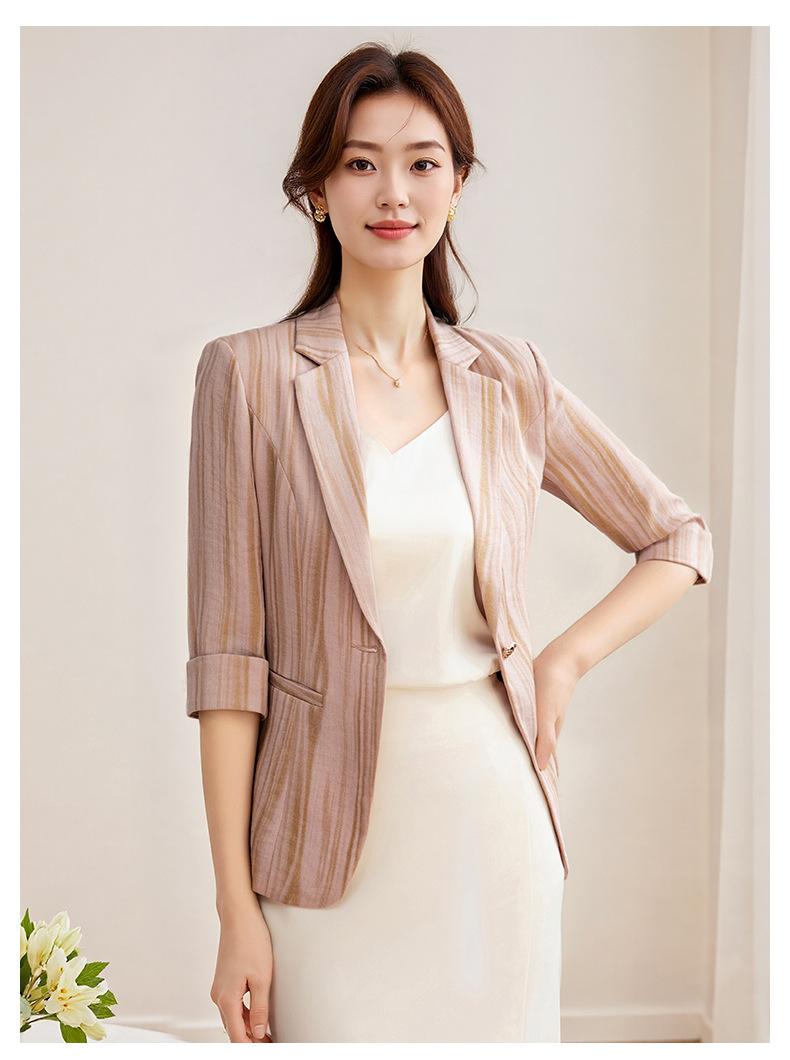 Primavera y Verano 2025 Nuevo Estilo Temperamento Estilo Diosa Top para el Lugar de Trabajo Traje Pequeño Casual Manga Siete Cuartos Chaqueta de Traje a Rayas para Mujer