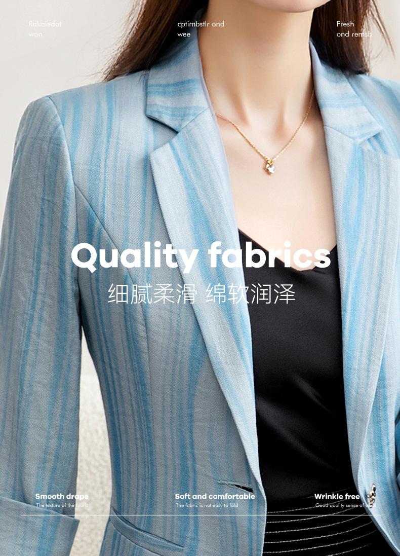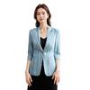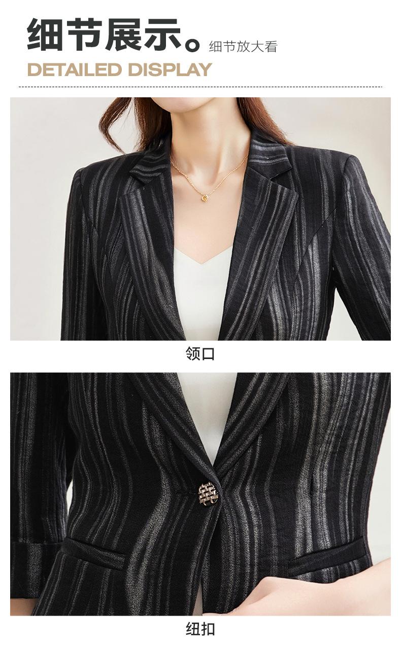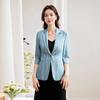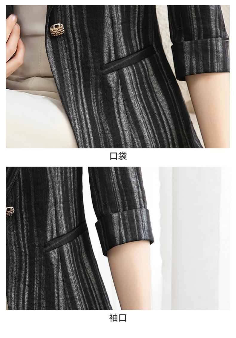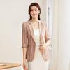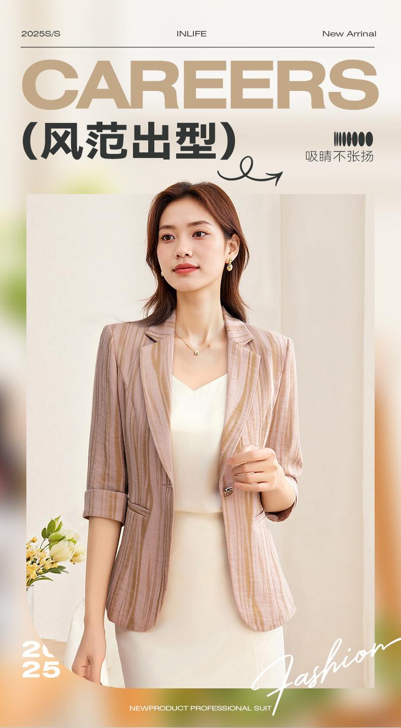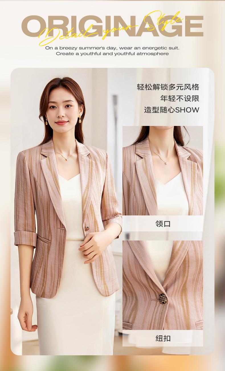 Primavera y Verano 2025 Nuevo Estilo Temperamento Estilo Diosa Top para el Lugar de Trabajo Traje Pequeño Casual Manga Siete Cuartos Chaqueta de Traje a Rayas para Mujer