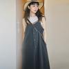 Z'Sura Moda de Verano Estilo Resort Francés Junto al Mar Vestido Suelto Estampado de Tirante Único con Hombros Descubiertos 5107365