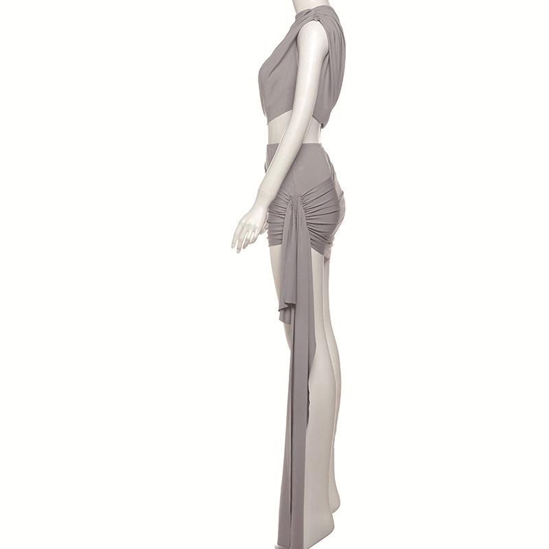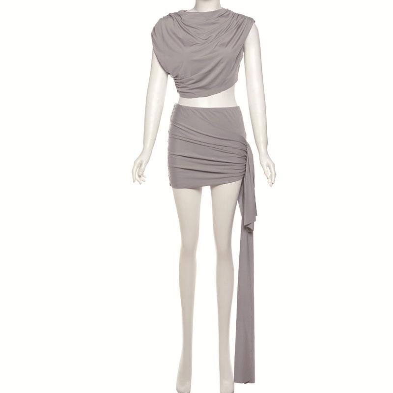 Conjunto de falda con top corto sexy de estilo europeo y americano transfronterizo 2025 para mujer, corte ajustado con cinturón de cadera