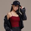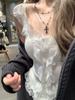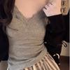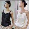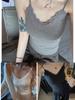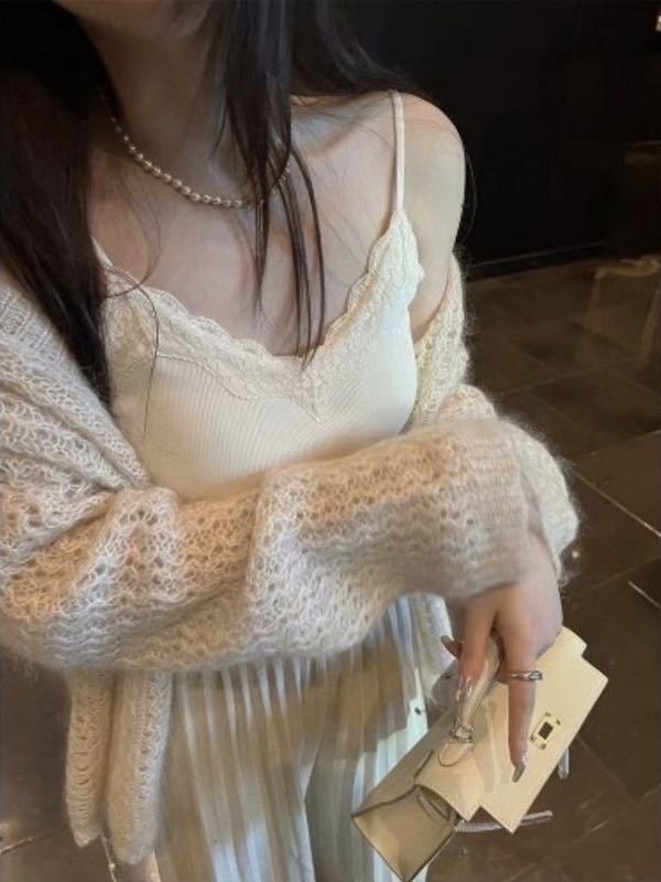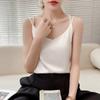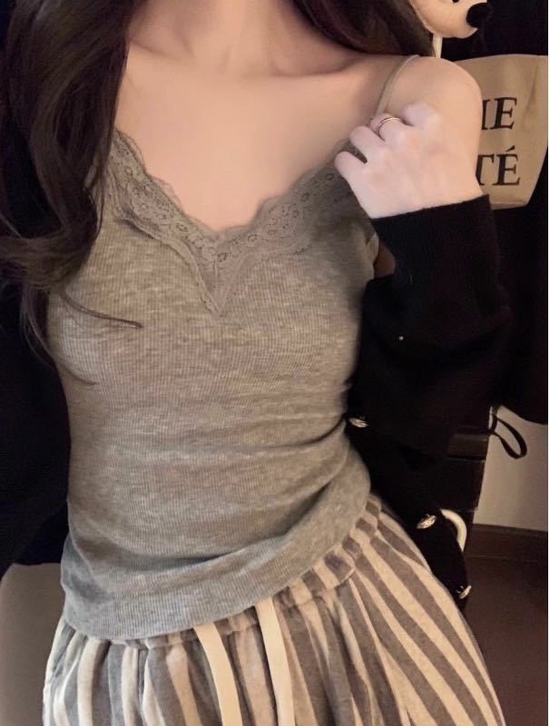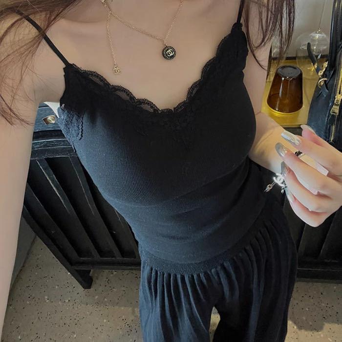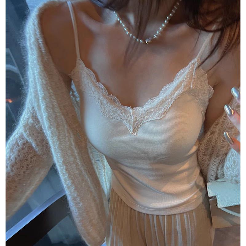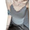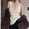 Camisola de encaje con cuello en V y marca para mujer, otoño e invierno 2024, nuevo estilo, cálida, sin mangas, con almohadilla interior en el pecho