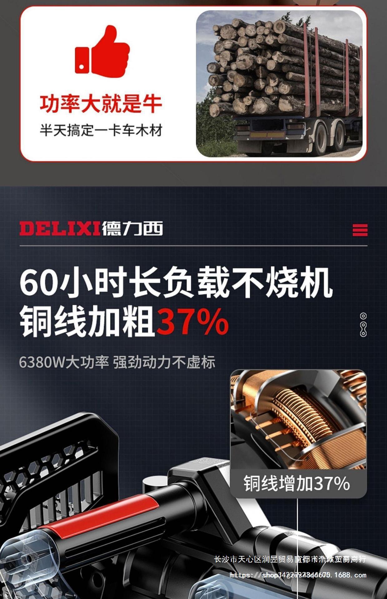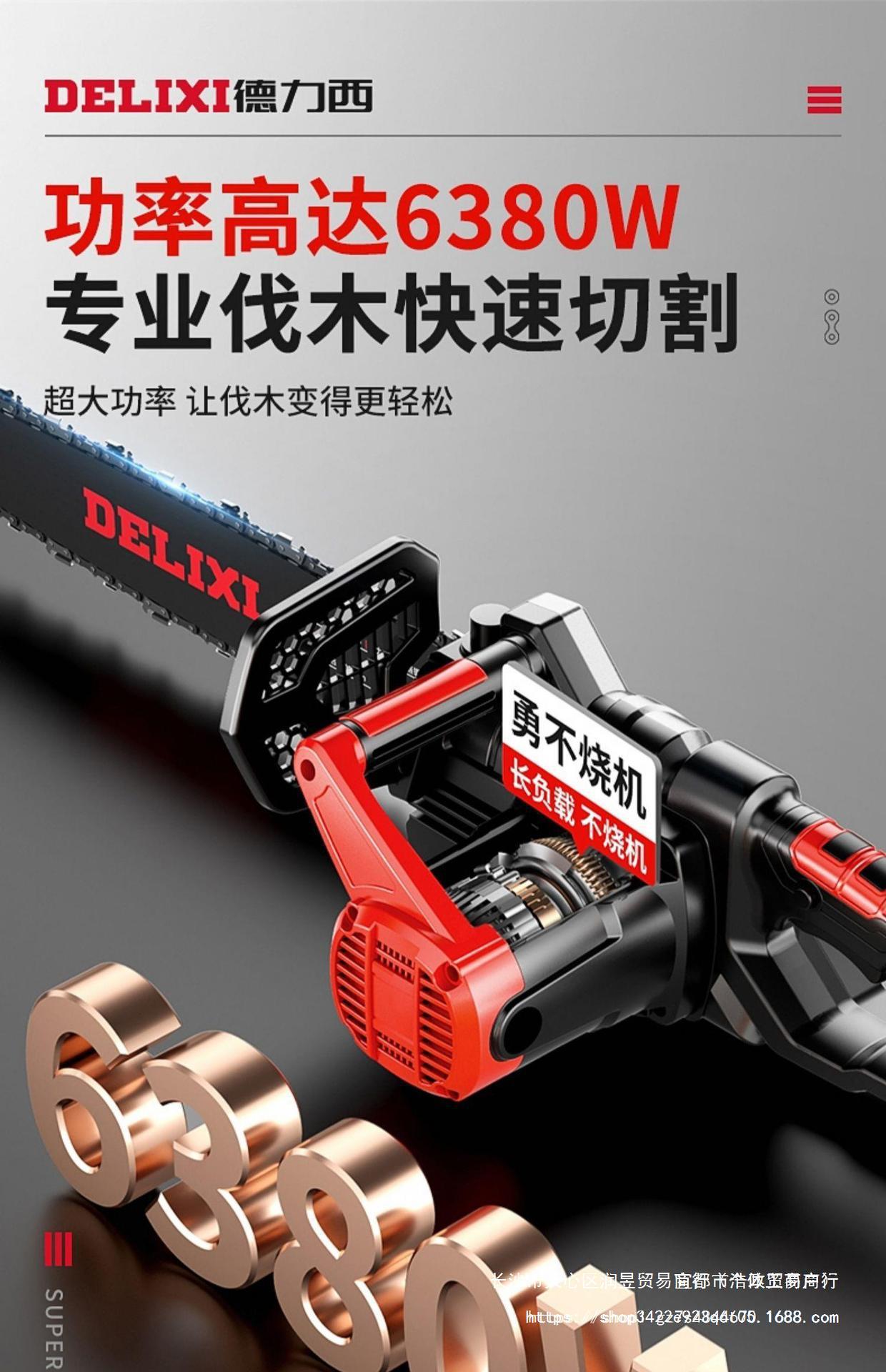 Motosierra eléctrica Delixi para uso doméstico, motosierra eléctrica pequeña de mano para cortar árboles con alimentación de CA y motor totalmente de cobre