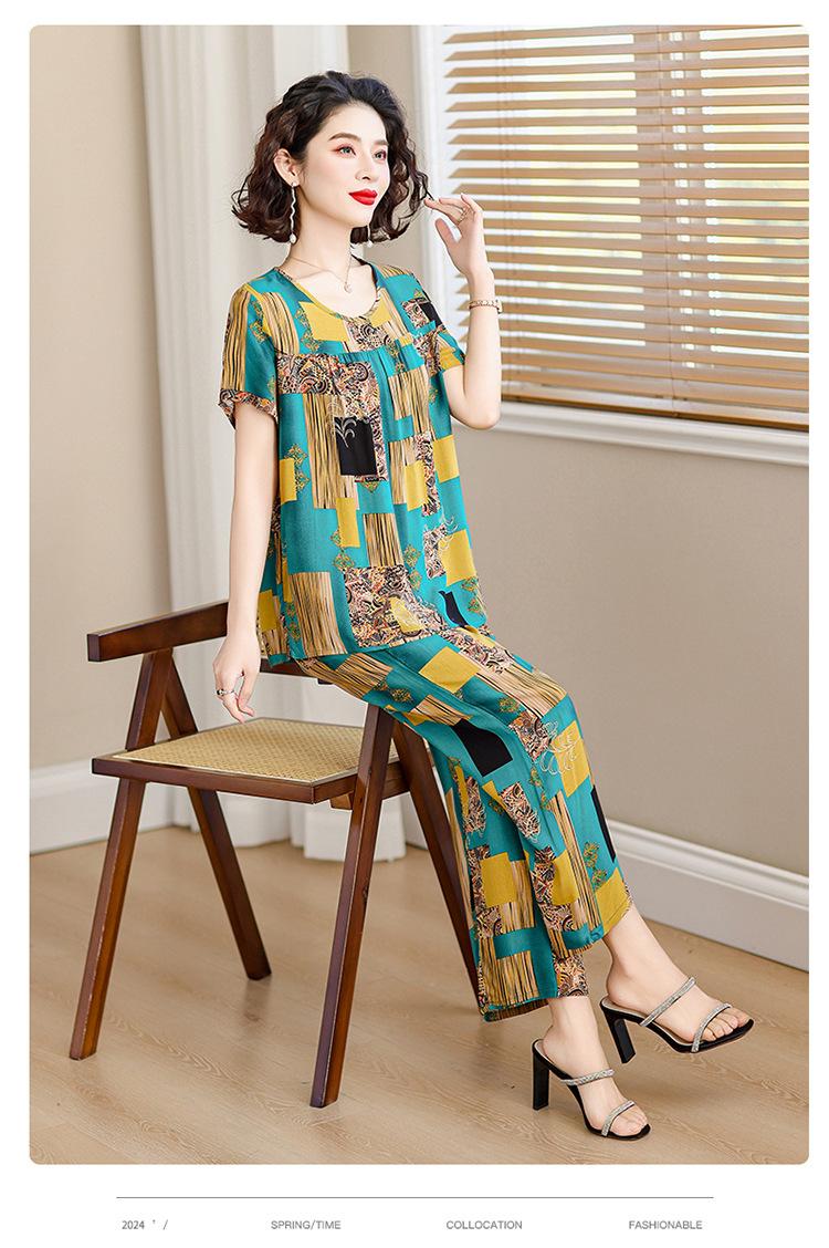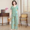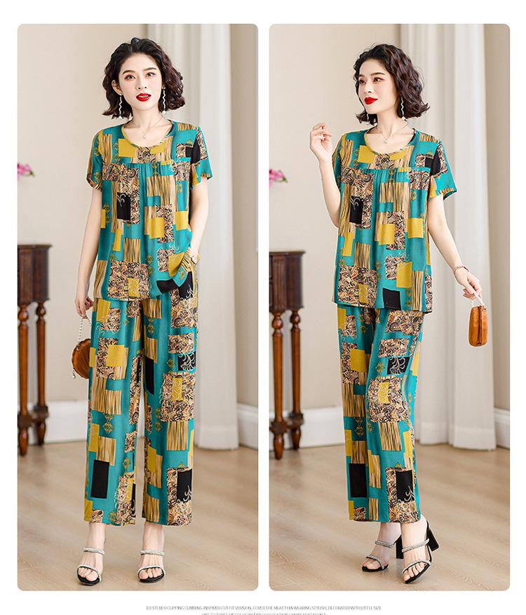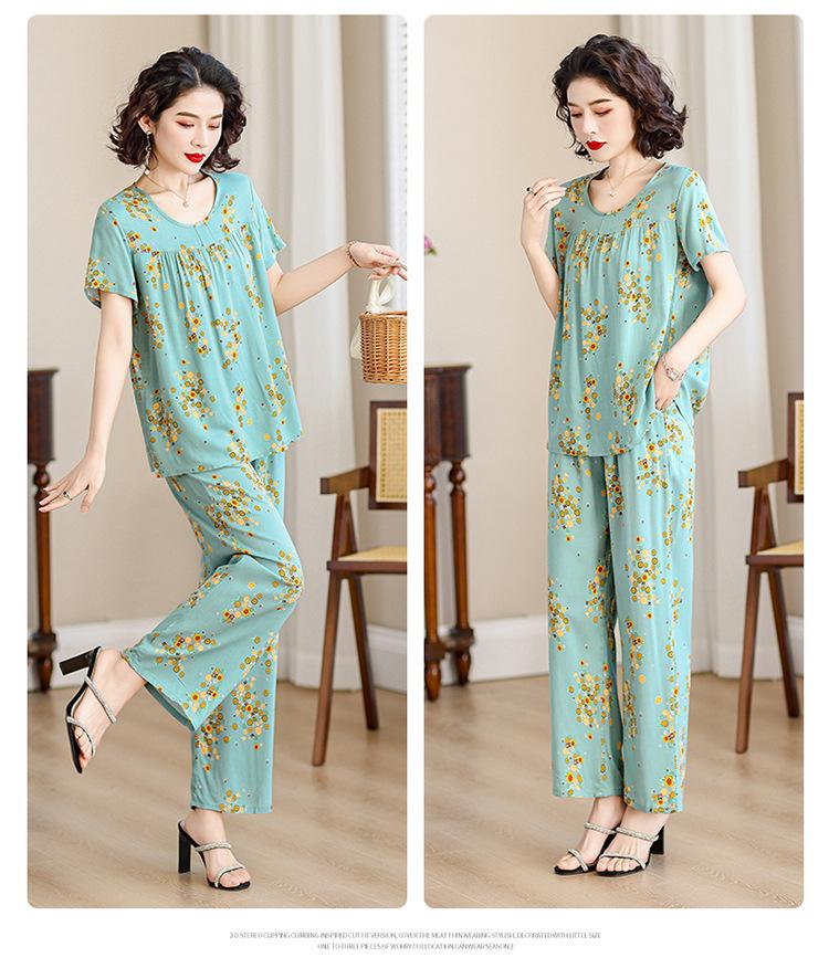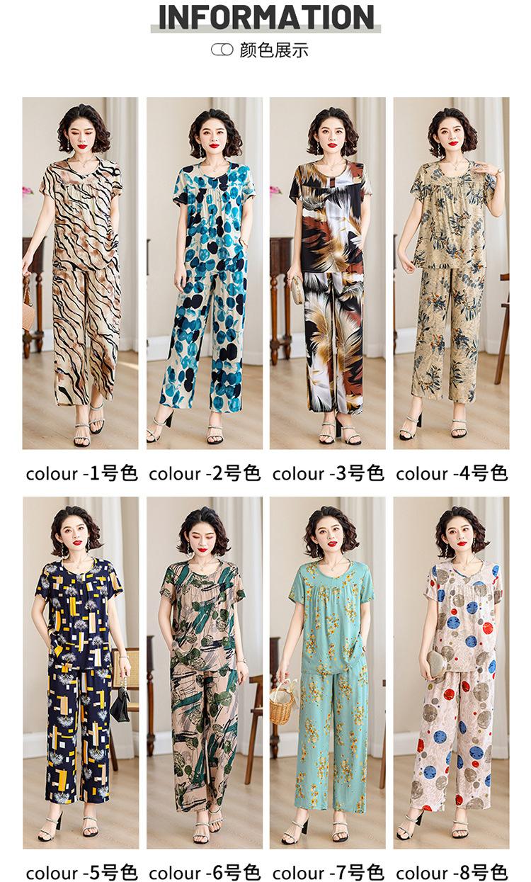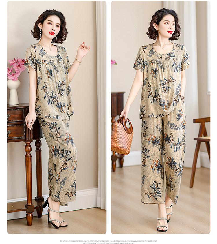 Traje de Algodón Seda de Verano para Mujeres de Mediana Edad y Mayores, Suelto, Top de Manga Corta Casual de Dos Piezas para el Hogar de Madre de Mediana Edad