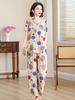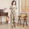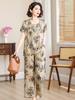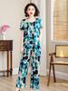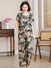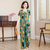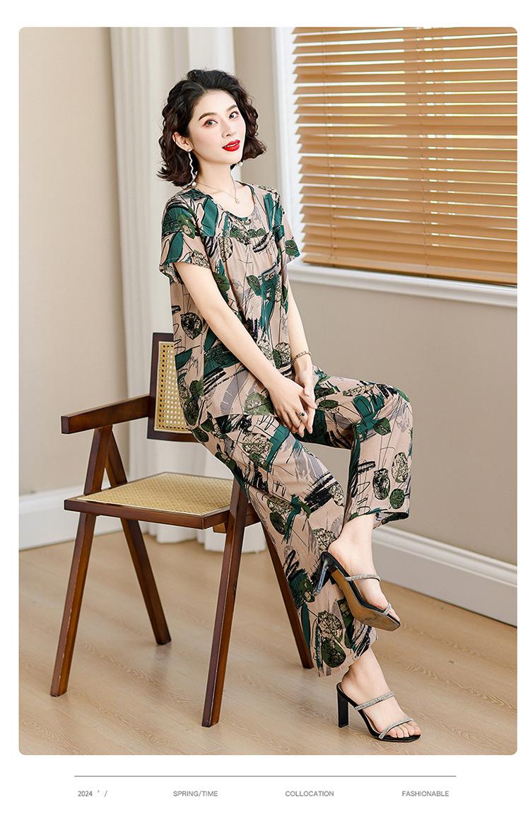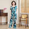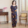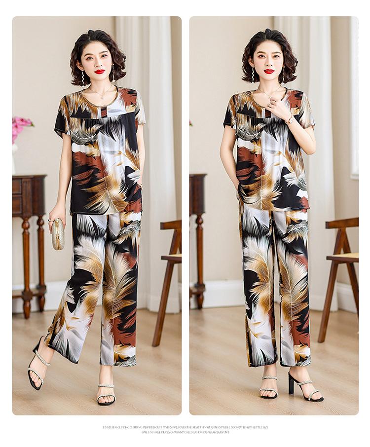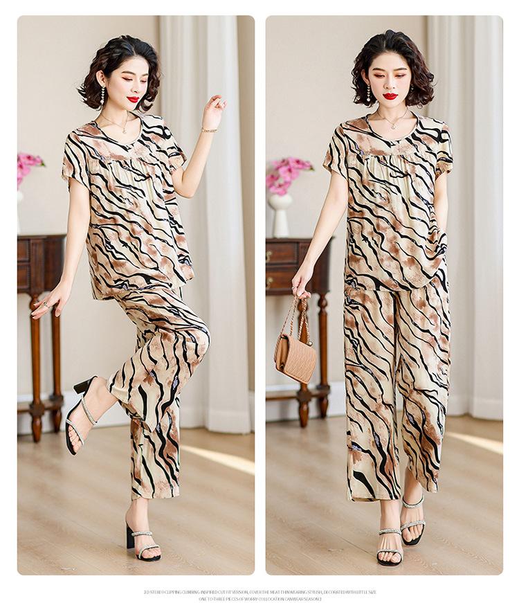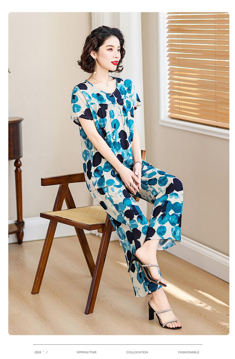 Traje de Algodón Seda de Verano para Mujeres de Mediana Edad y Mayores, Suelto, Top de Manga Corta Casual de Dos Piezas para el Hogar de Madre de Mediana Edad