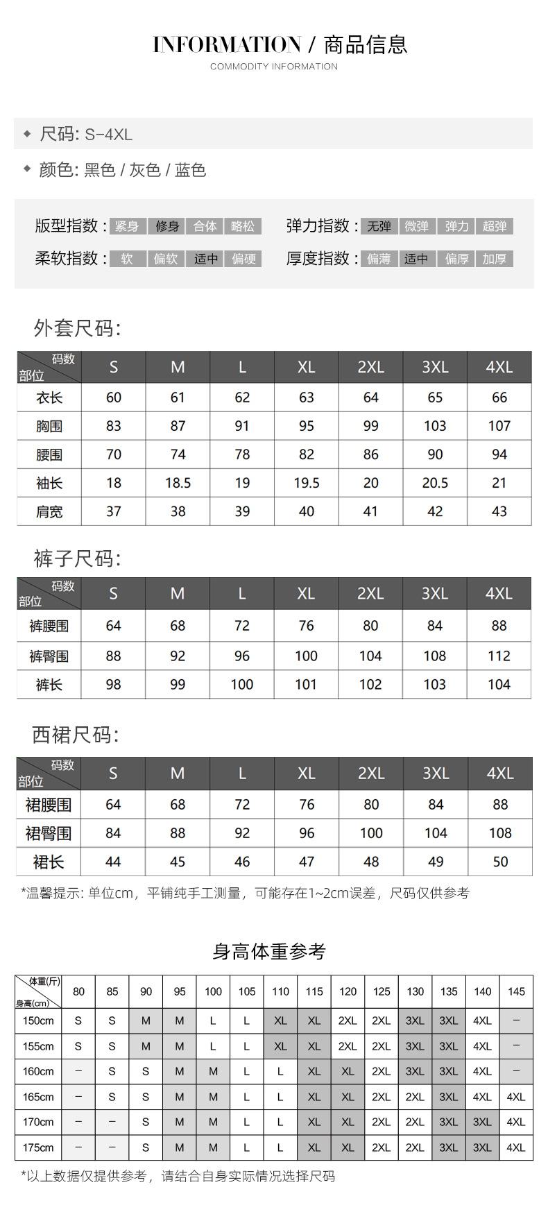 Gray one-piece suit, Blue one-piece suit, Black one-piece suit, Gray one-piece skirt, Blue one-piece skirt, Bl...