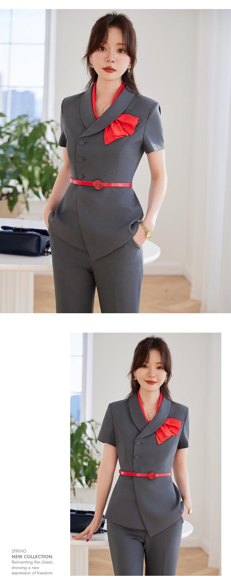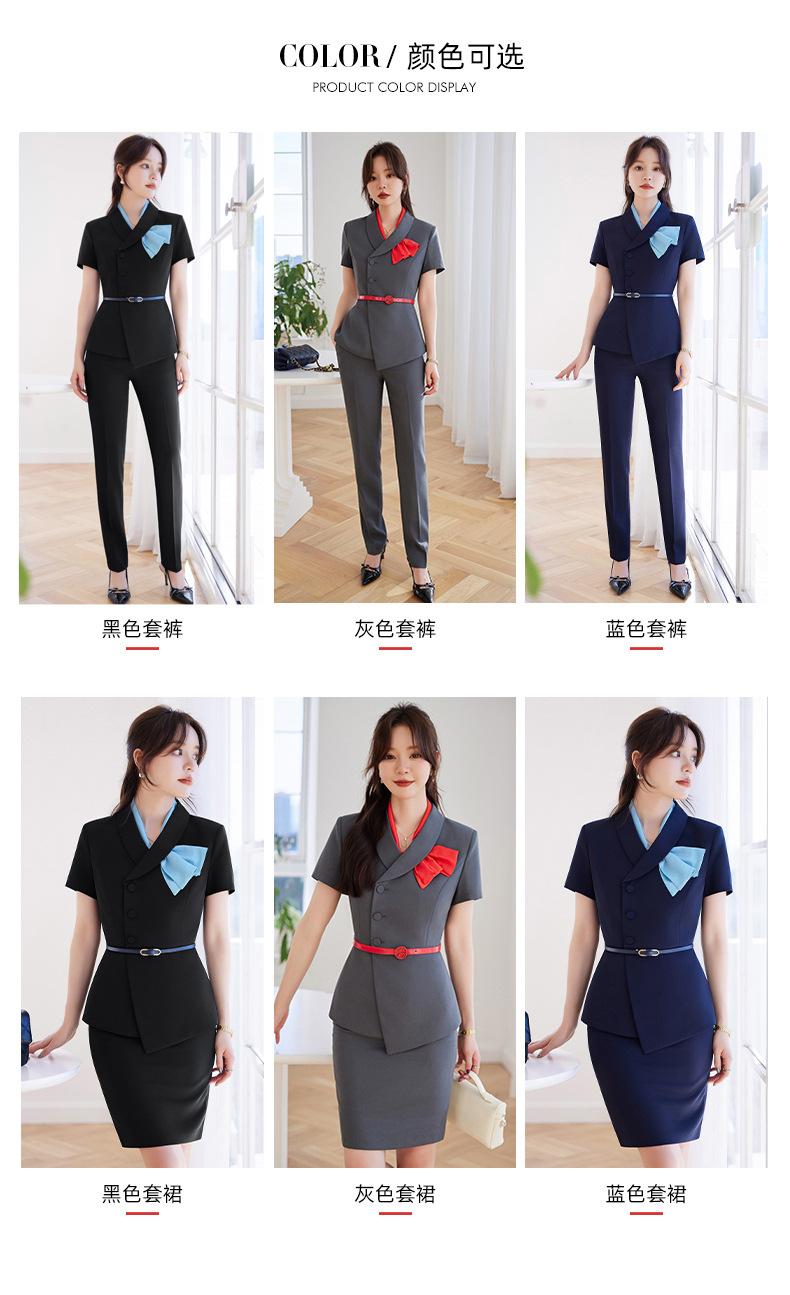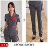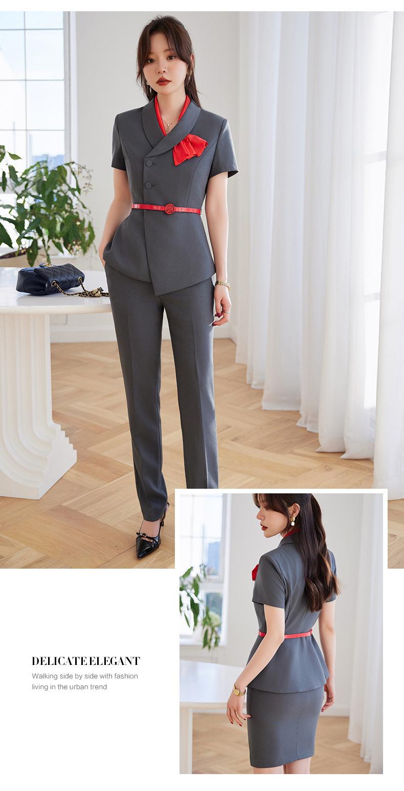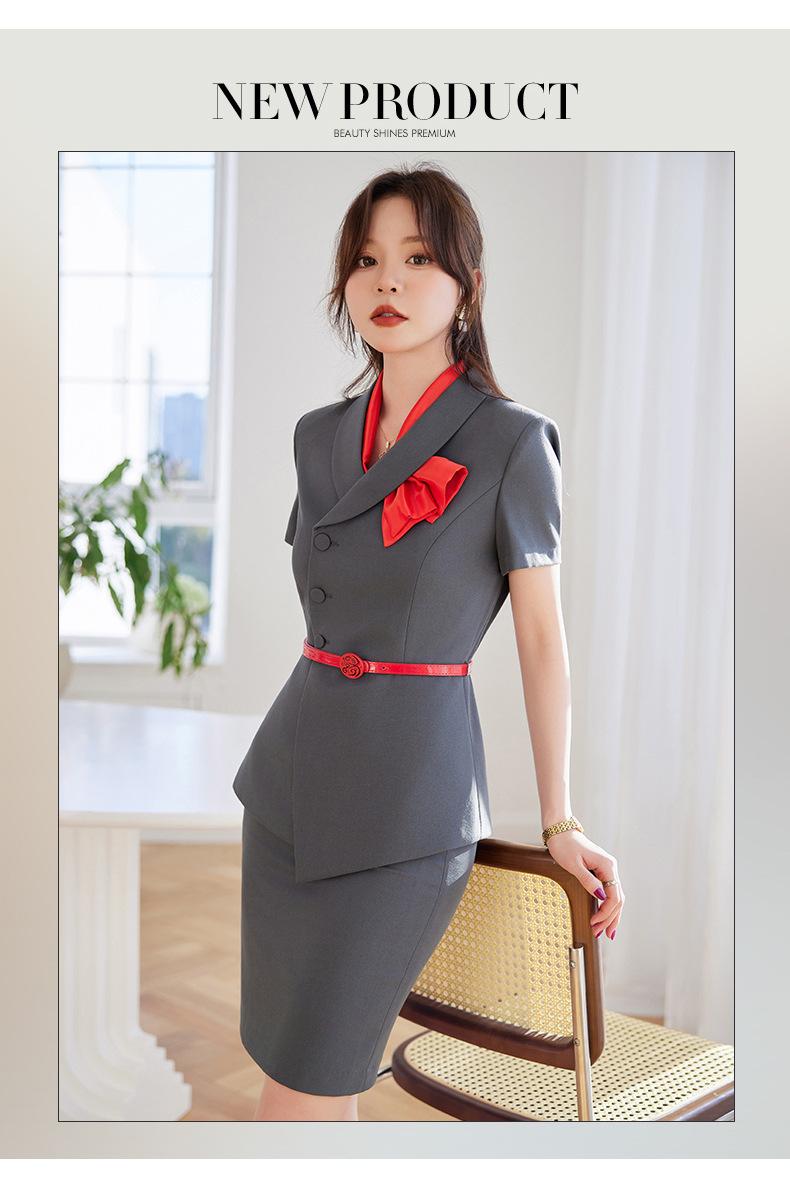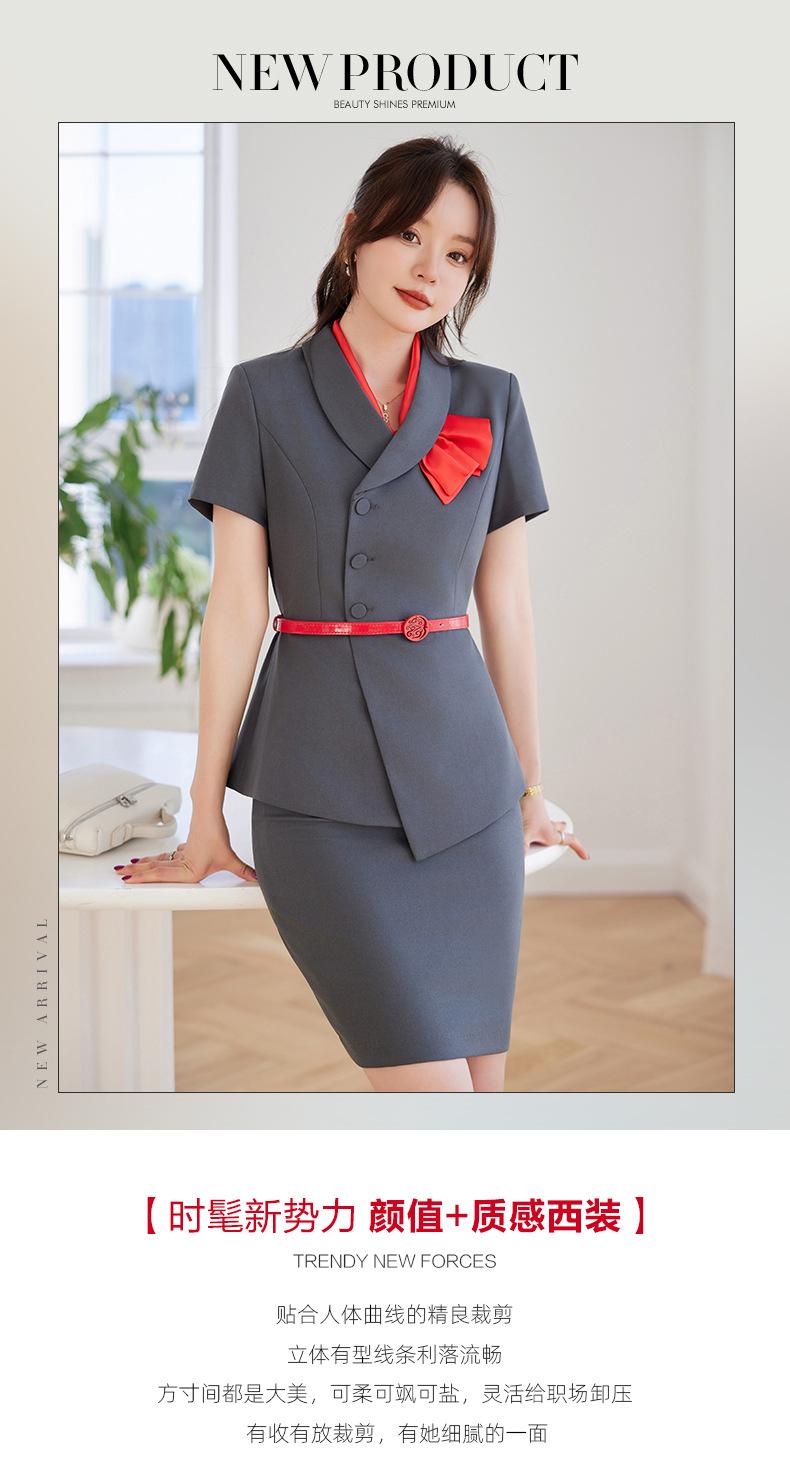 Verano 2024 nuevo traje gris de manga corta chaqueta pantalones falda traje de negocios de dos piezas para mujer commuter