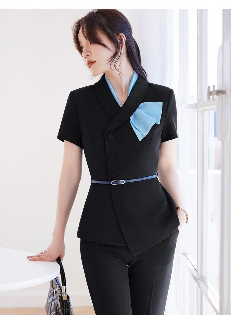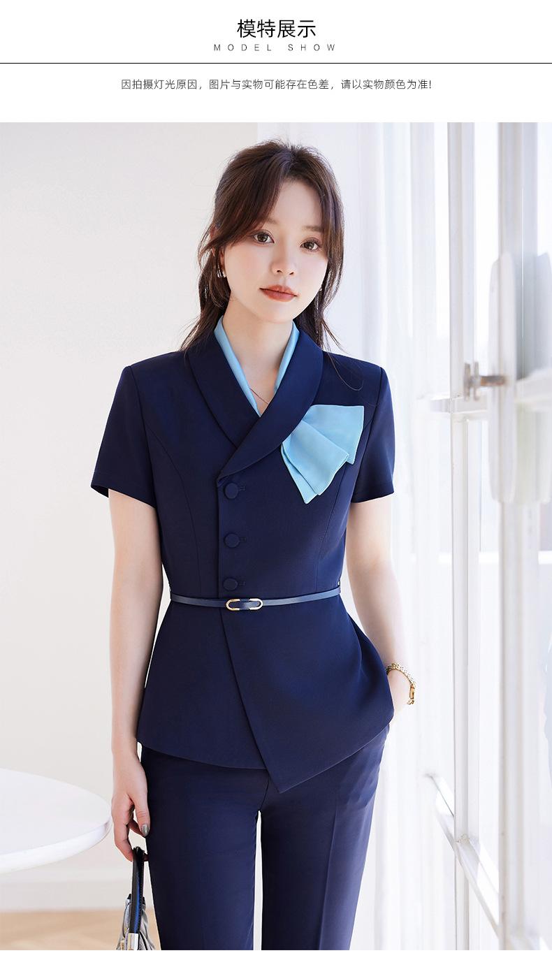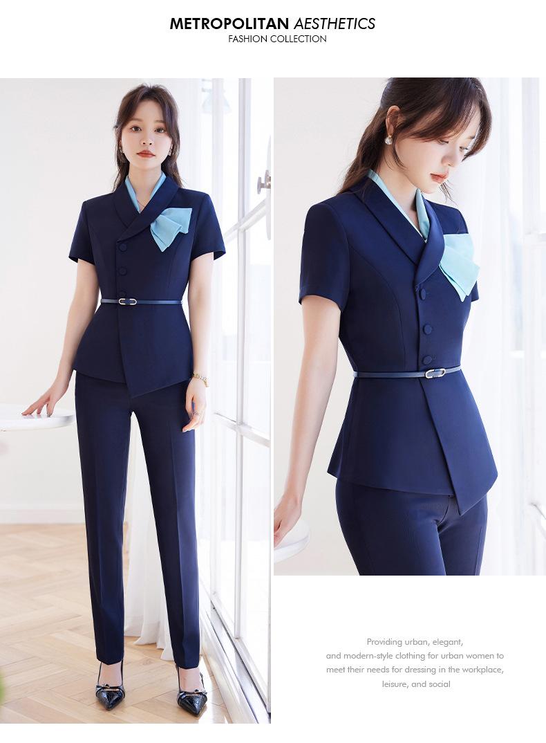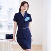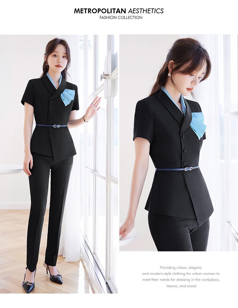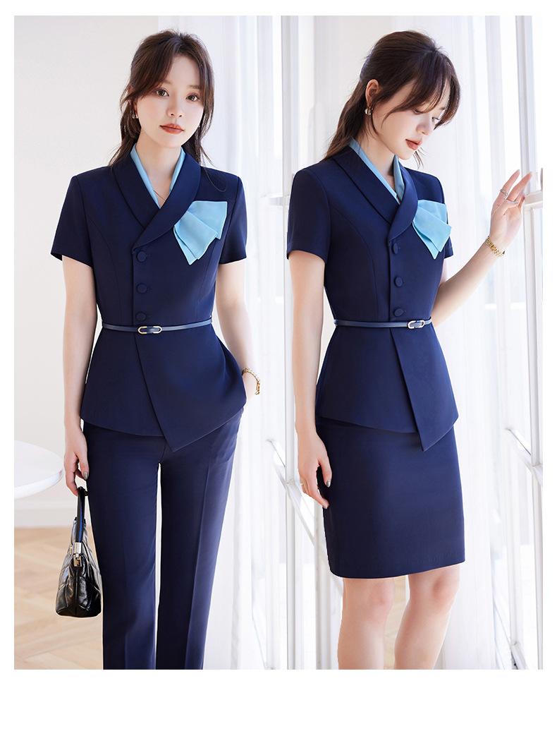 Verano 2024 nuevo traje gris de manga corta chaqueta pantalones falda traje de negocios de dos piezas para mujer commuter