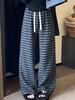 Pantalones anchos con cordón y rayas abigarradas retro para mujer, de primavera, de cintura alta, holgados y rectos.