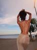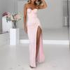 Vestido ajustado con espalda descubierta grande y sexy para mujer, estilo europeo y americano, verano 2024, con tirantes divididos de color sólido
