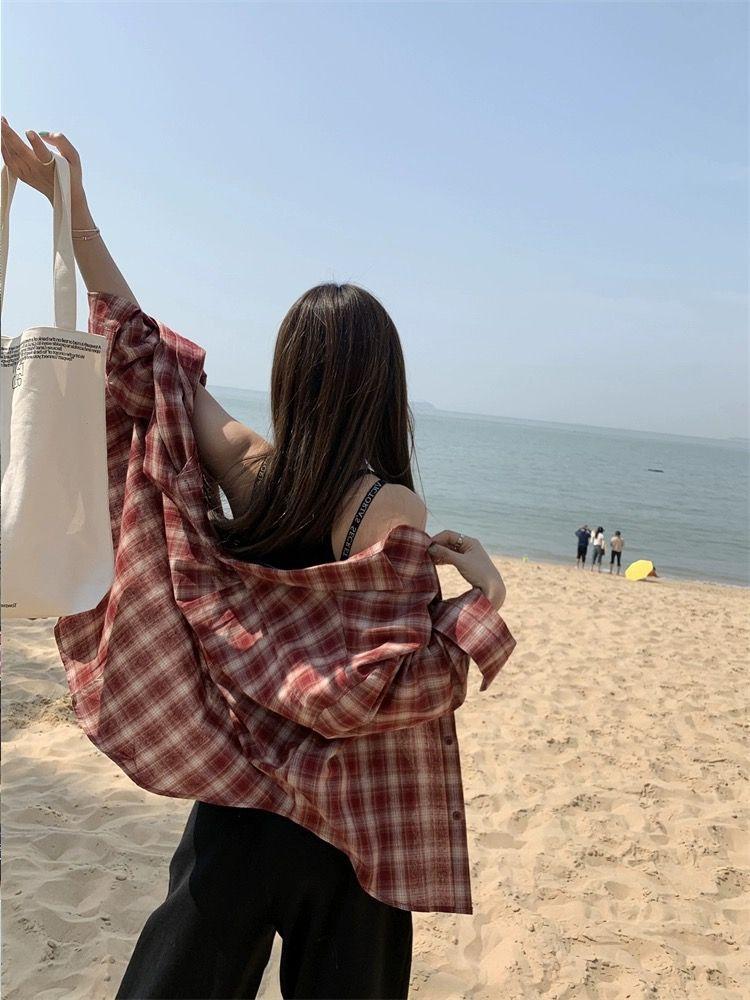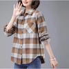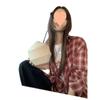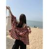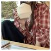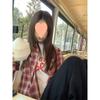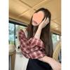 Camisa de Cuadros Rojos de Manga Larga para Mujer Primavera Diseño Nicho Top Interior Holgado de Una Sola Solapa