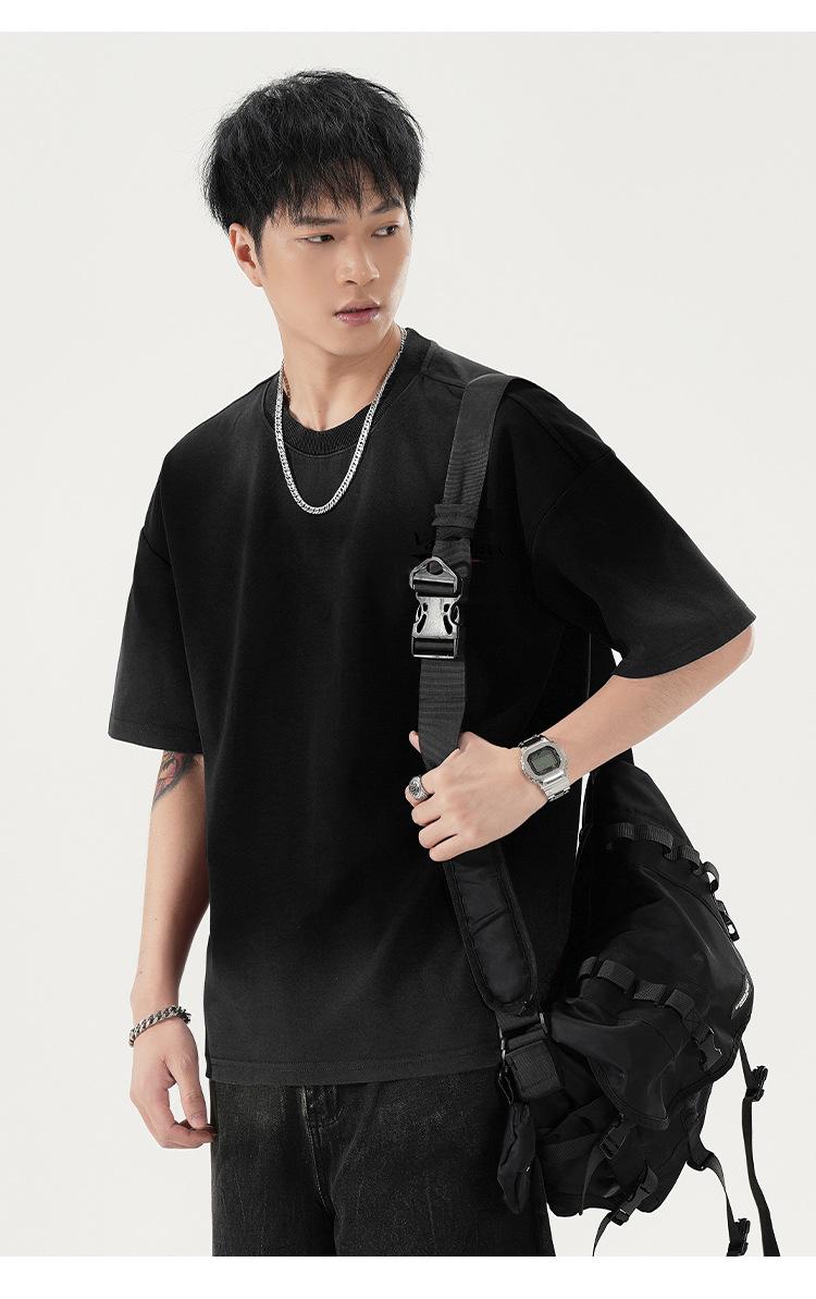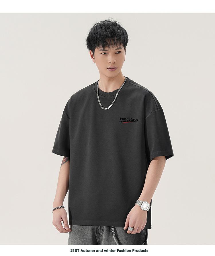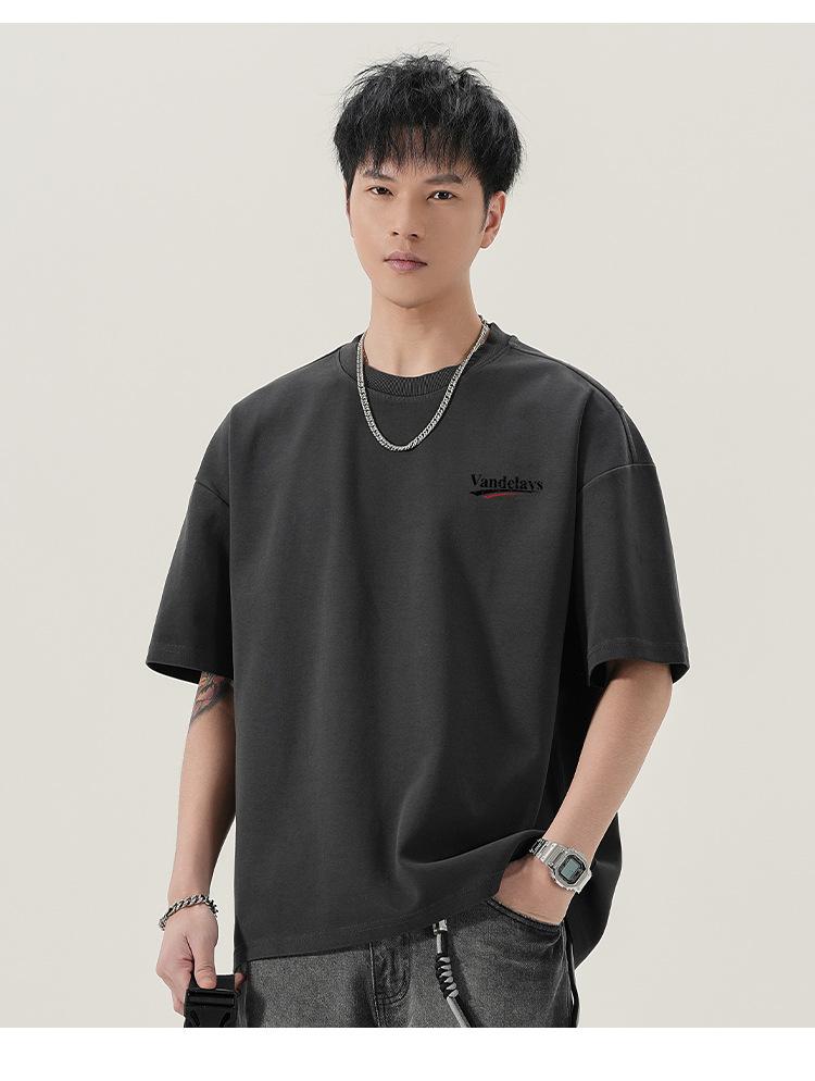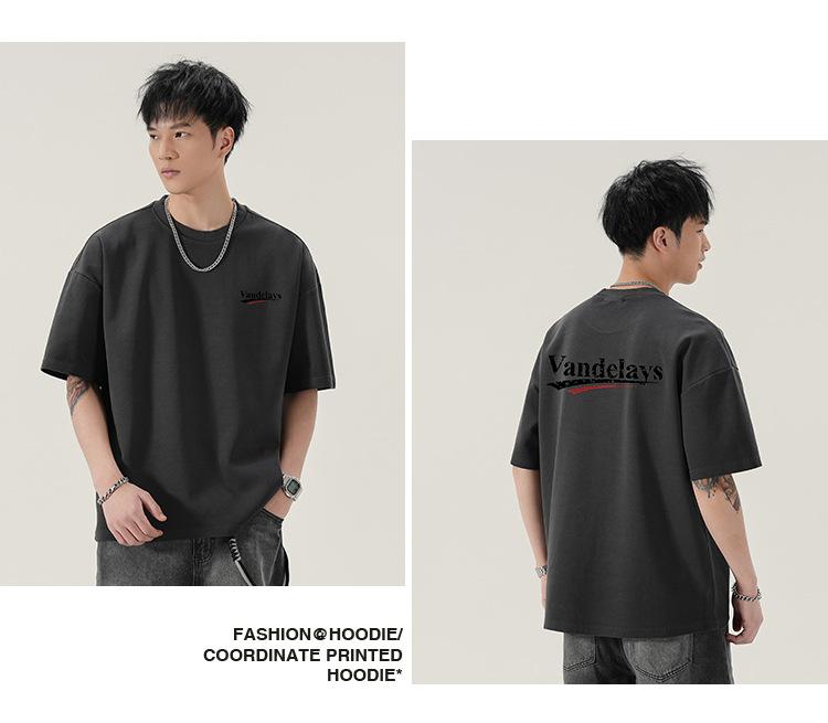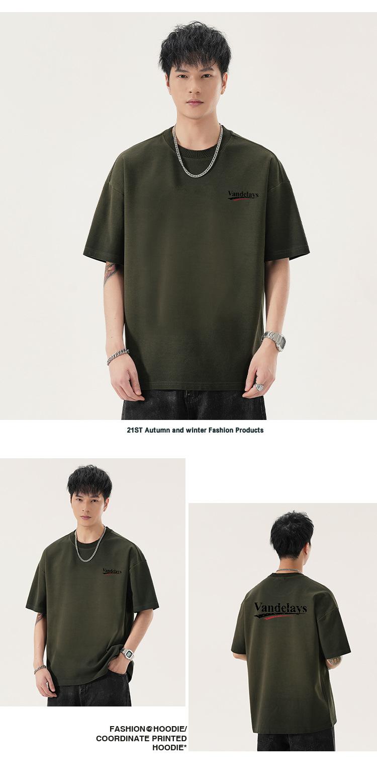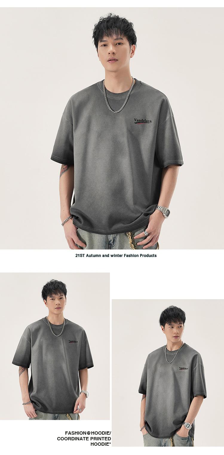 Playera de cuello redondo lavada American Heavy 300g Holgada Moda Top Estampado Verano Casual Manga Corta Hombre