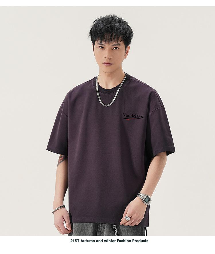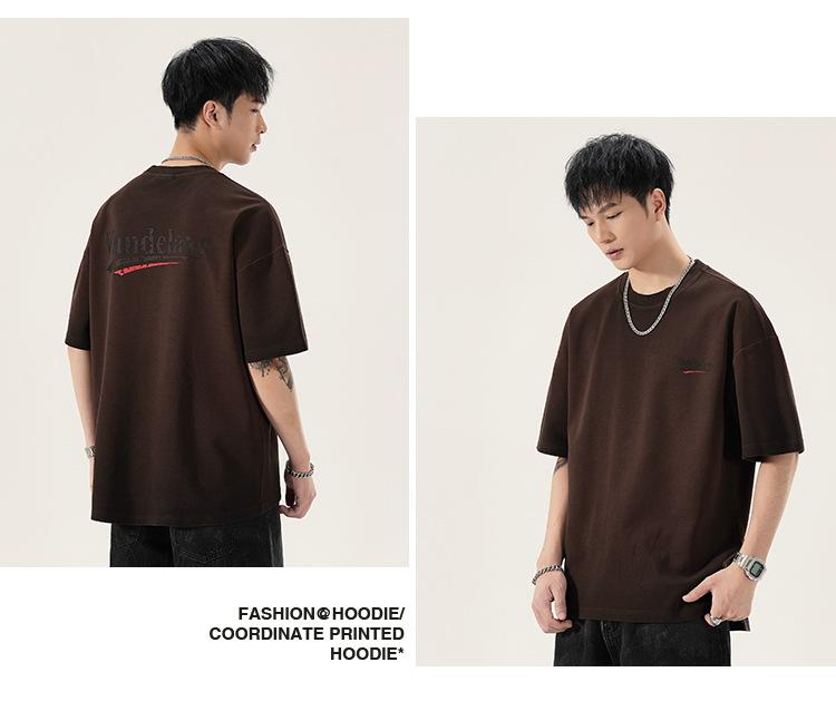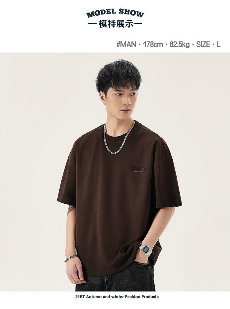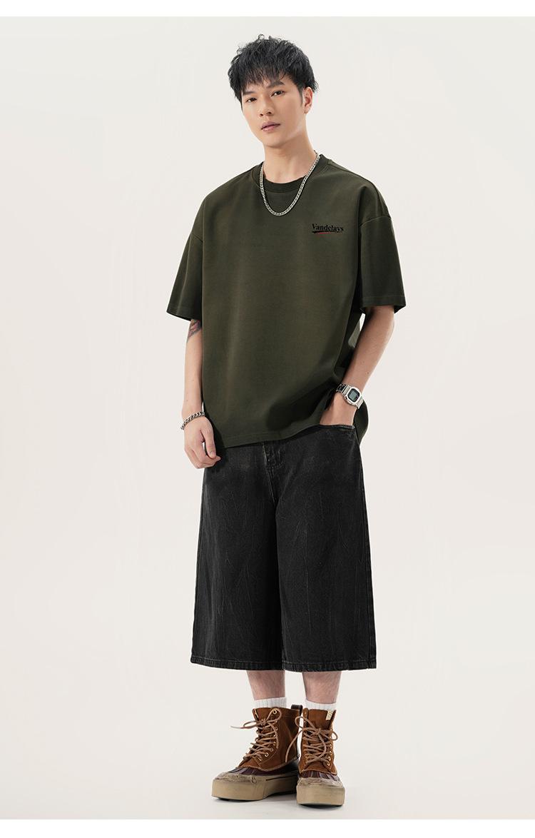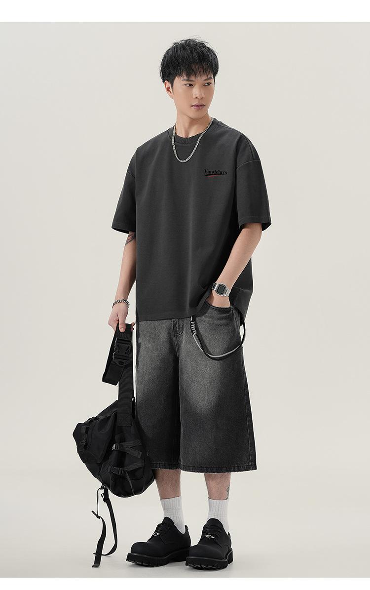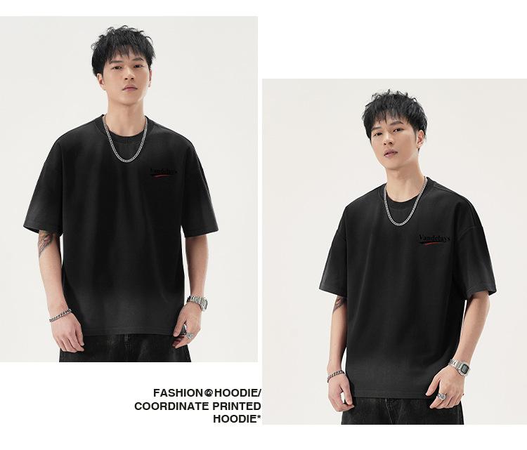 Playera de cuello redondo lavada American Heavy 300g Holgada Moda Top Estampado Verano Casual Manga Corta Hombre