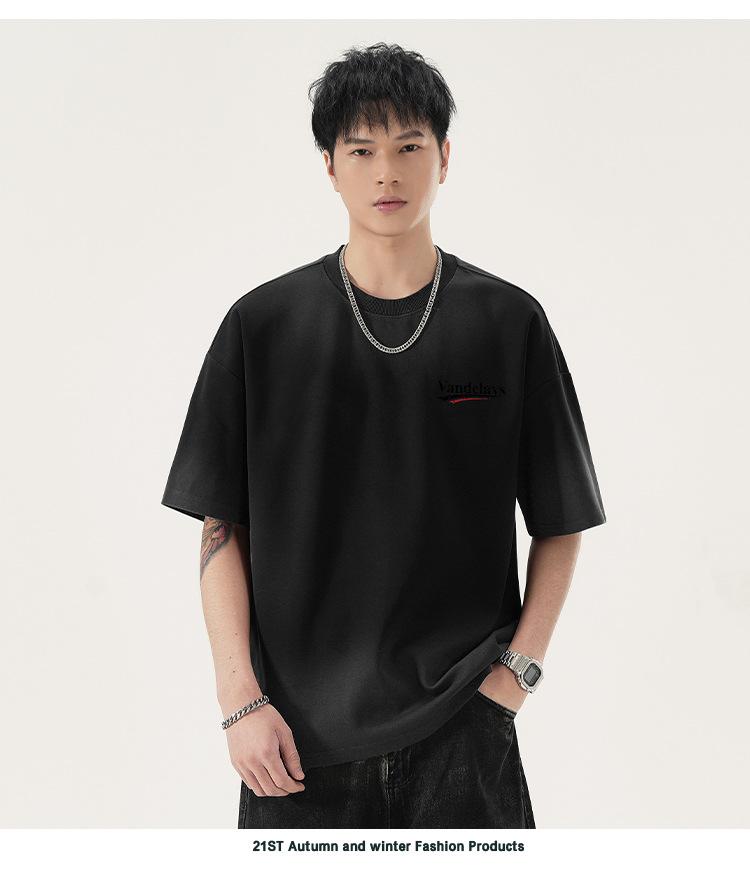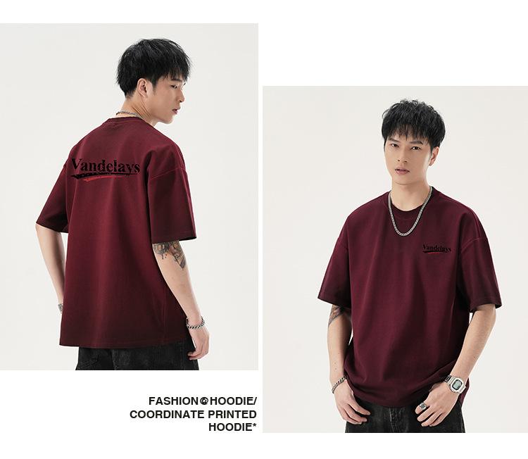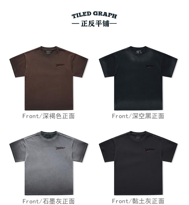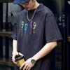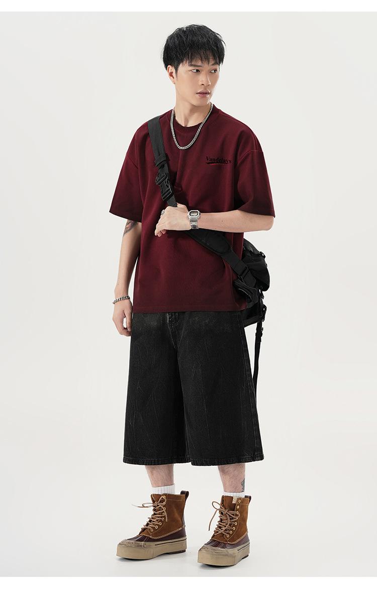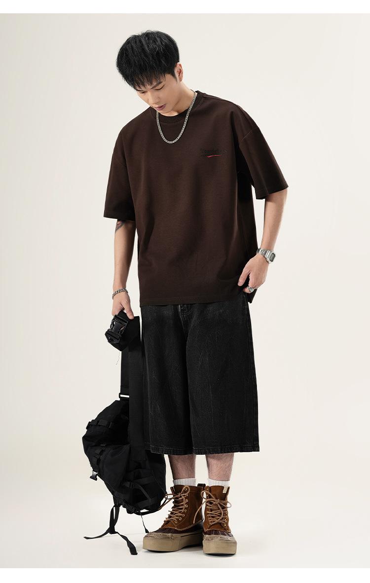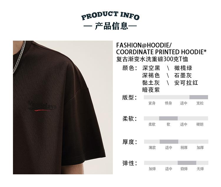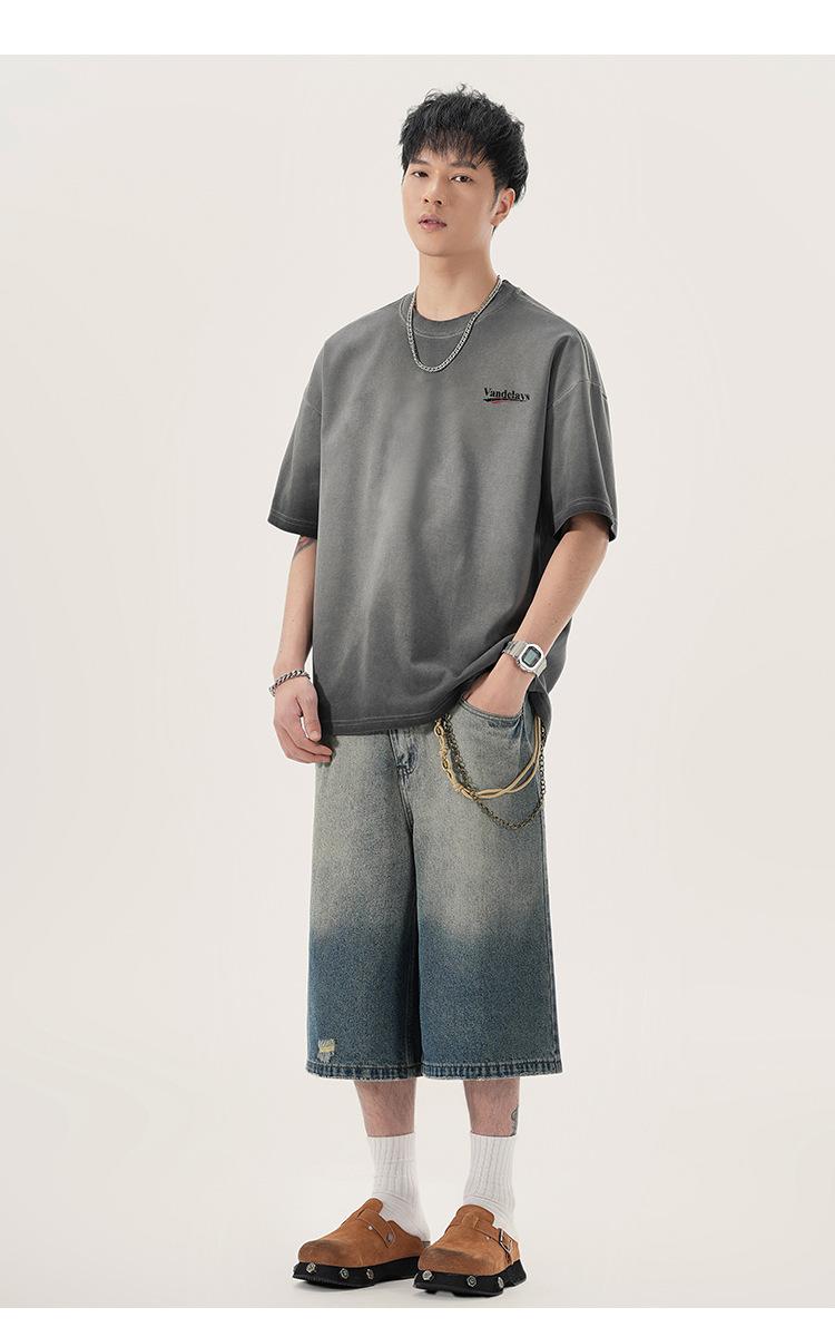 Playera de cuello redondo lavada American Heavy 300g Holgada Moda Top Estampado Verano Casual Manga Corta Hombre