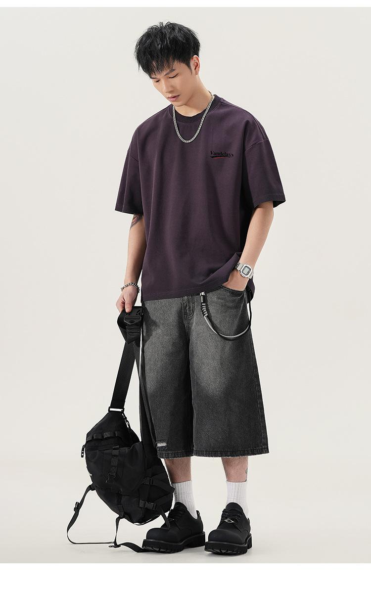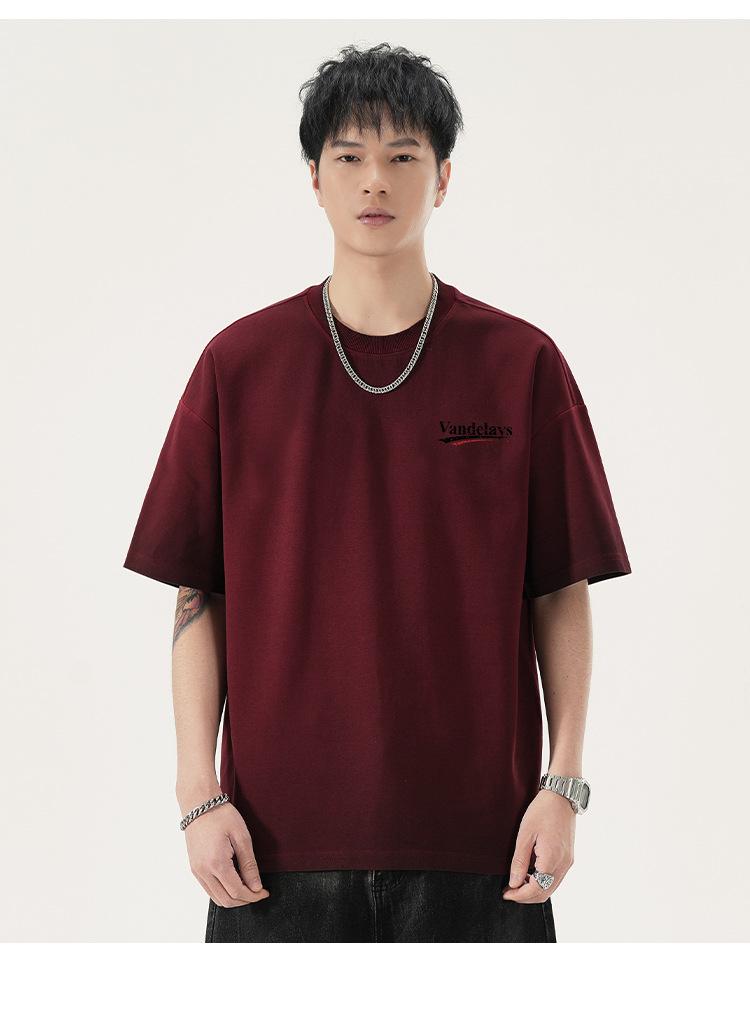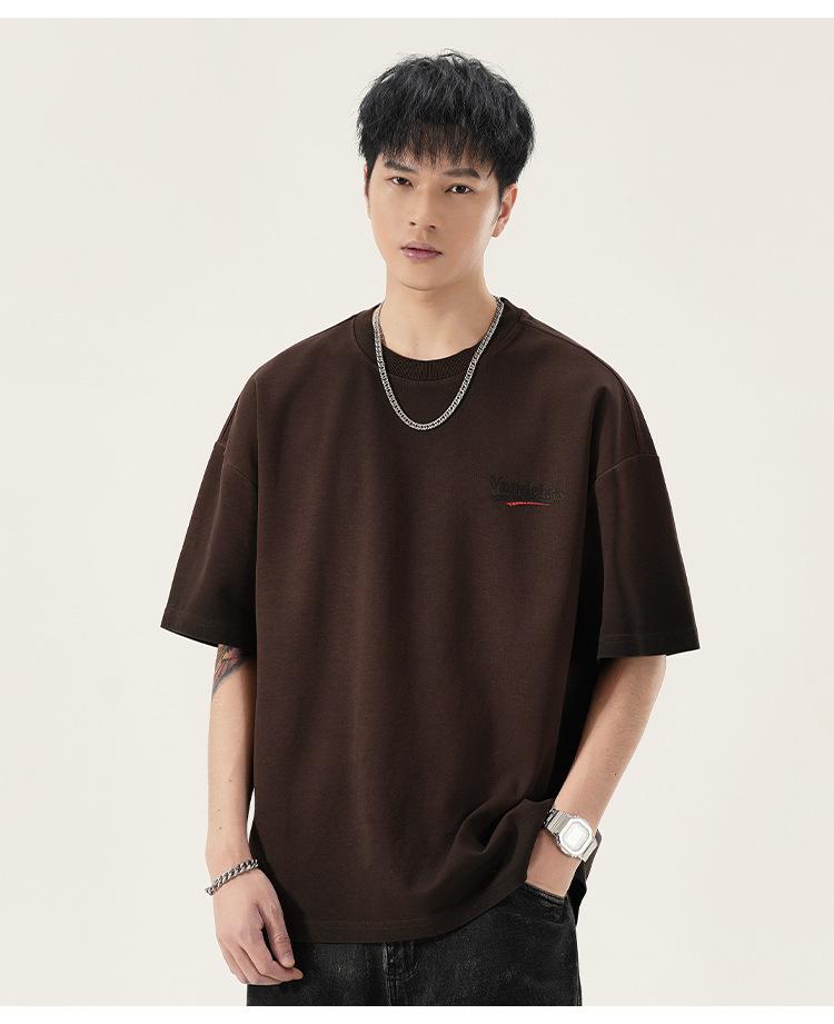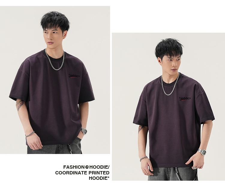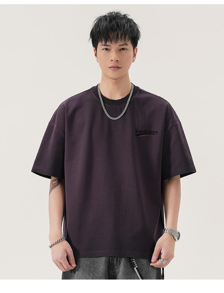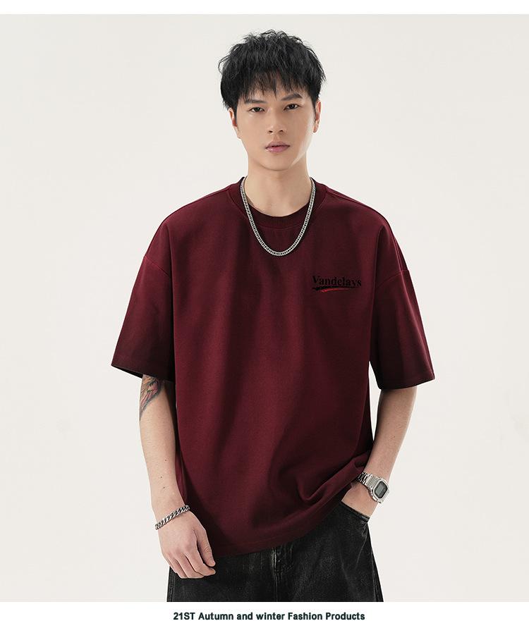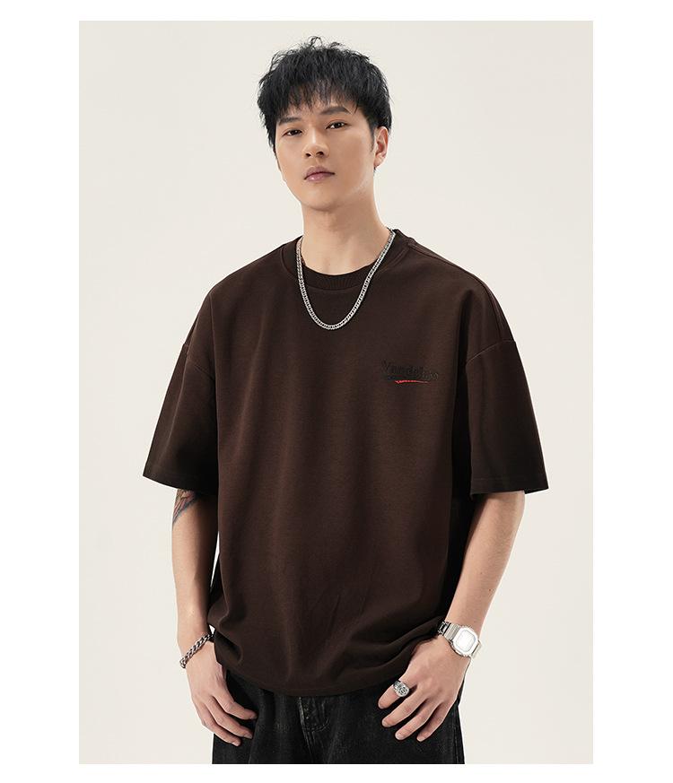 Playera de cuello redondo lavada American Heavy 300g Holgada Moda Top Estampado Verano Casual Manga Corta Hombre