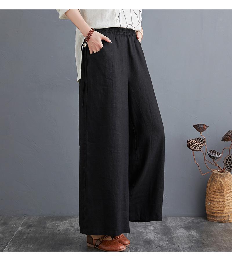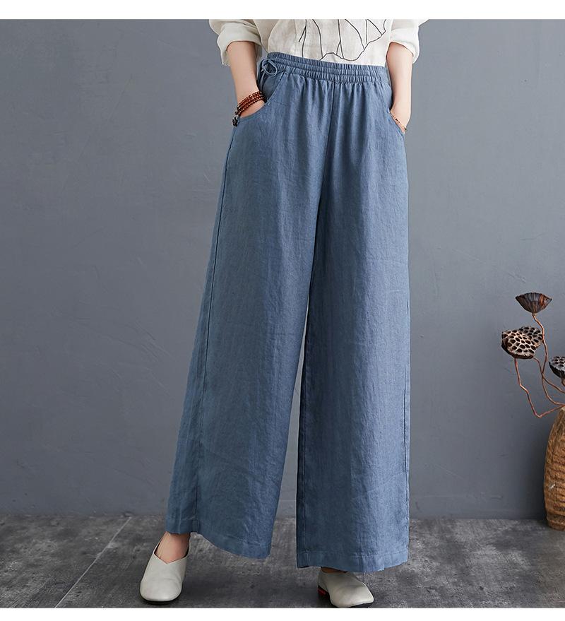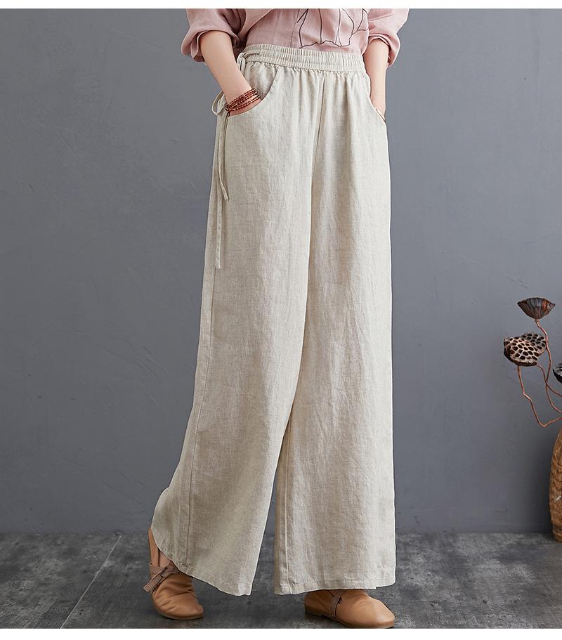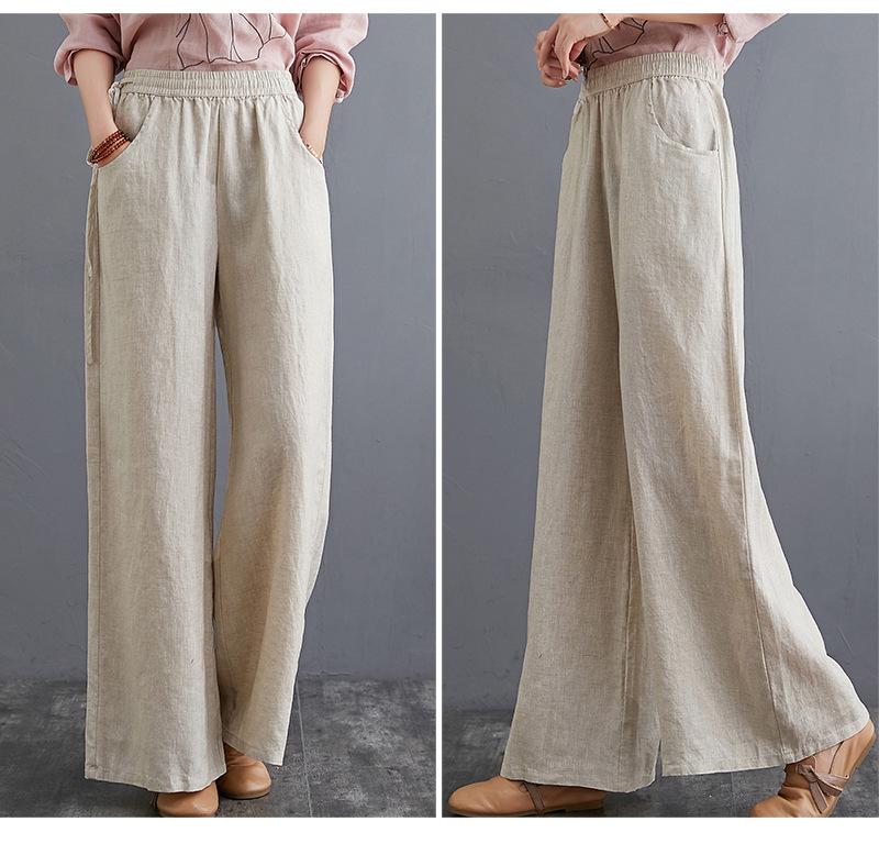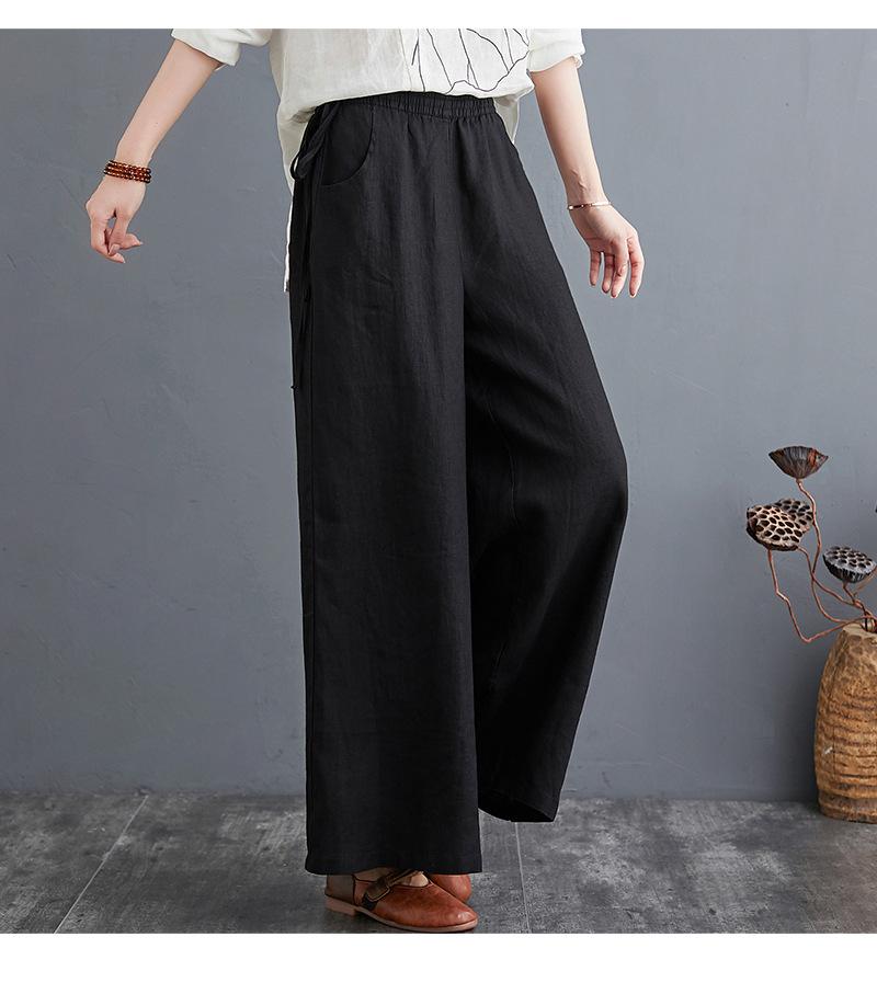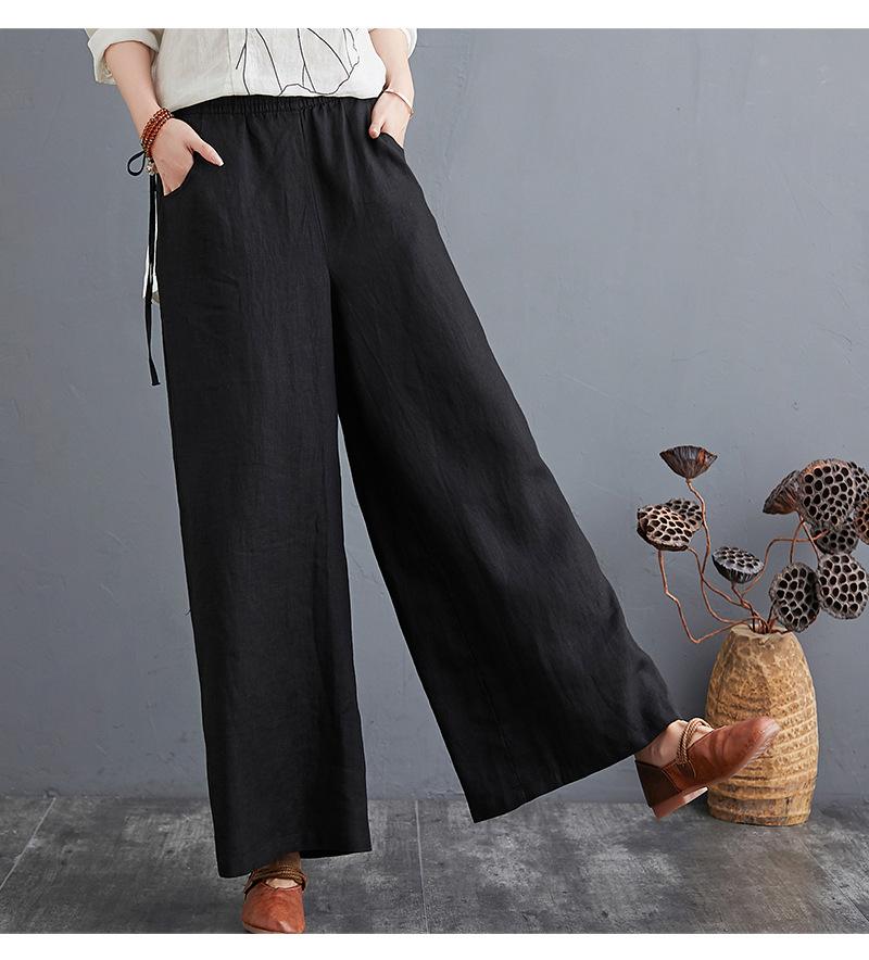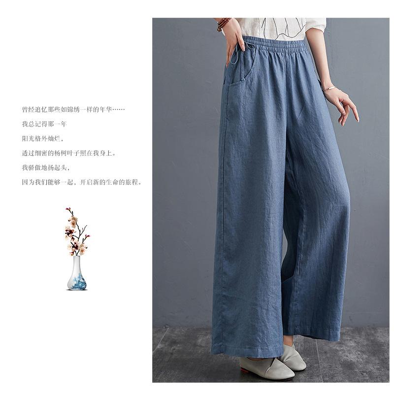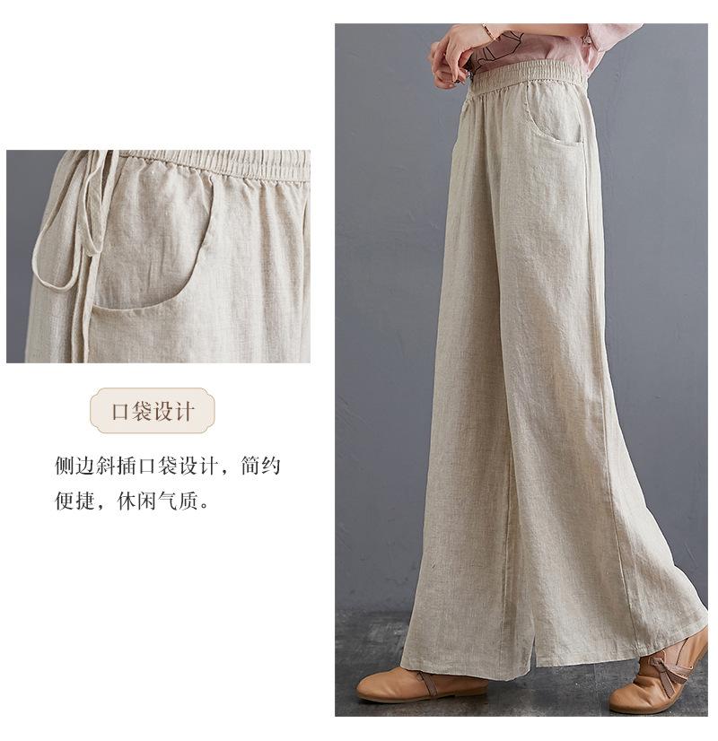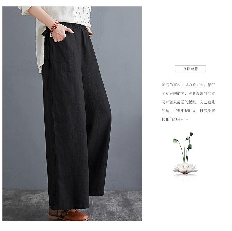 Tiro Real Otoño Nuevo Suelto Talla Grande Adelgazante Pierna Ancha Bolsillo Pantalones Casuales Pantalones Casuales de Mujer
