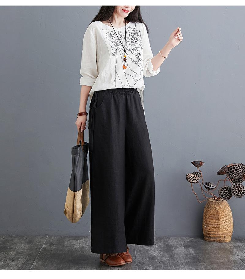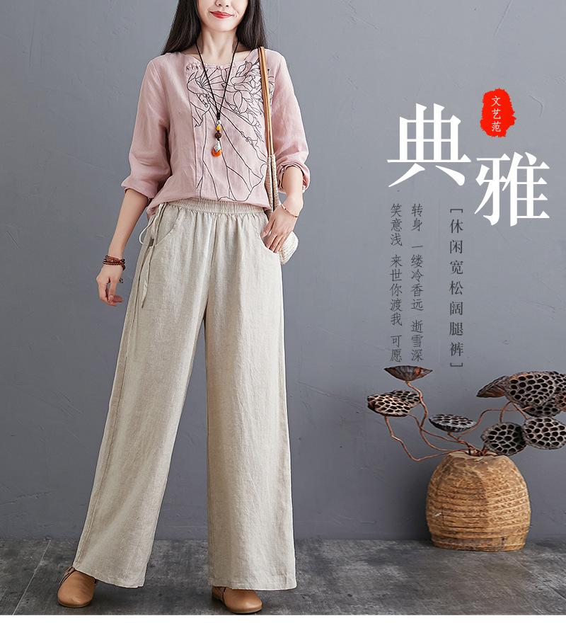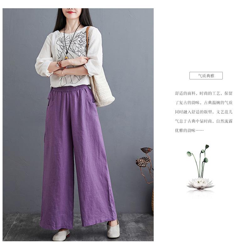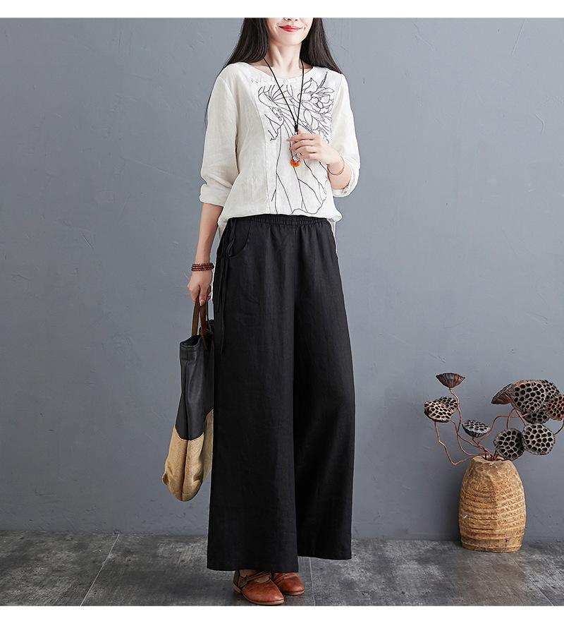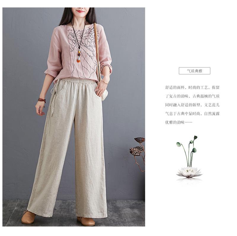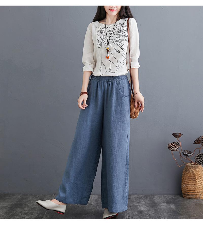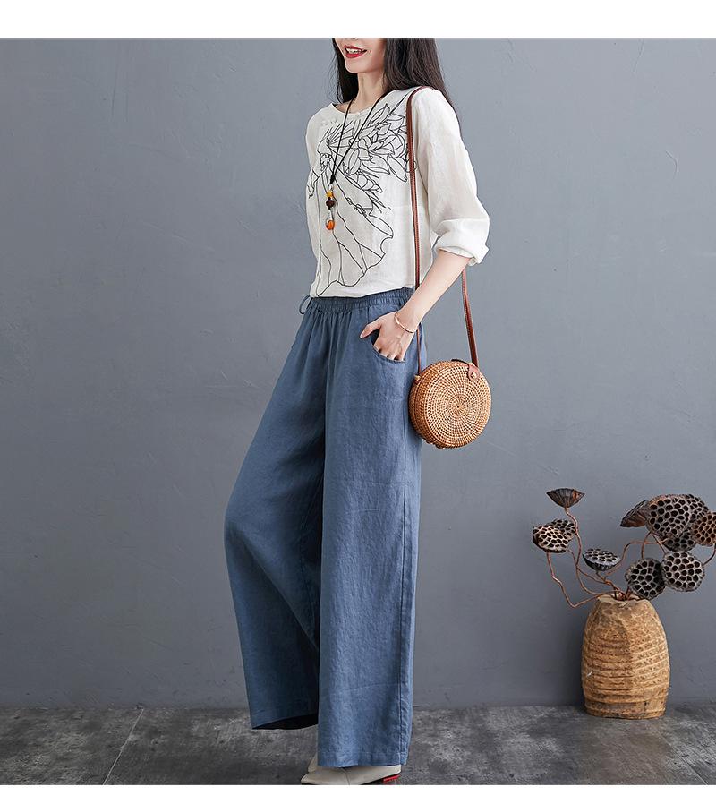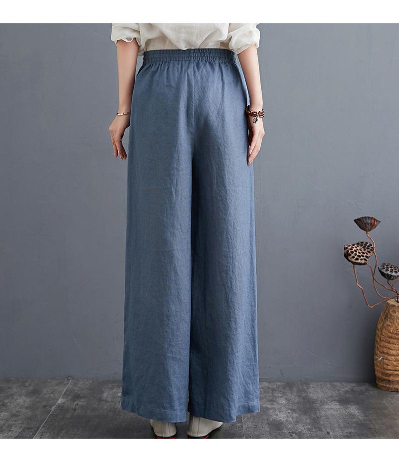 Tiro Real Otoño Nuevo Suelto Talla Grande Adelgazante Pierna Ancha Bolsillo Pantalones Casuales Pantalones Casuales de Mujer