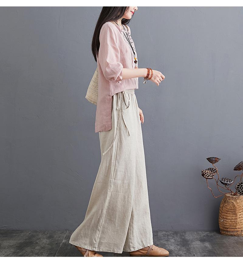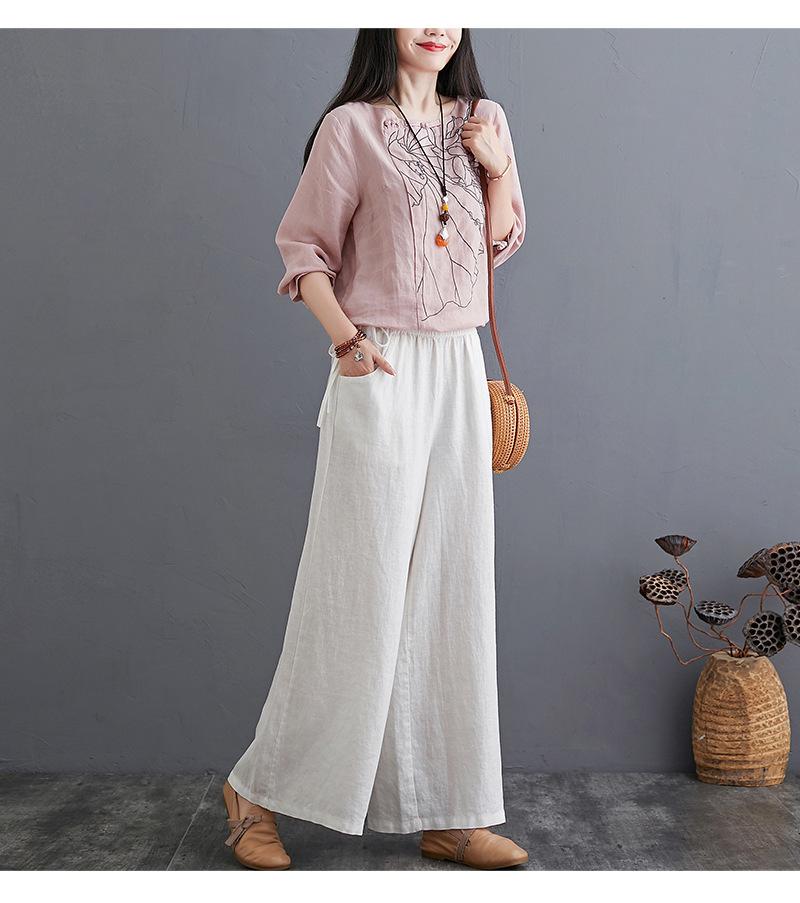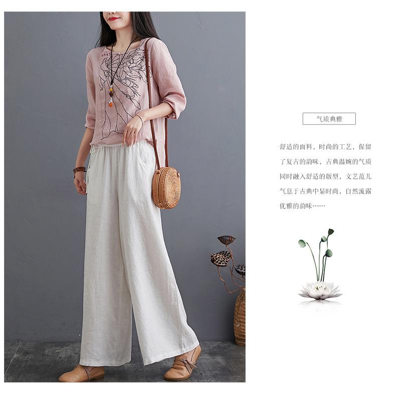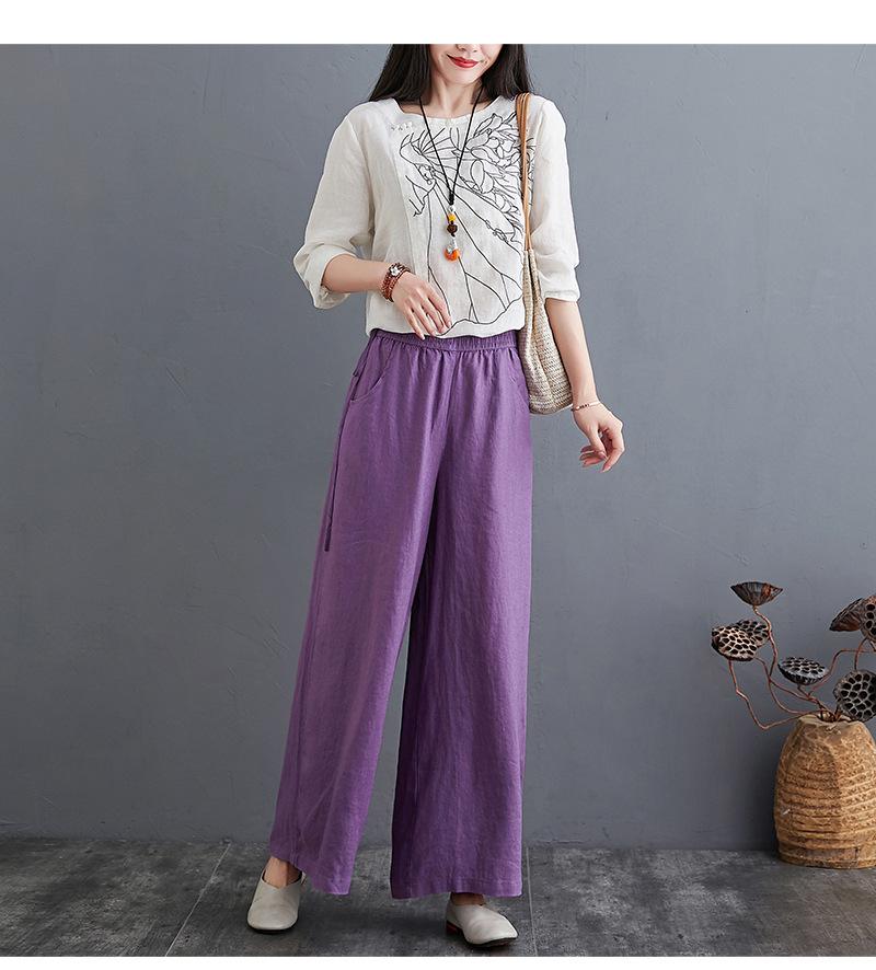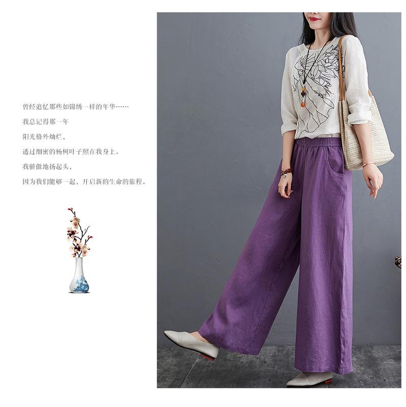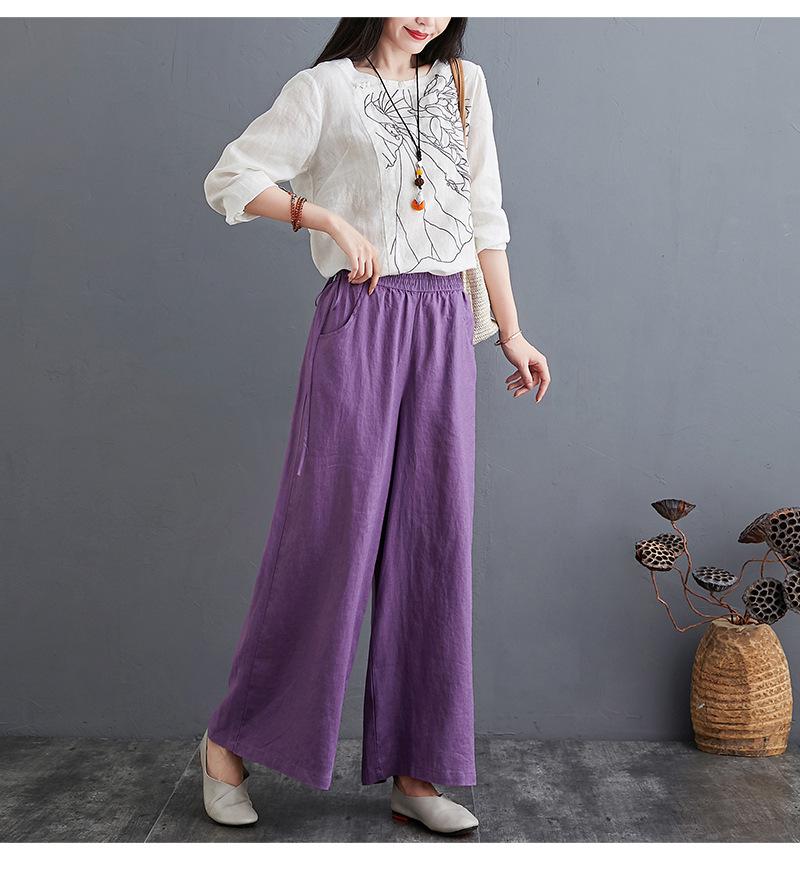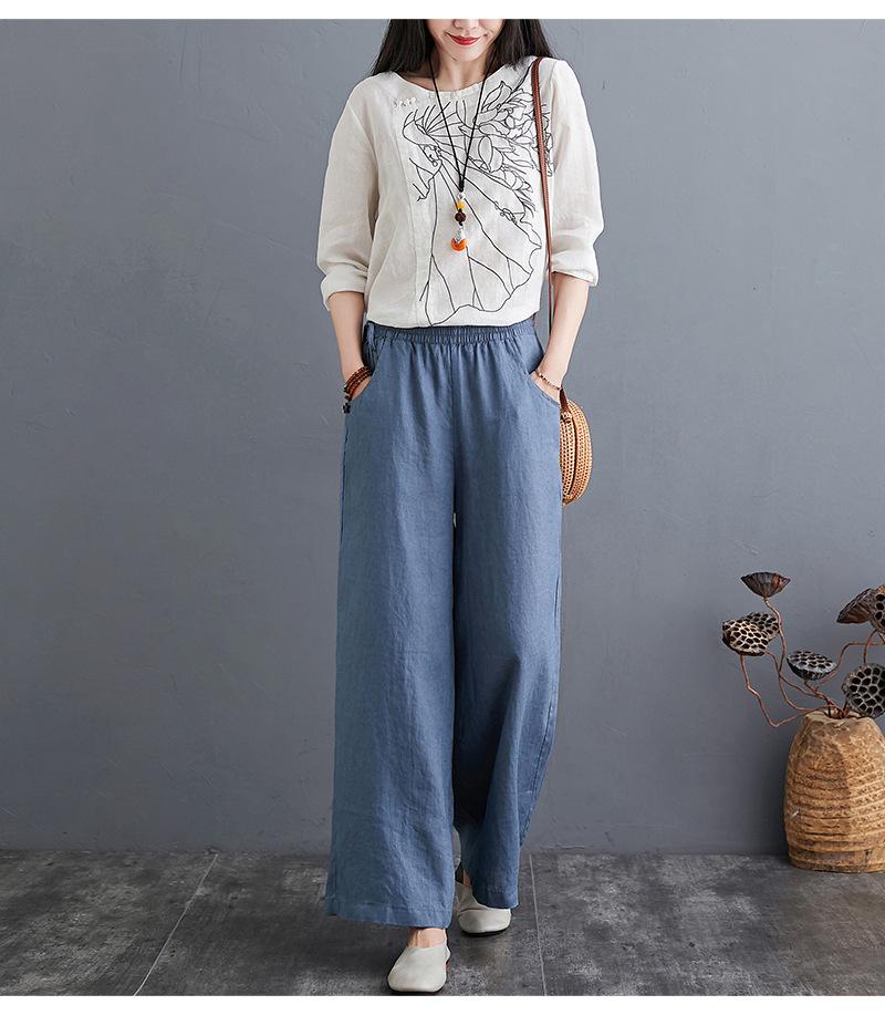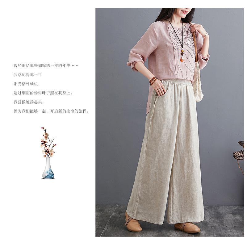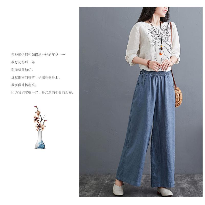 Tiro Real Otoño Nuevo Suelto Talla Grande Adelgazante Pierna Ancha Bolsillo Pantalones Casuales Pantalones Casuales de Mujer