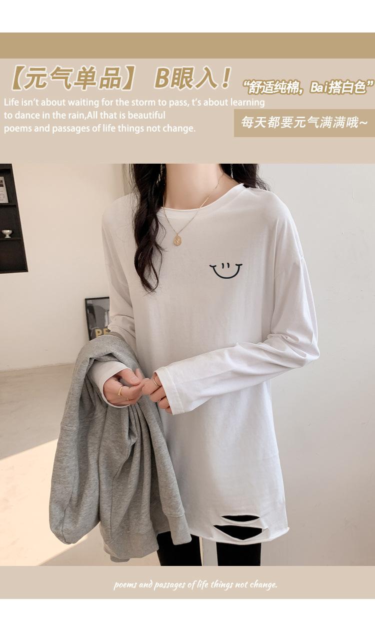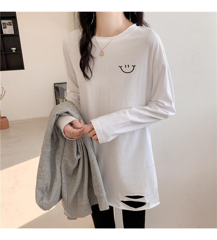 3068 # Camiseta de Manga Larga para Mujer Algodón Puro (Toma real) (100% Algodón con Agujeros)