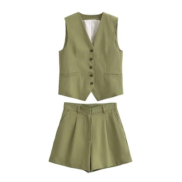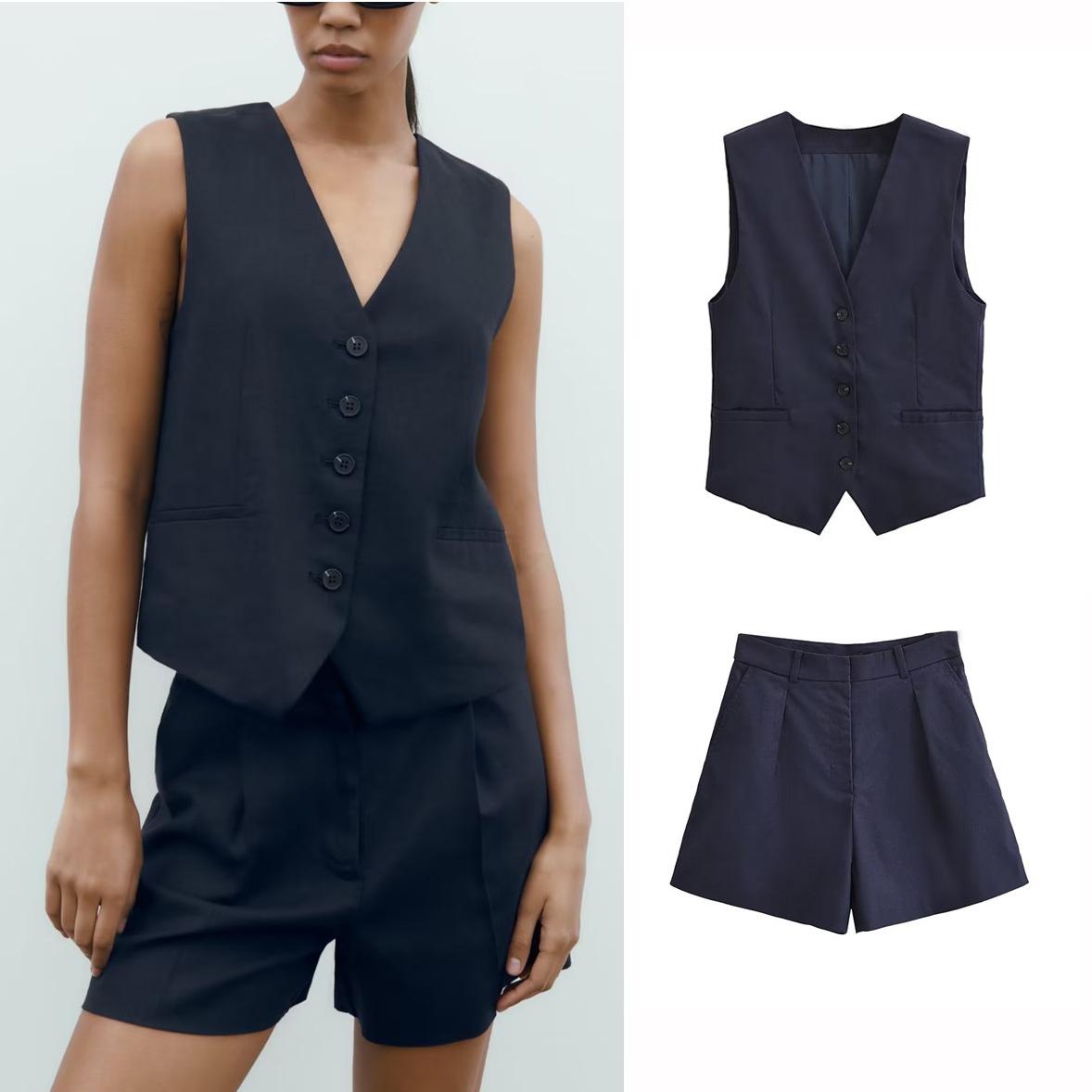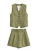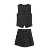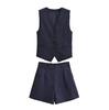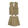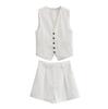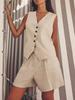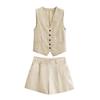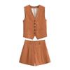 Amazon Venta al Mayoreo Primavera 2023 Nuevo Color Sólido Cuello V Chaleco Ajustado + Shorts Casuales Traje de Dos Piezas